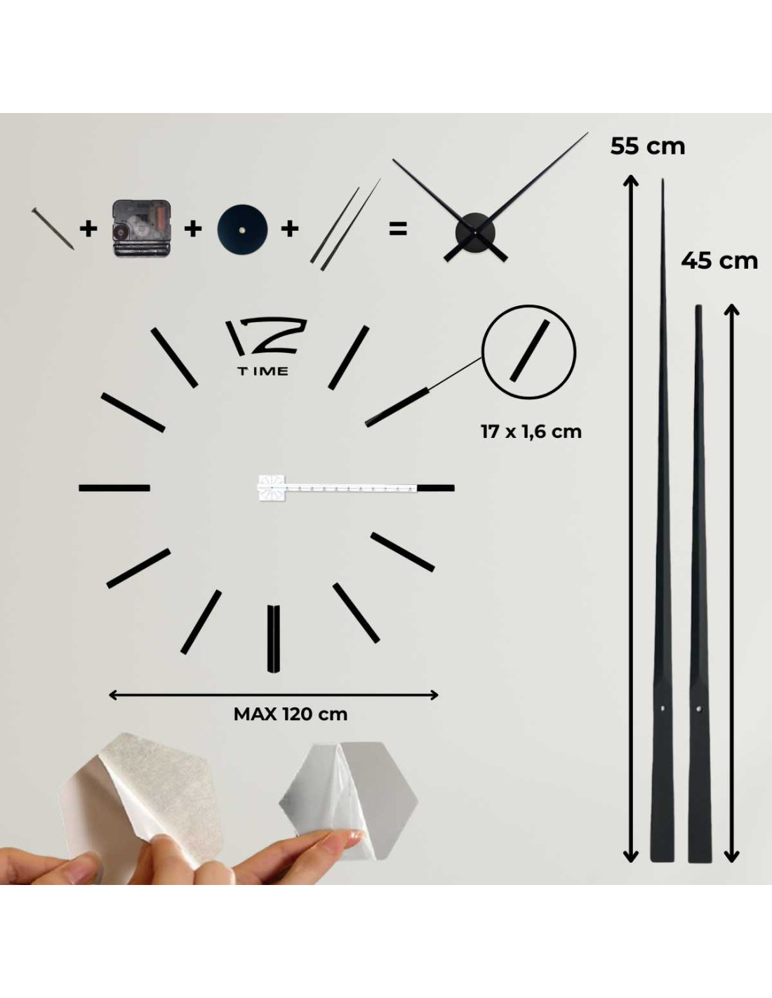 Datorită unui diametru reglabil de până la 120 cm, acest ceas modern se adaptează oricărei camere - fie că este vorba de living, dormitor, birou sau hol de la intrare.