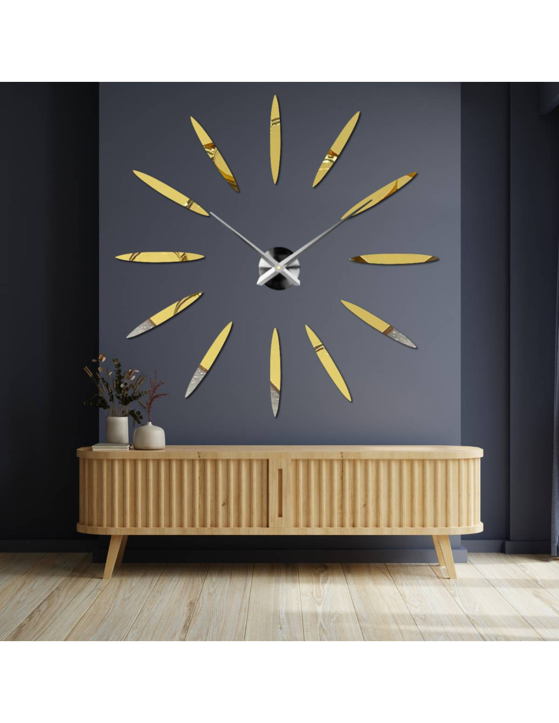 Ceasul de perete adeziv luxos, realizat din plexiglas auriu oglindit, este un plus ideal pentru orice interior modern.