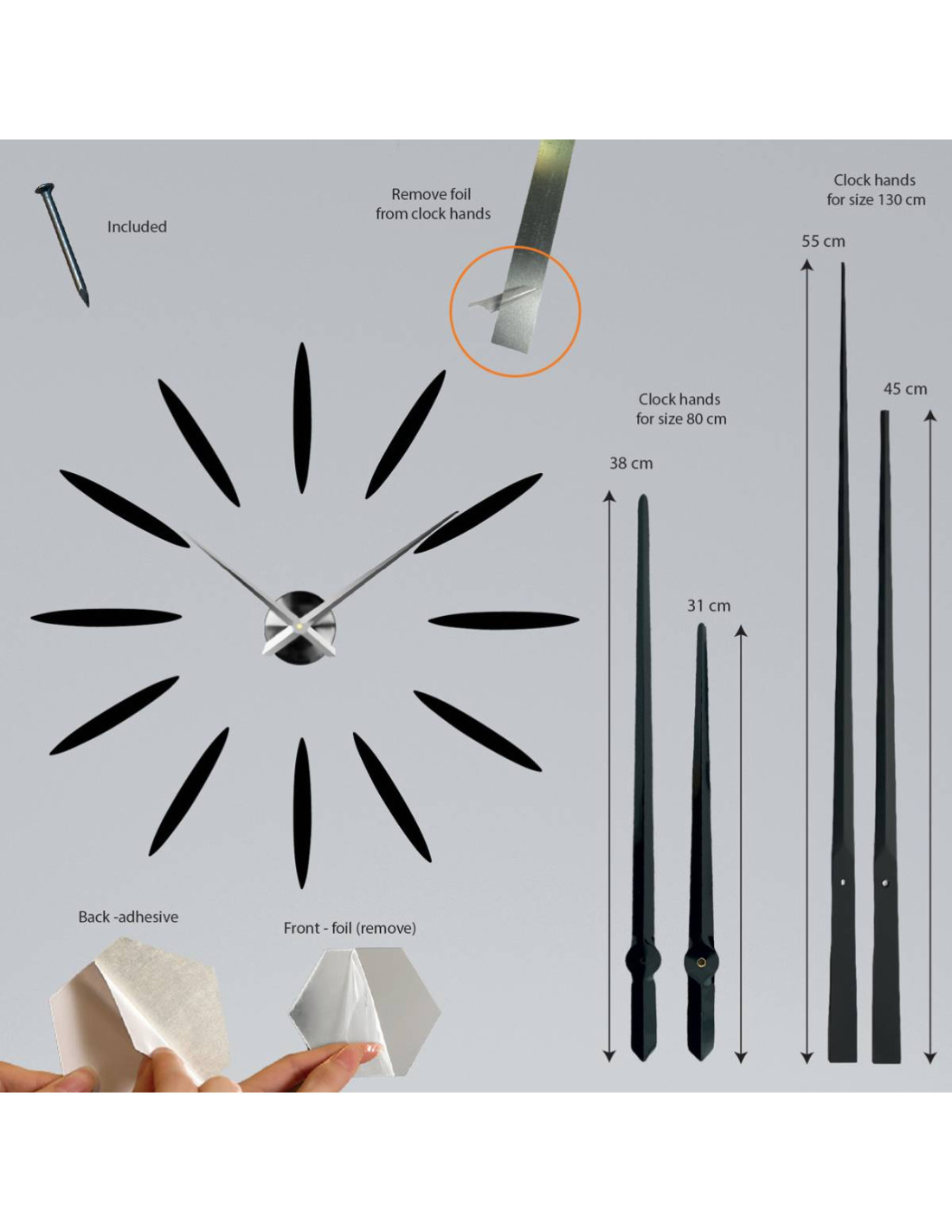 Ceasul este ușor de asamblat fără a fi nevoie de găurire - trebuie doar să îl lipiți conform instrucțiunilor și șablonului incluse.