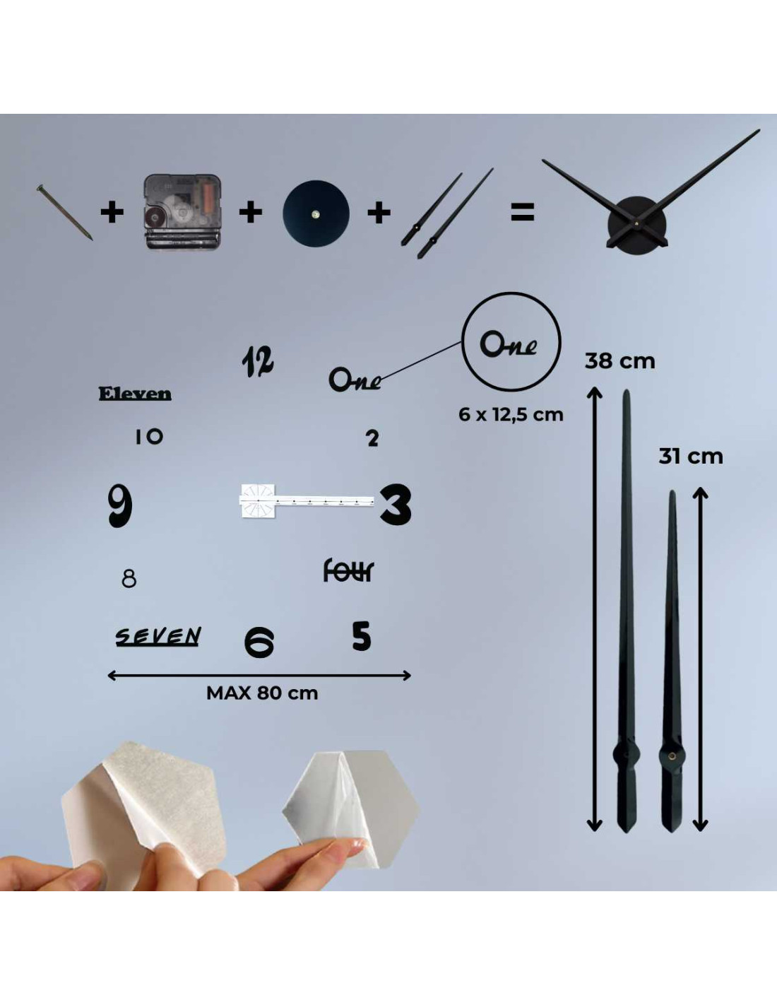 - Numerele cadranului au un strat autoadeziv, astfel încât instalarea este rapidă și fără găurire.