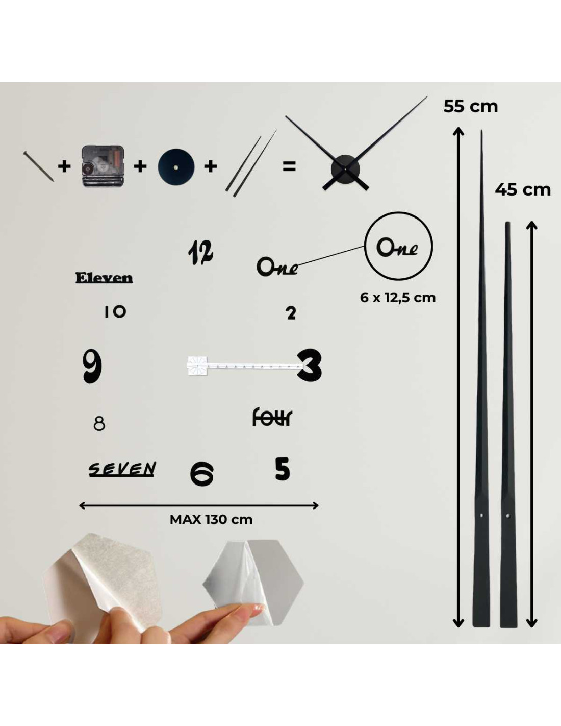 Descoperiți un ceas de perete elegant, cu un diametru reglabil de până la 130 cm, care va ieși în evidență ca un element atrăgător în living, dormitor, birou sau holul de la intrare.