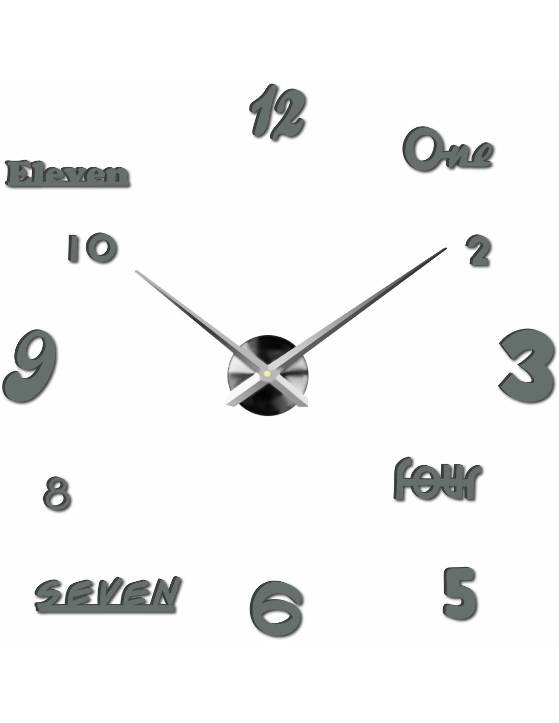 Un ceas de perete cu un cadran unic , unde numerele sunt afișate atât în cuvinte, cât și în cifre.