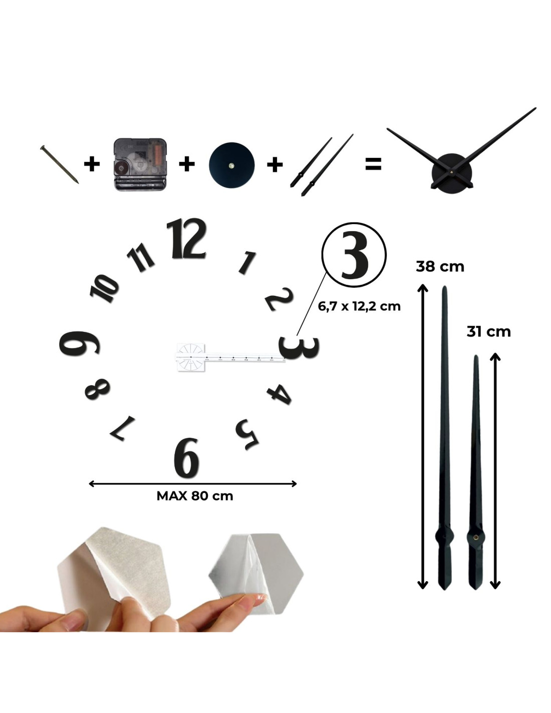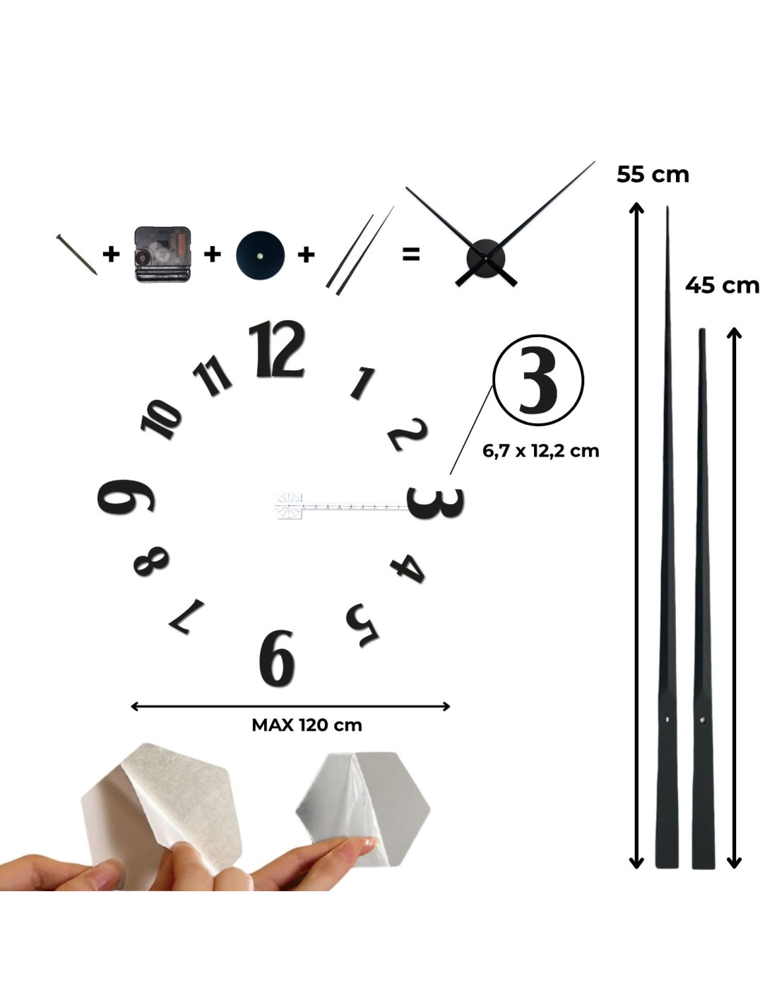 Ceas de perete adeziv 3D mare - design modern pentru orice interior.