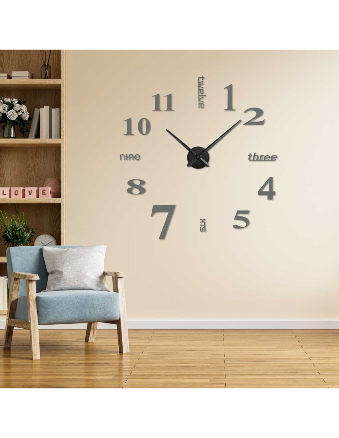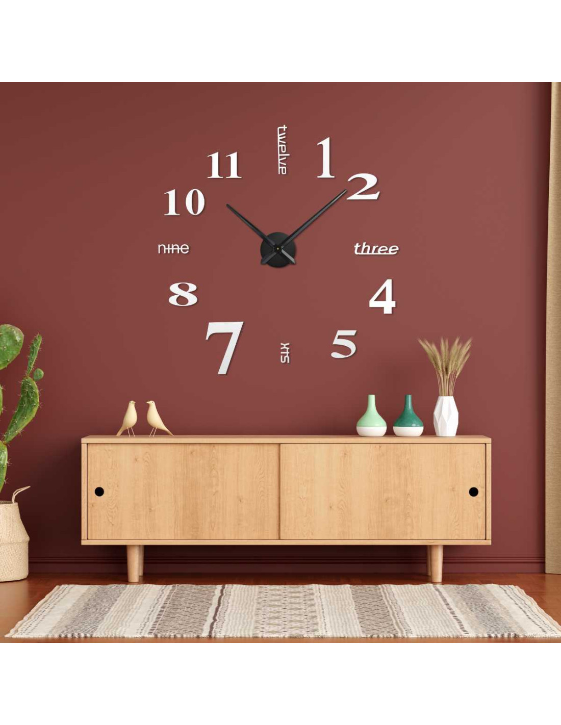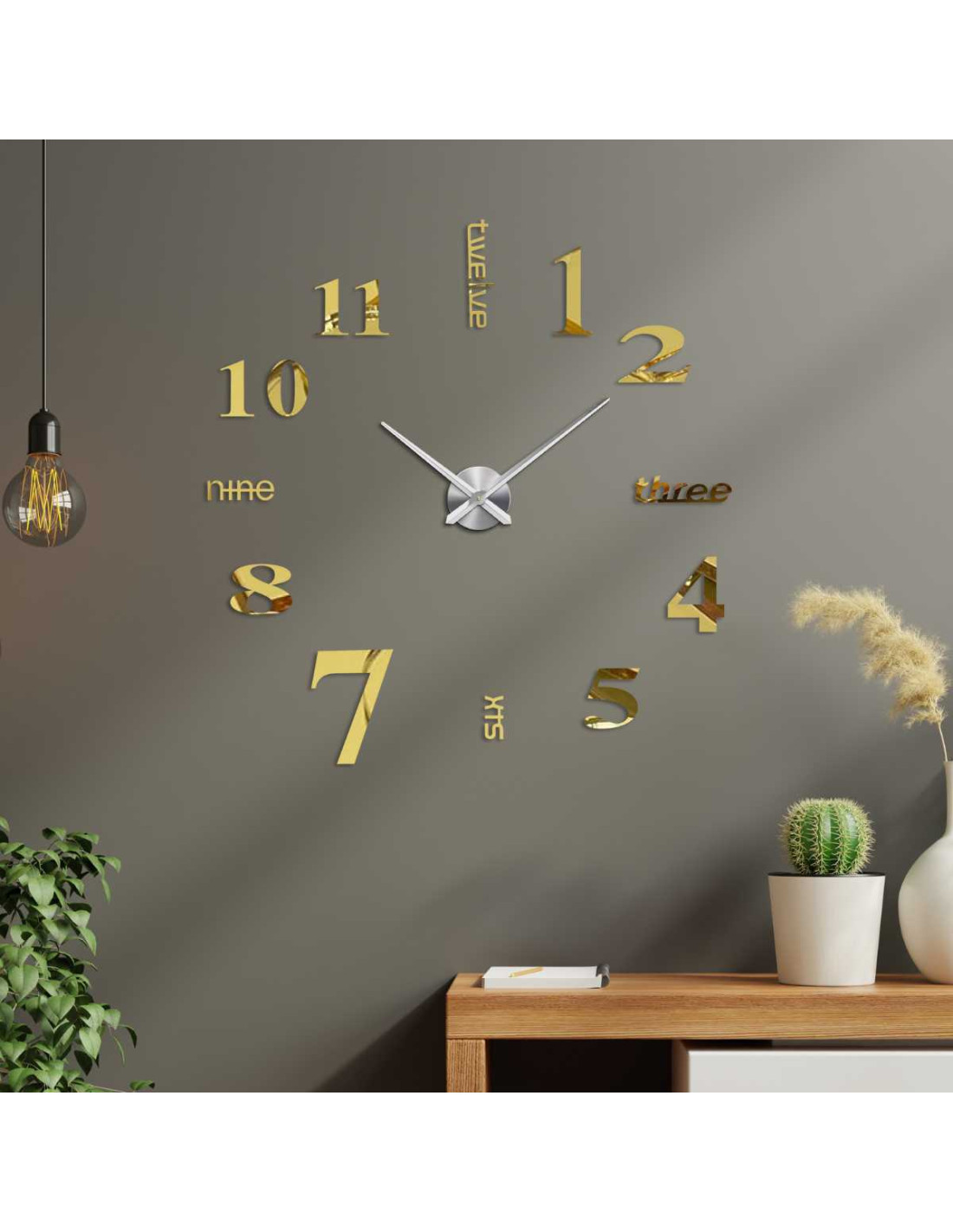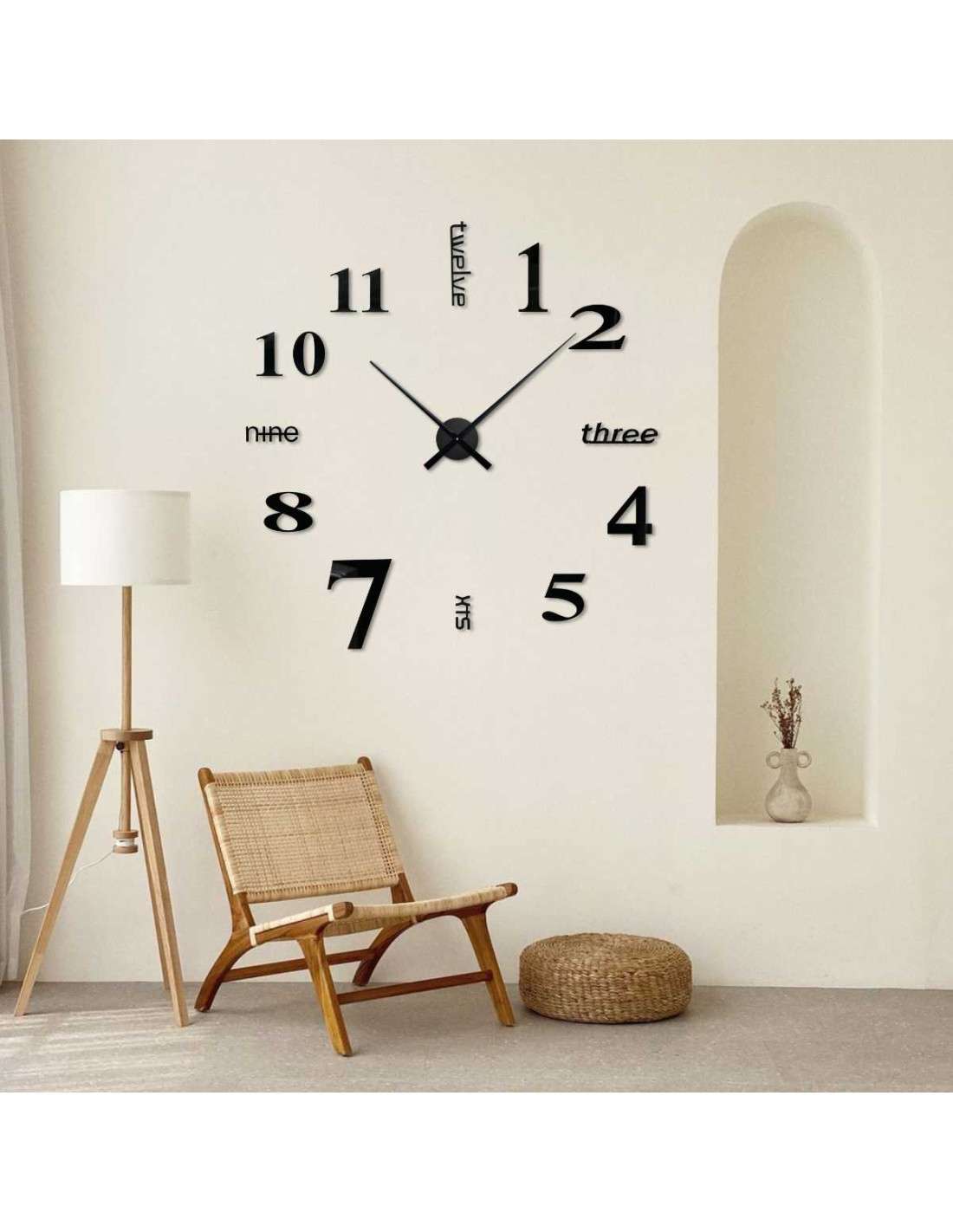 Descoperiți un ceas de perete elegant, cu un diametru reglabil de până la 130 cm, care va ieși în evidență ca un element atrăgător în living, dormitor, birou sau holul de la intrare.