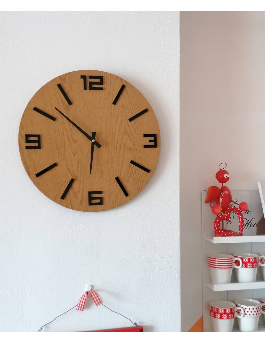 Acest ceas nu este doar un indicator practic al timpului, ci și o decorațiune elegantă care va aduce căldura materialului natural și o notă de nostalgie spațiului - parfumul lemnului vă va aminti de momentele liniștite din copilărie.