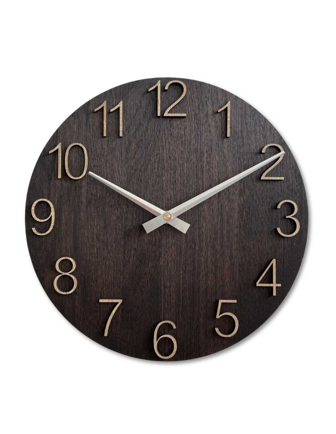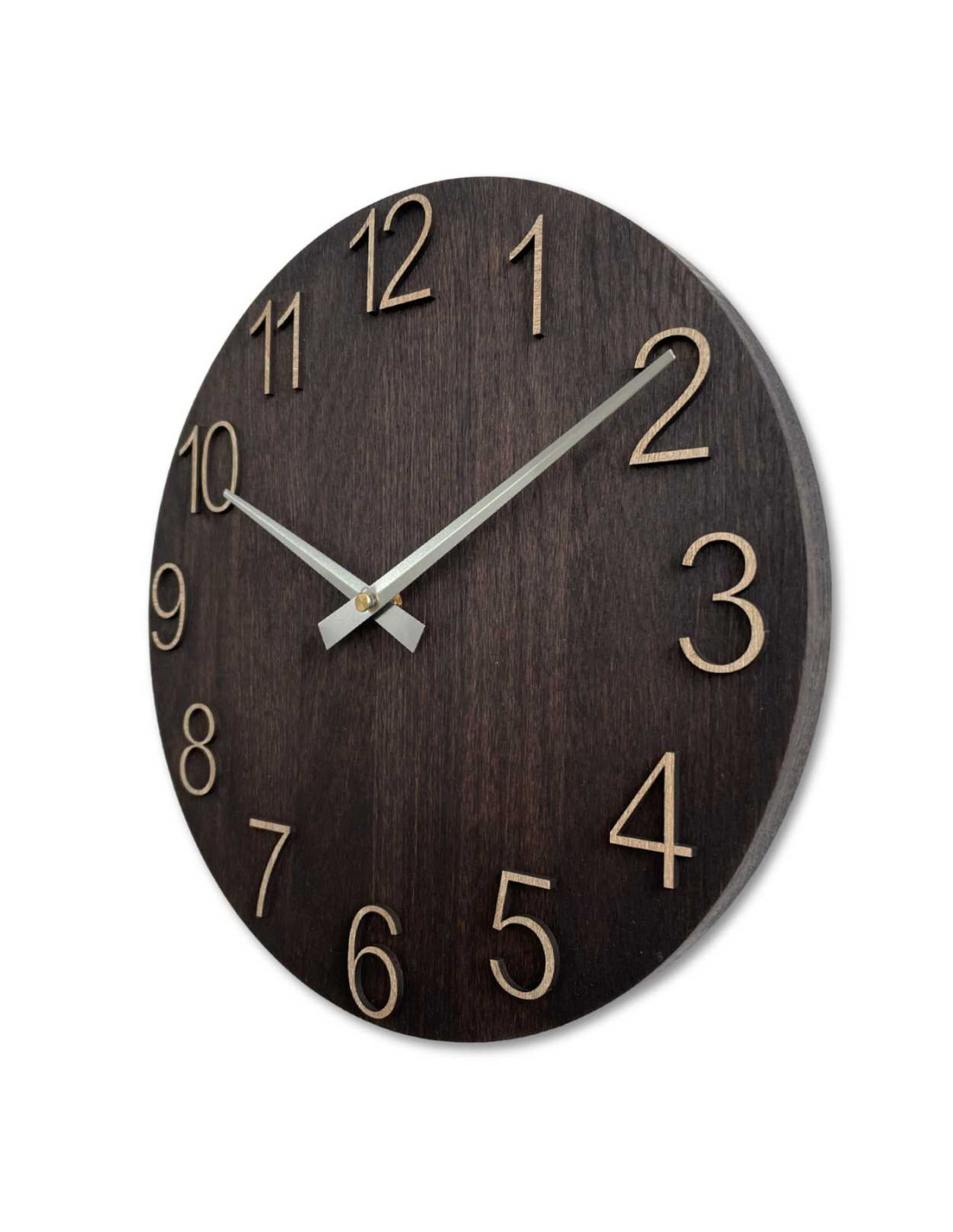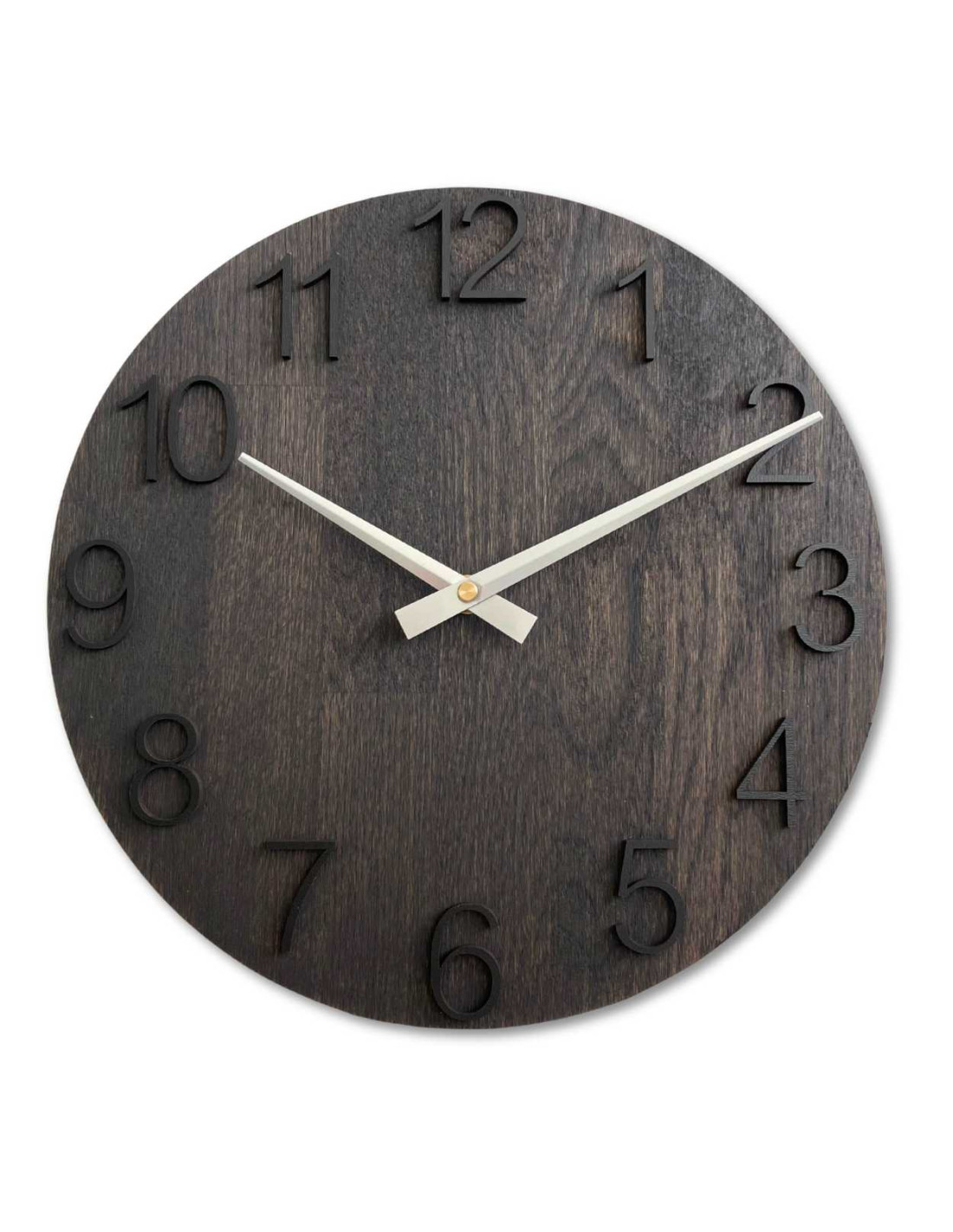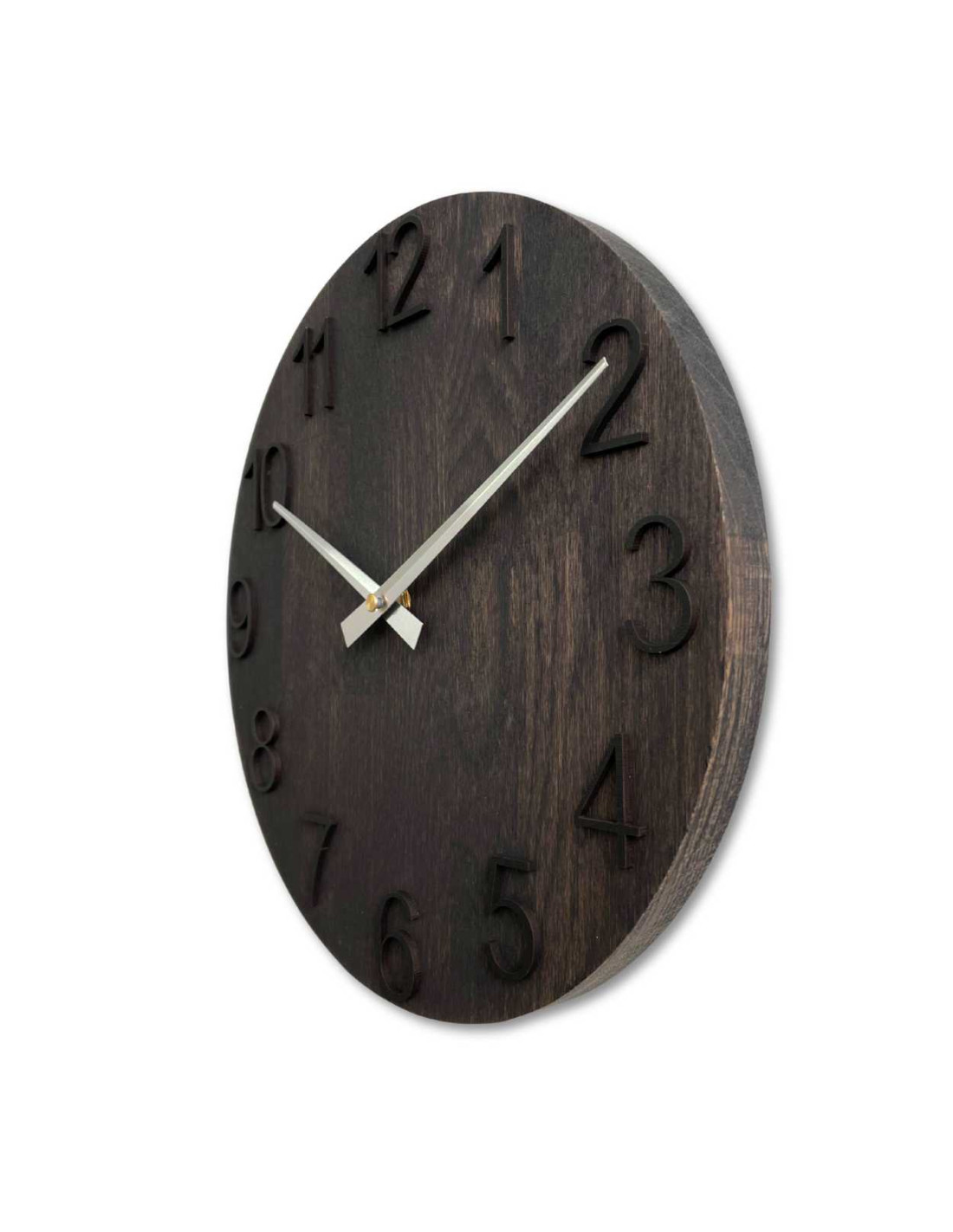 Cifrele sculptate și un design minimalist subtil evidențiază frumusețea naturală a lemnului.