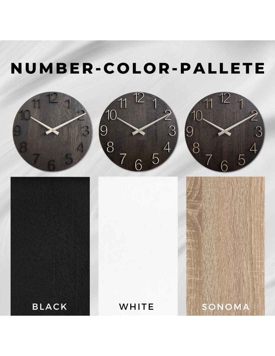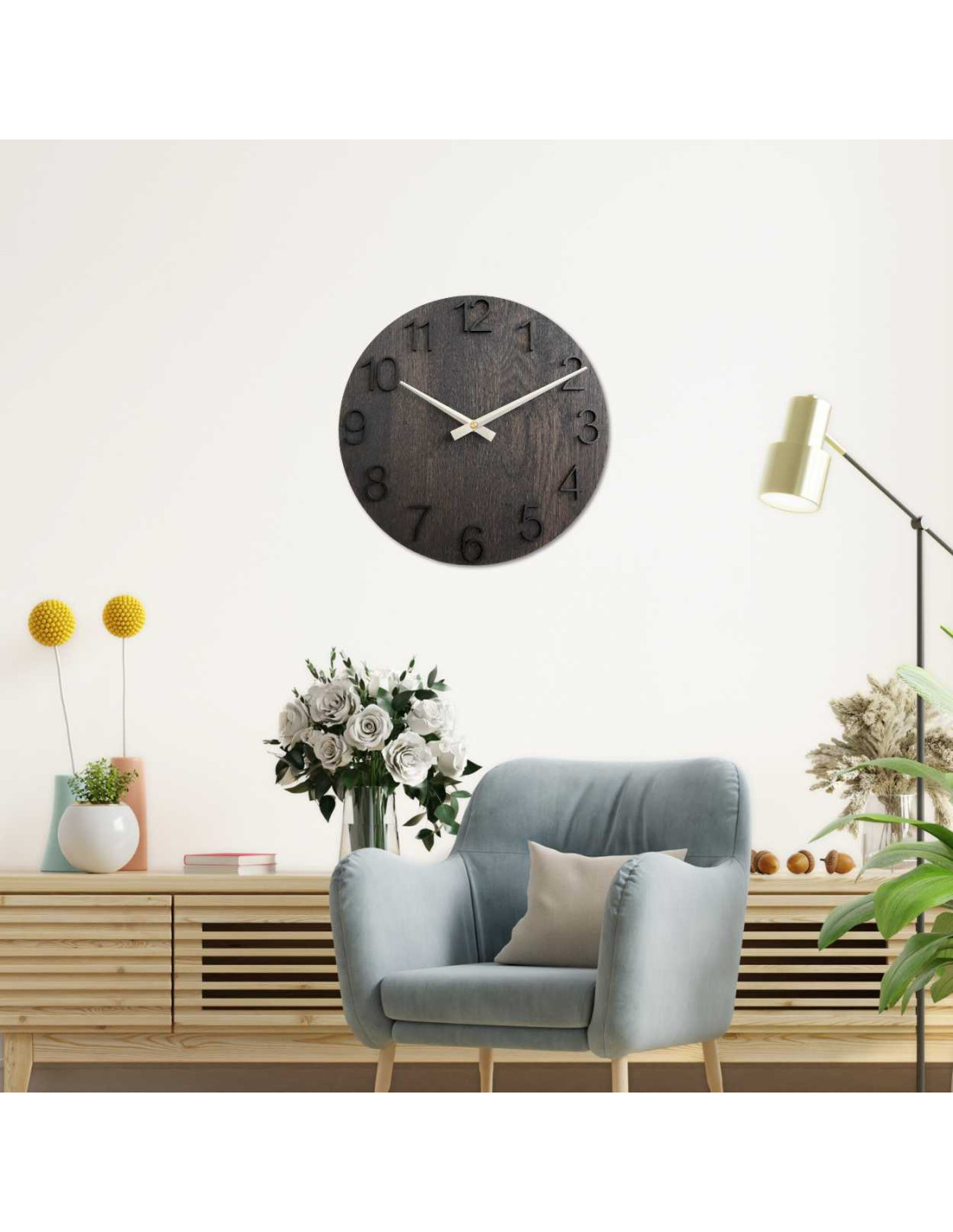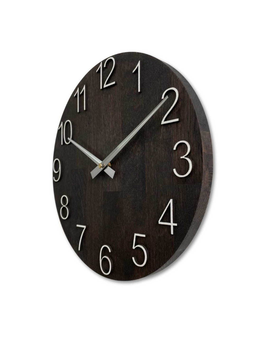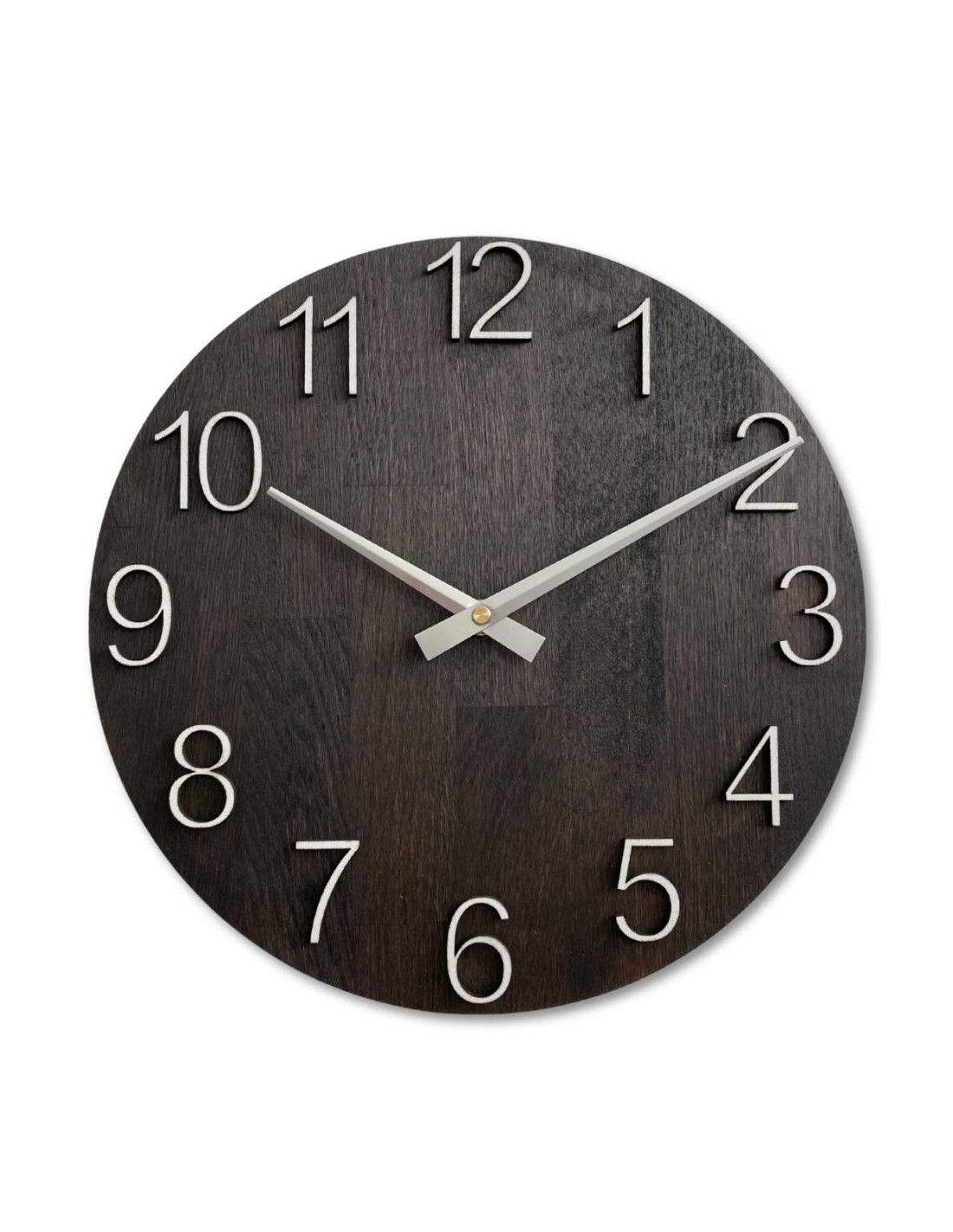 Cifrele sculptate și un design minimalist subtil evidențiază frumusețea naturală a lemnului.