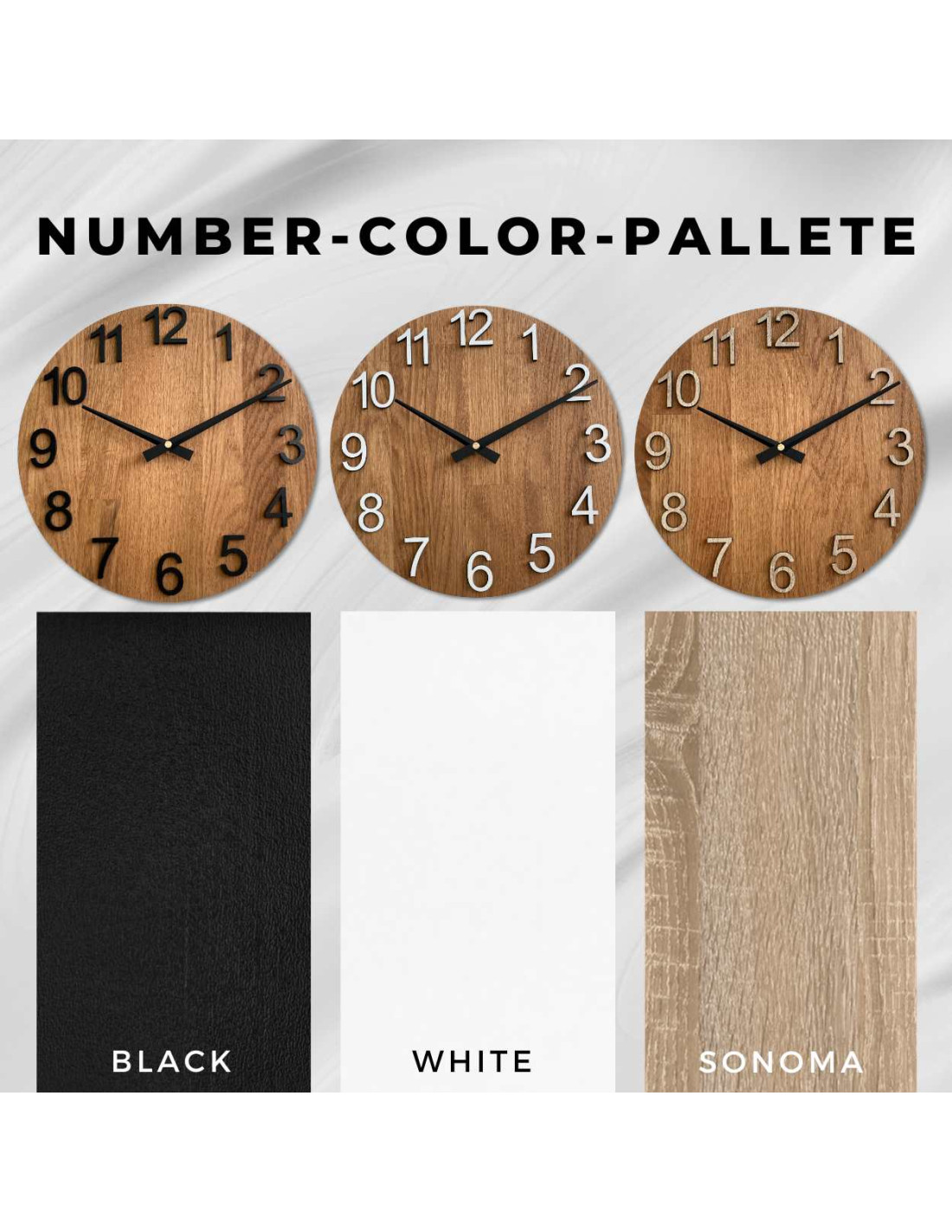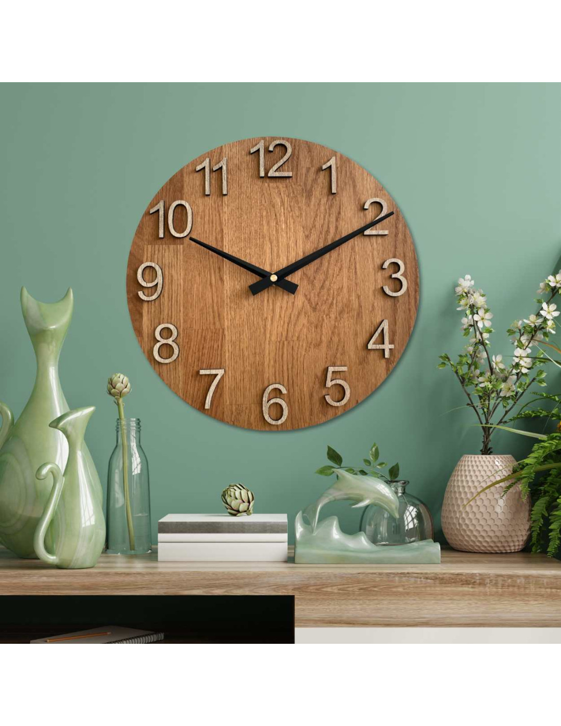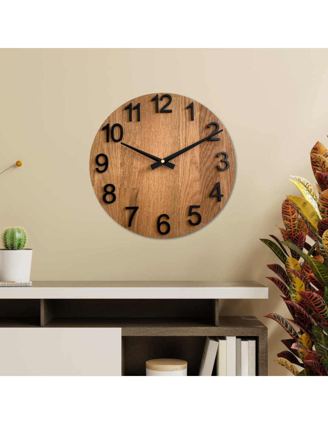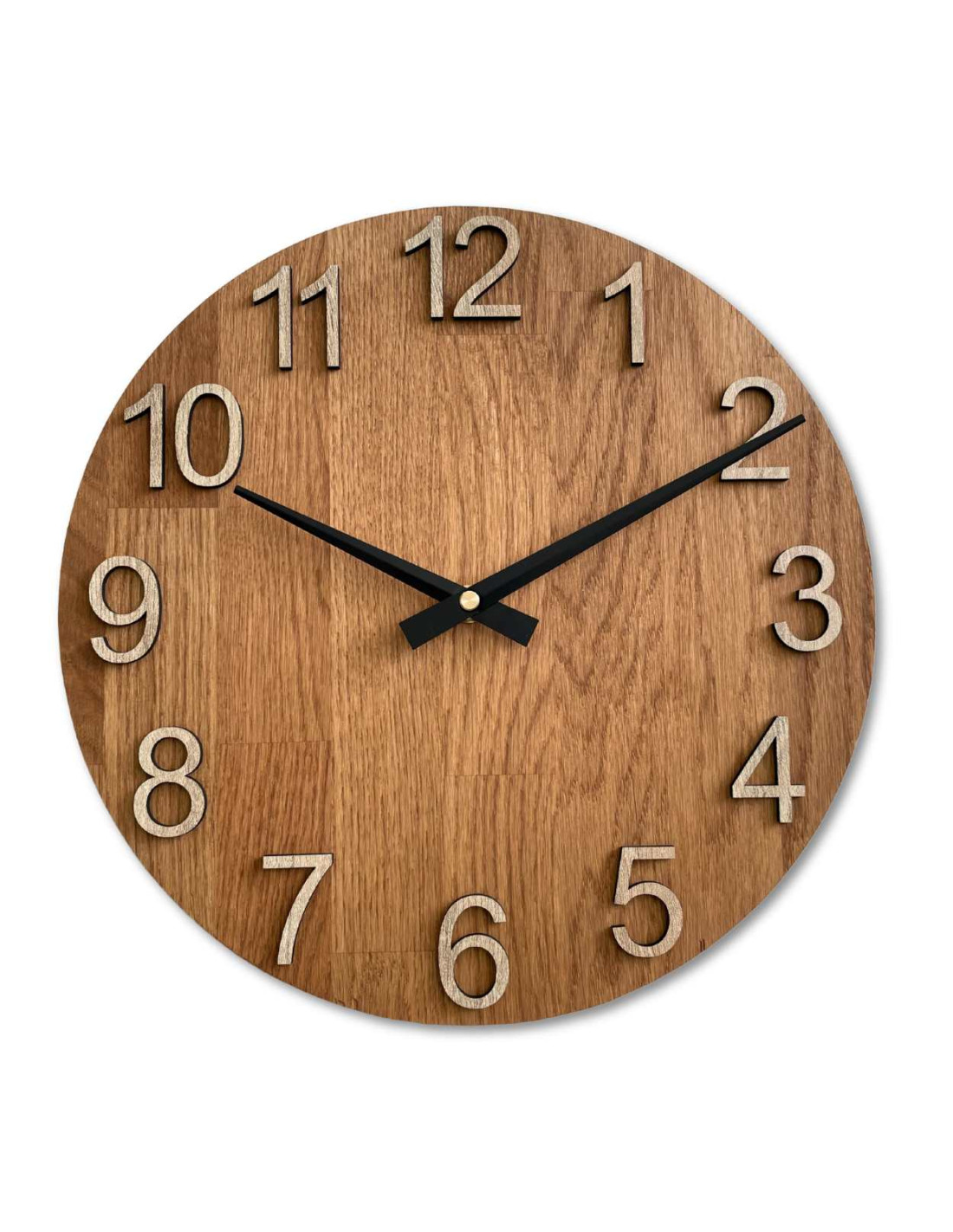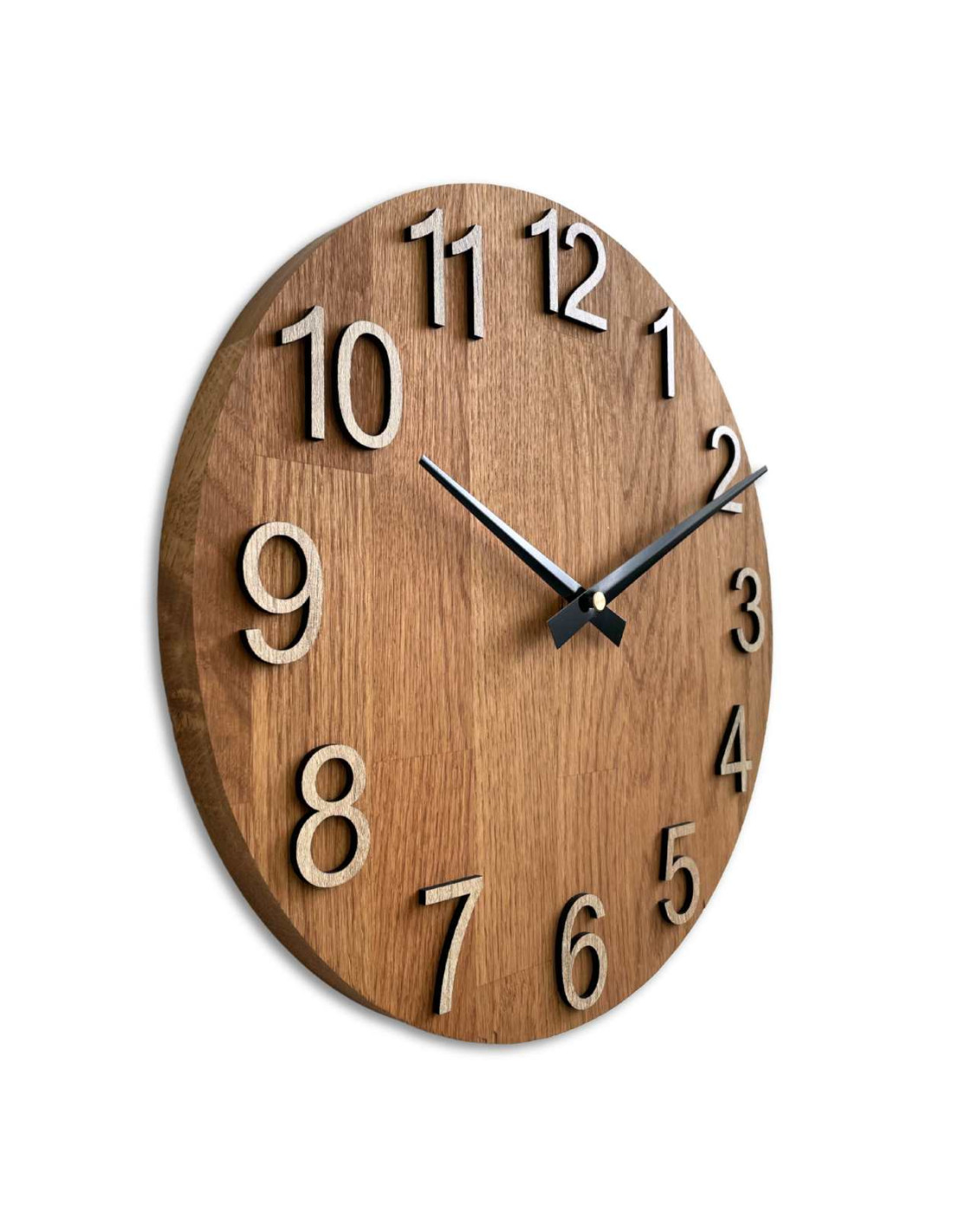 Ceas de perete din stejar cu cifre mari - DOMODRA