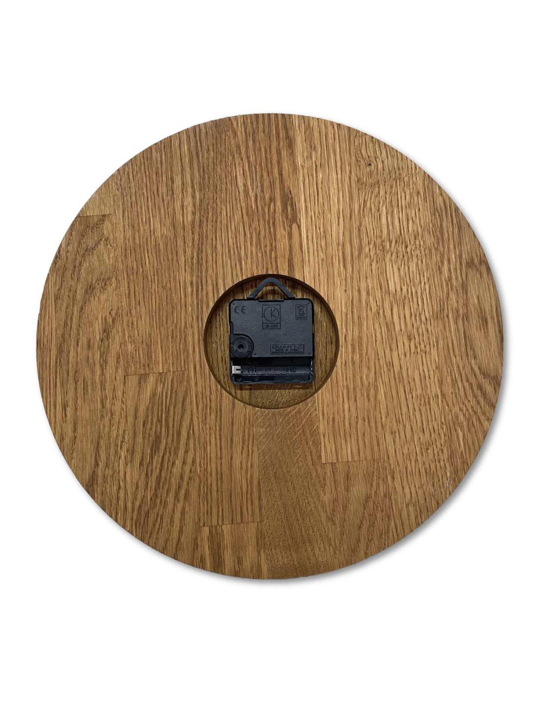 Un ceas de perete elegant, realizat din lemn masiv de stejar, combină frumusețea naturală cu caracterul practic.