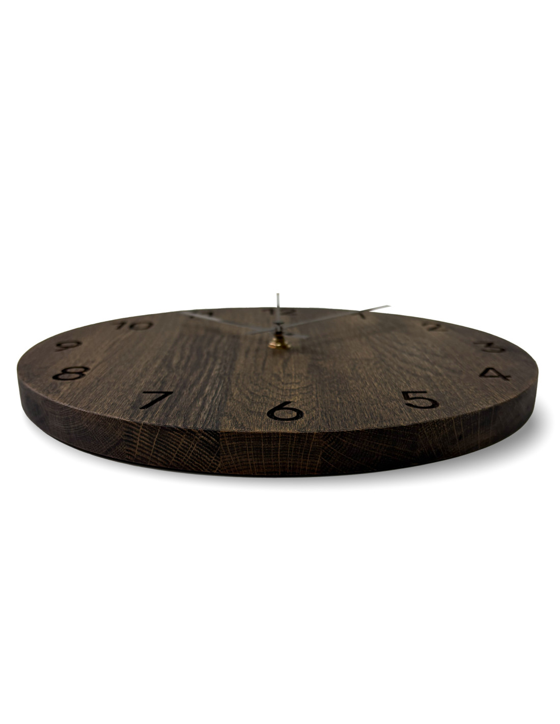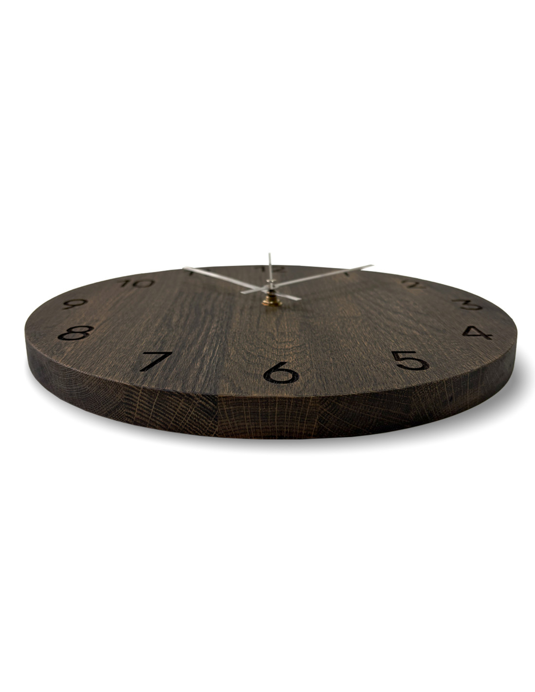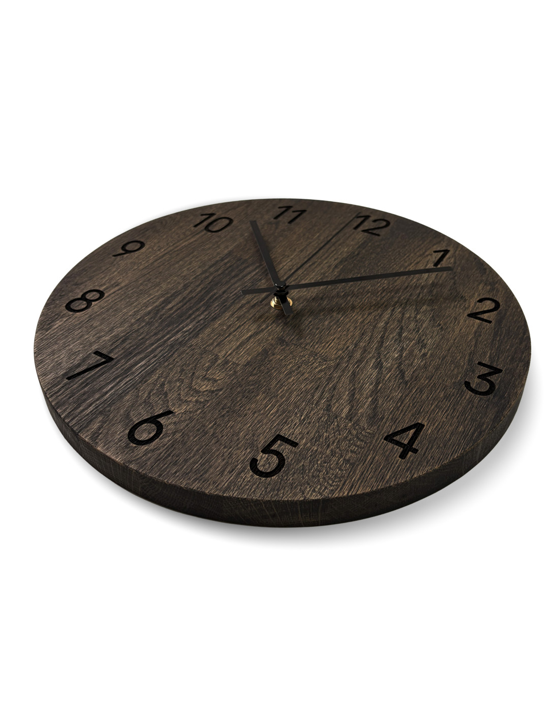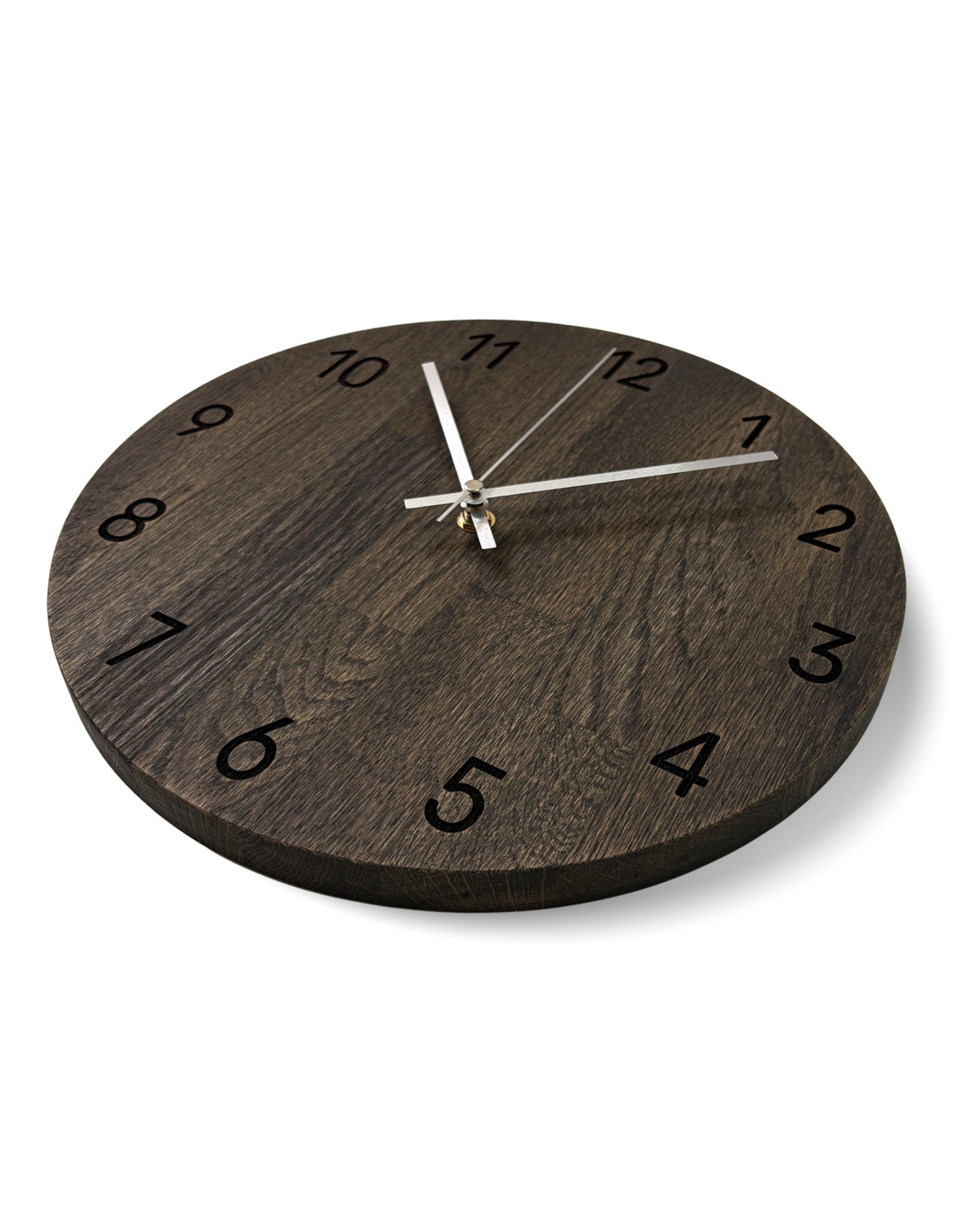 Fiecare ceas este fabricat din panouri masive de stejar, care sunt mai întâi tăiate cu precizie în forma și dimensiunea dorite folosind tehnologia CNC.