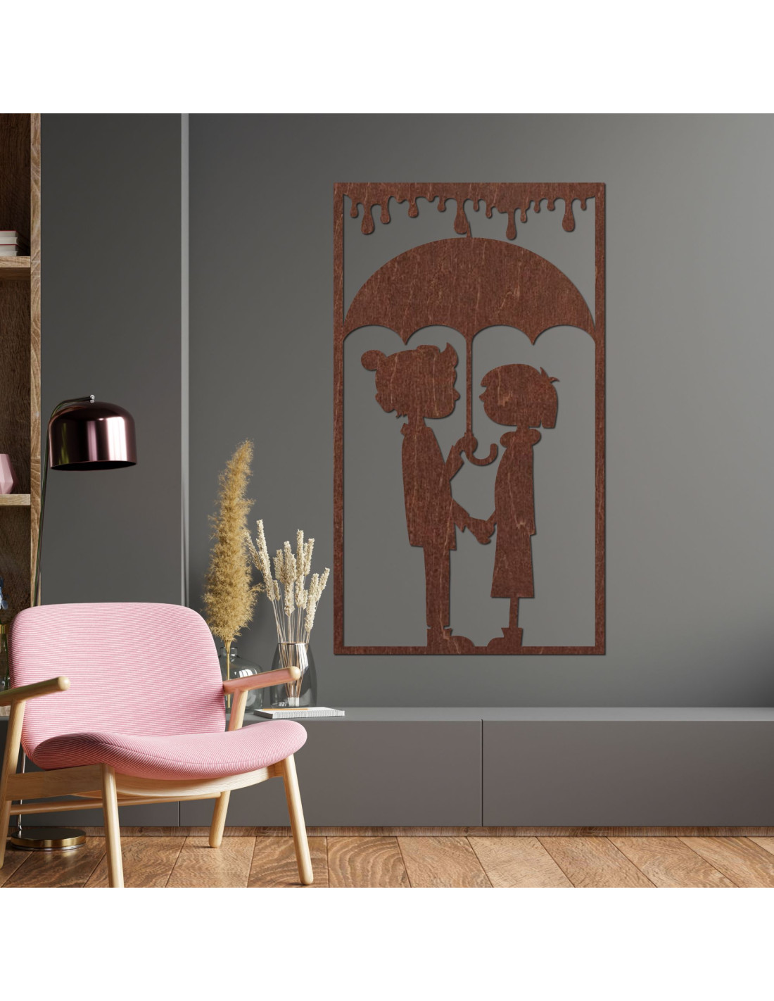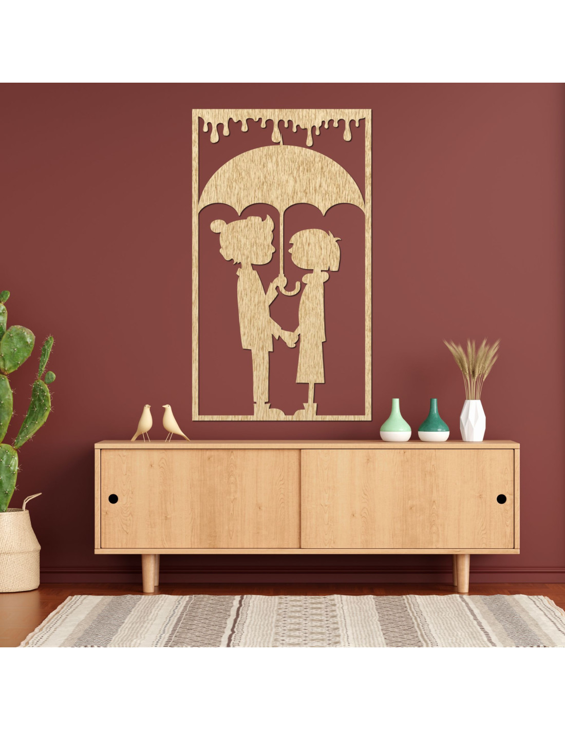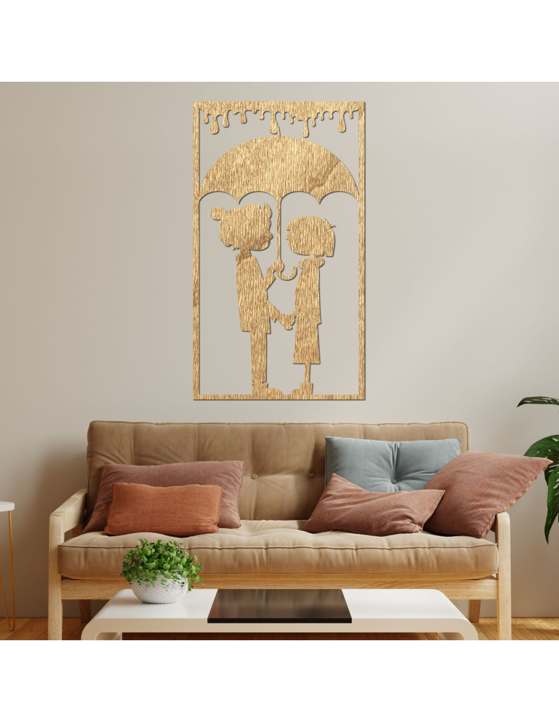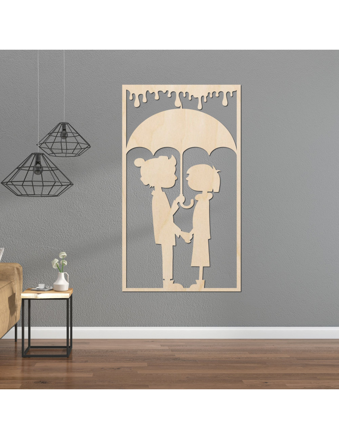 SentopAceastă decorațiune murală din lemn surprinde silueta a două personaje care stau sub o umbrelă comună. Compoziția creează un moment intim care reflectă protecția, unitatea și tandrețea dintre cele două personaje. Liniile delicate ale siluetei contribuie la eleganța și atemporalitatea designului. Ideală ca element decorativ pentru un interior care are nevoie de o notă de romantism și poveste.