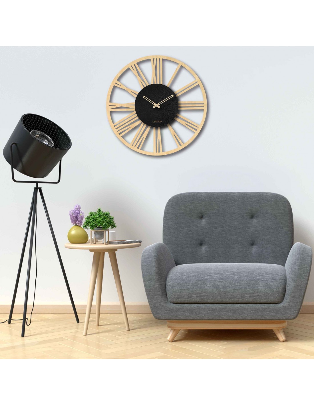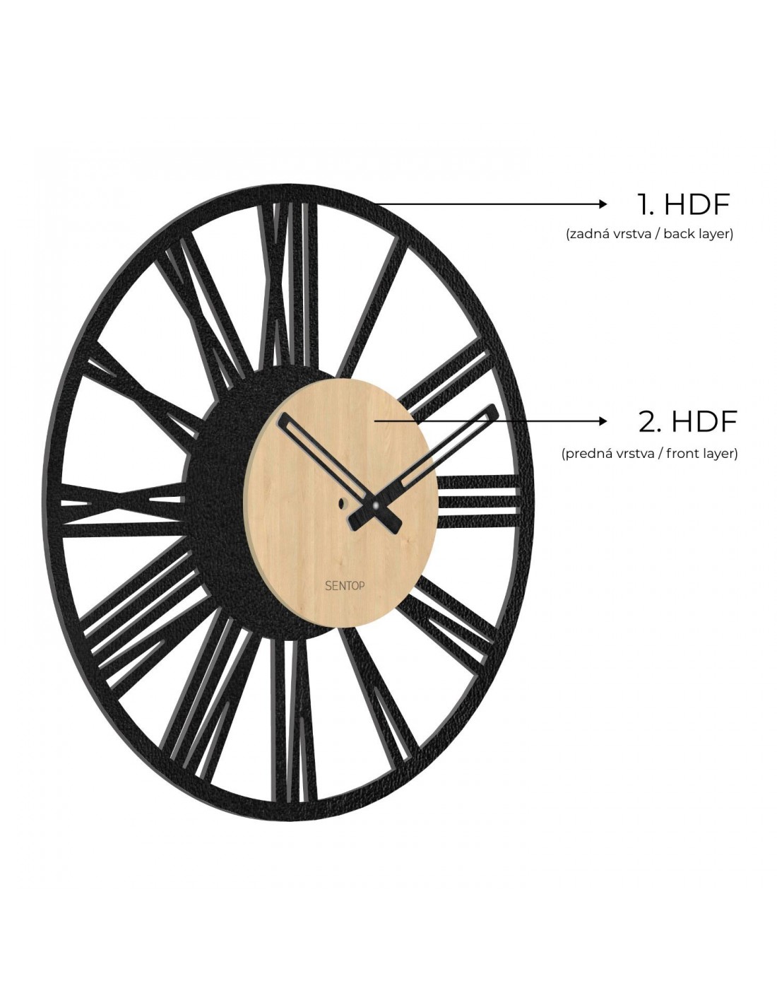 Ceas de perete cu cifre romane - Sentop | HDFK028 | arțar