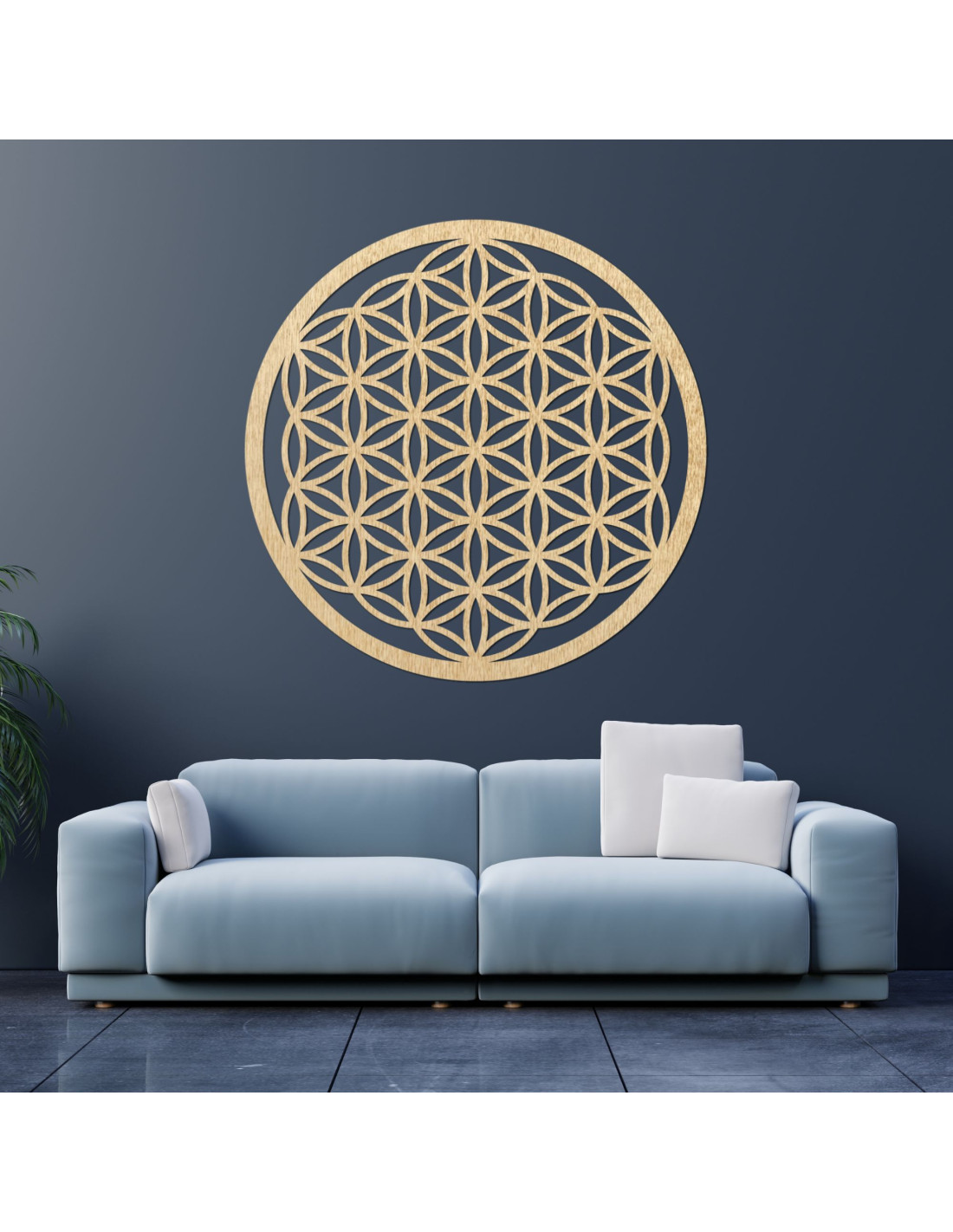 Mandala elegantă din lemn, Floarea Vieții. Armonizează spațiul, aduce pace și energie. Realizată manual în Slovacia de SENTOP.