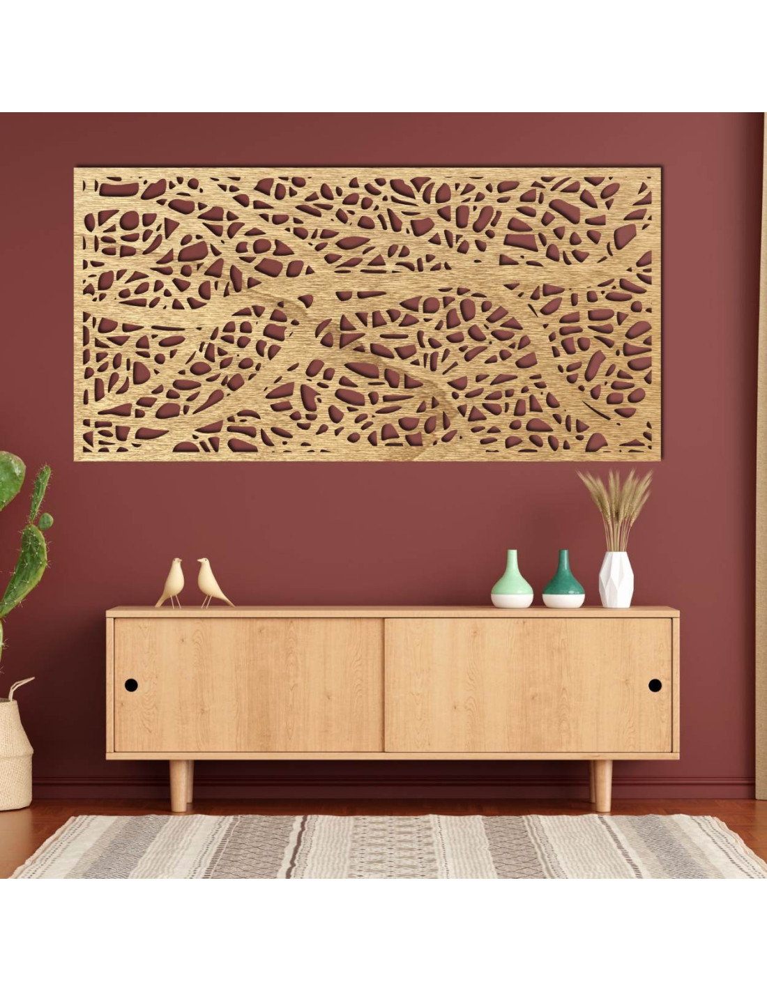 Un tablou elegant din lemn, realizat din placaj de înaltă calitate, cu un motiv sculptat detaliat în formă de copac, este completarea perfectă pentru casa ta.
