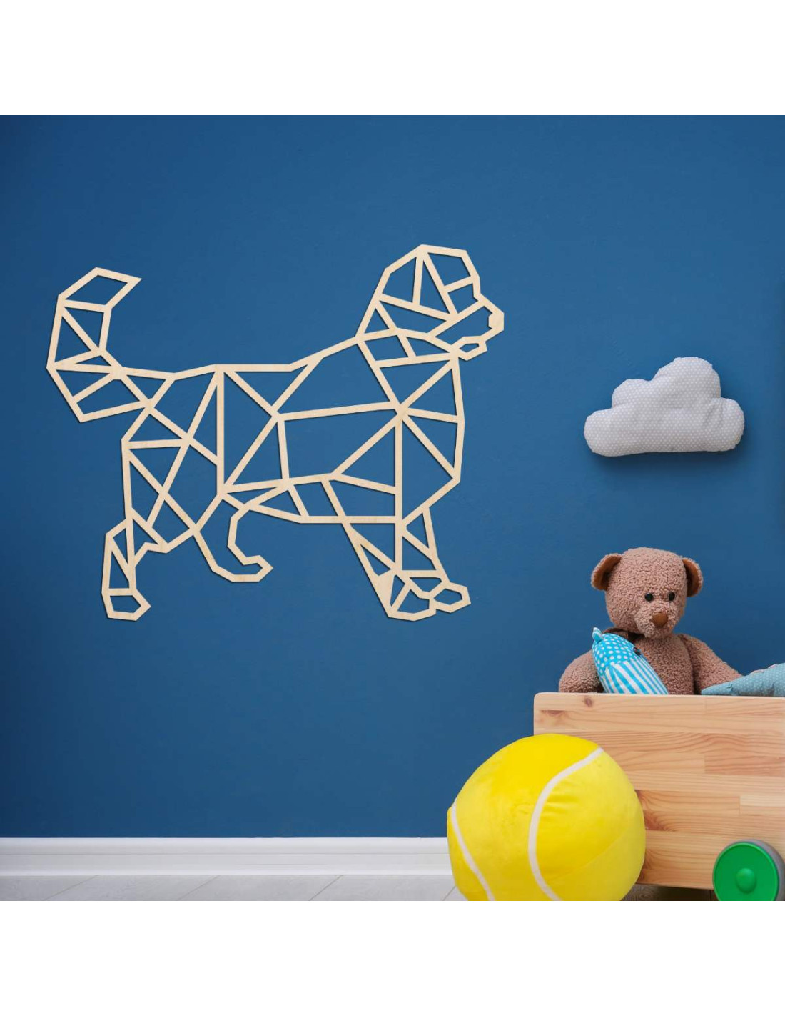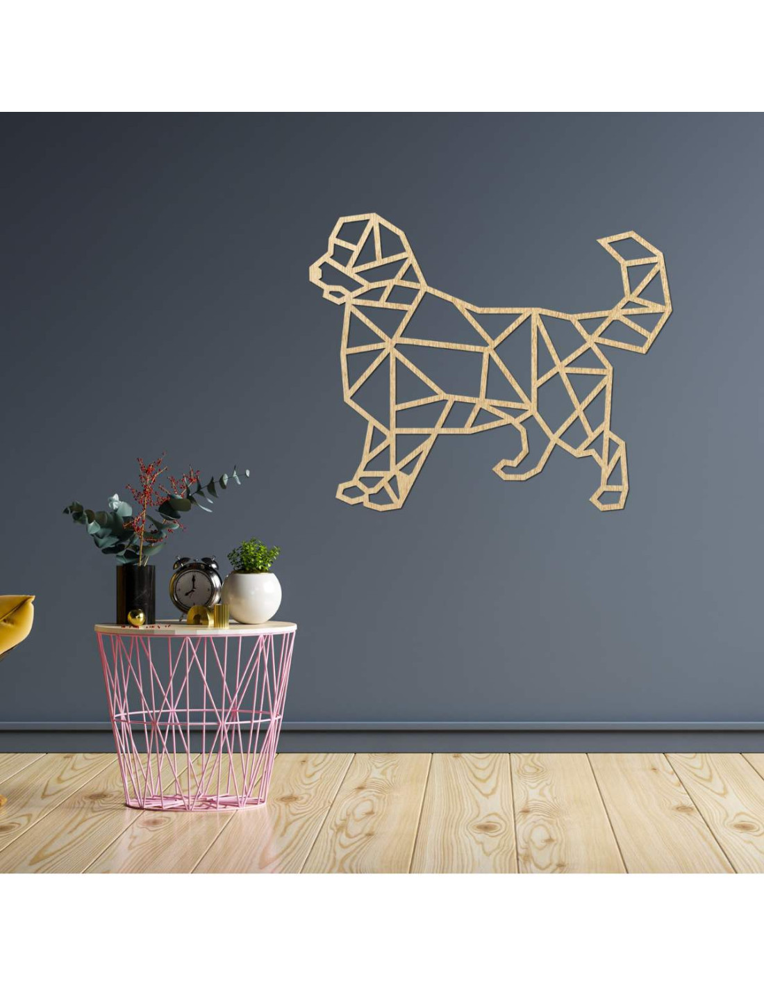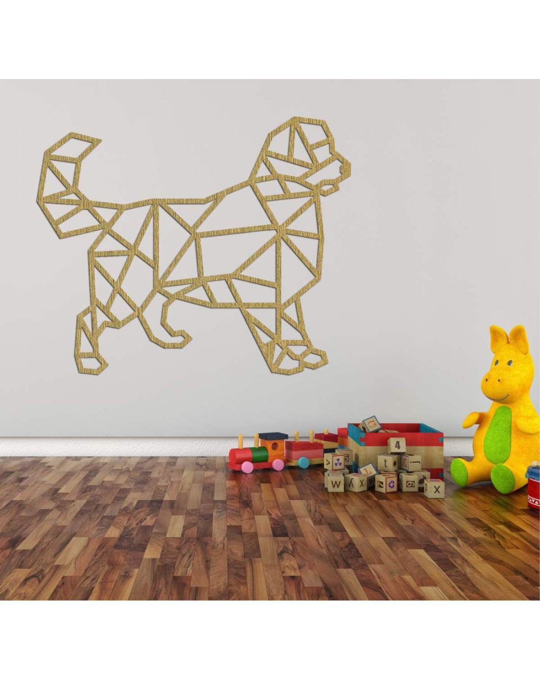 Înviorați-vă interiorul cu o decorațiune modernă din lemn, cu motiv de câine, în stil geometric.