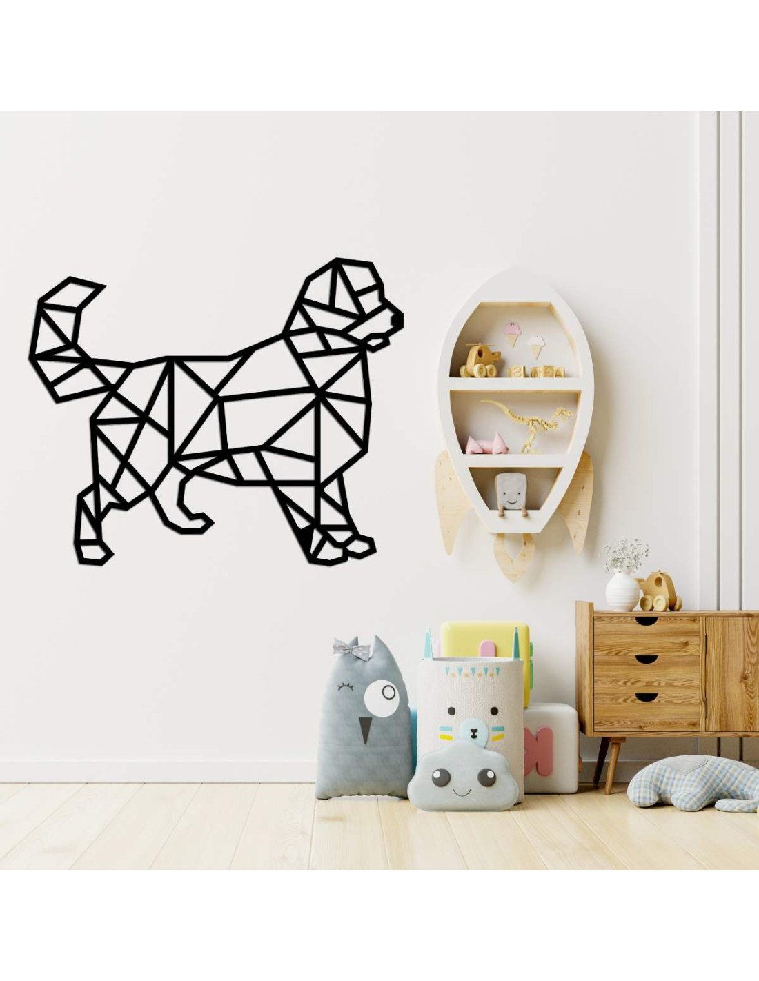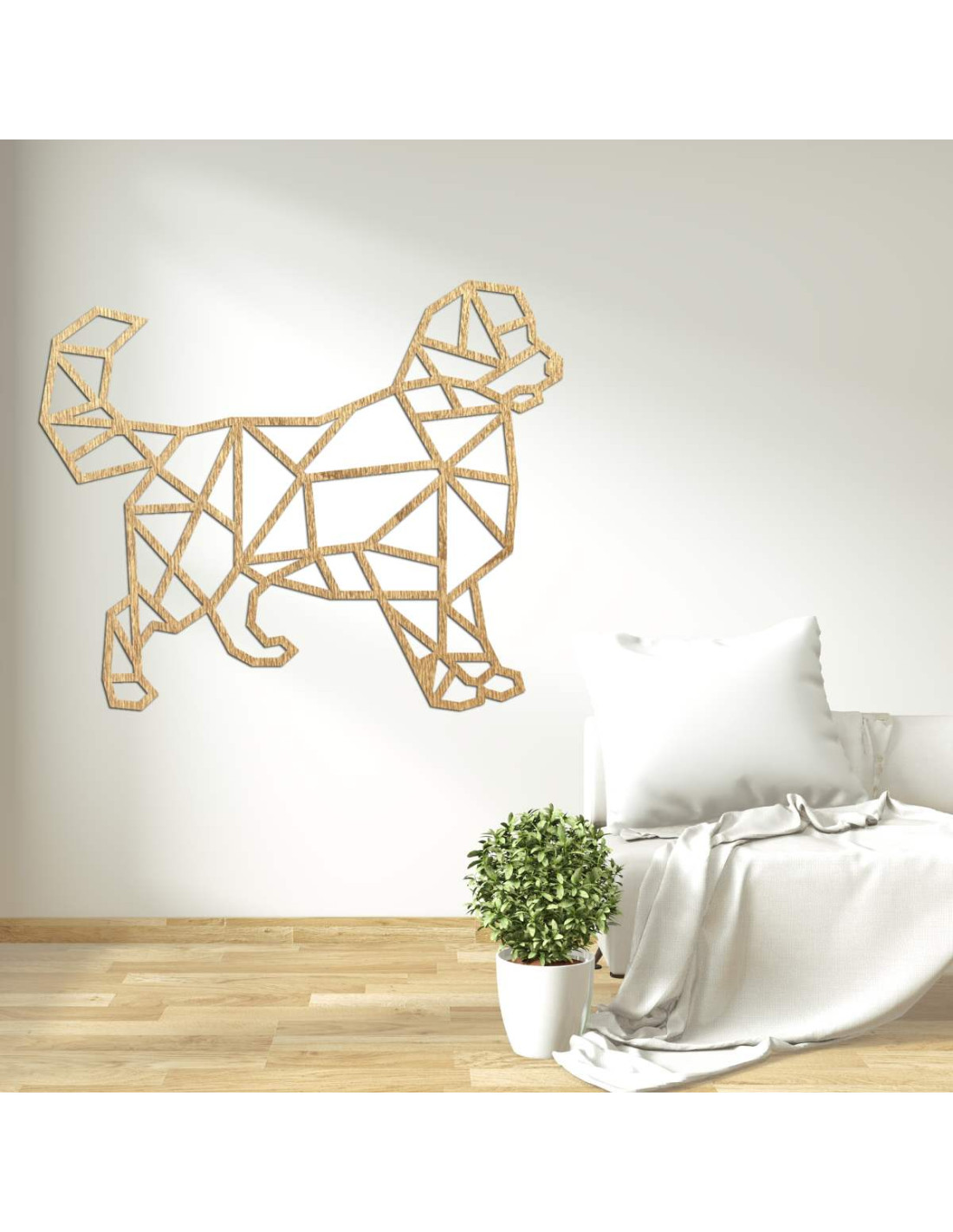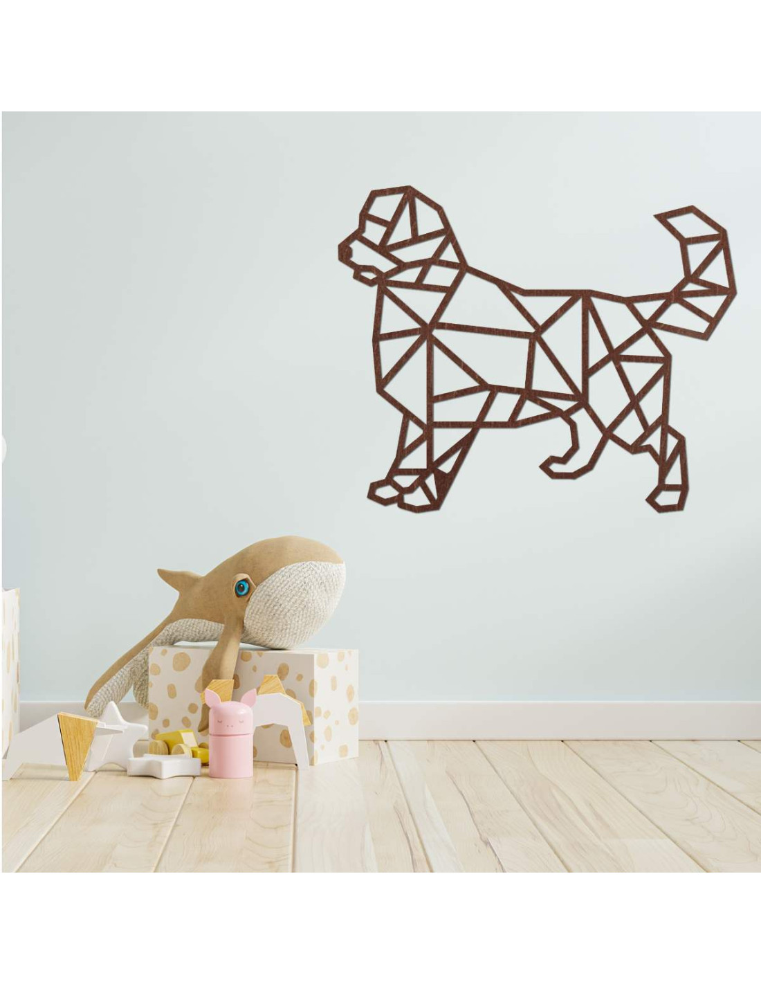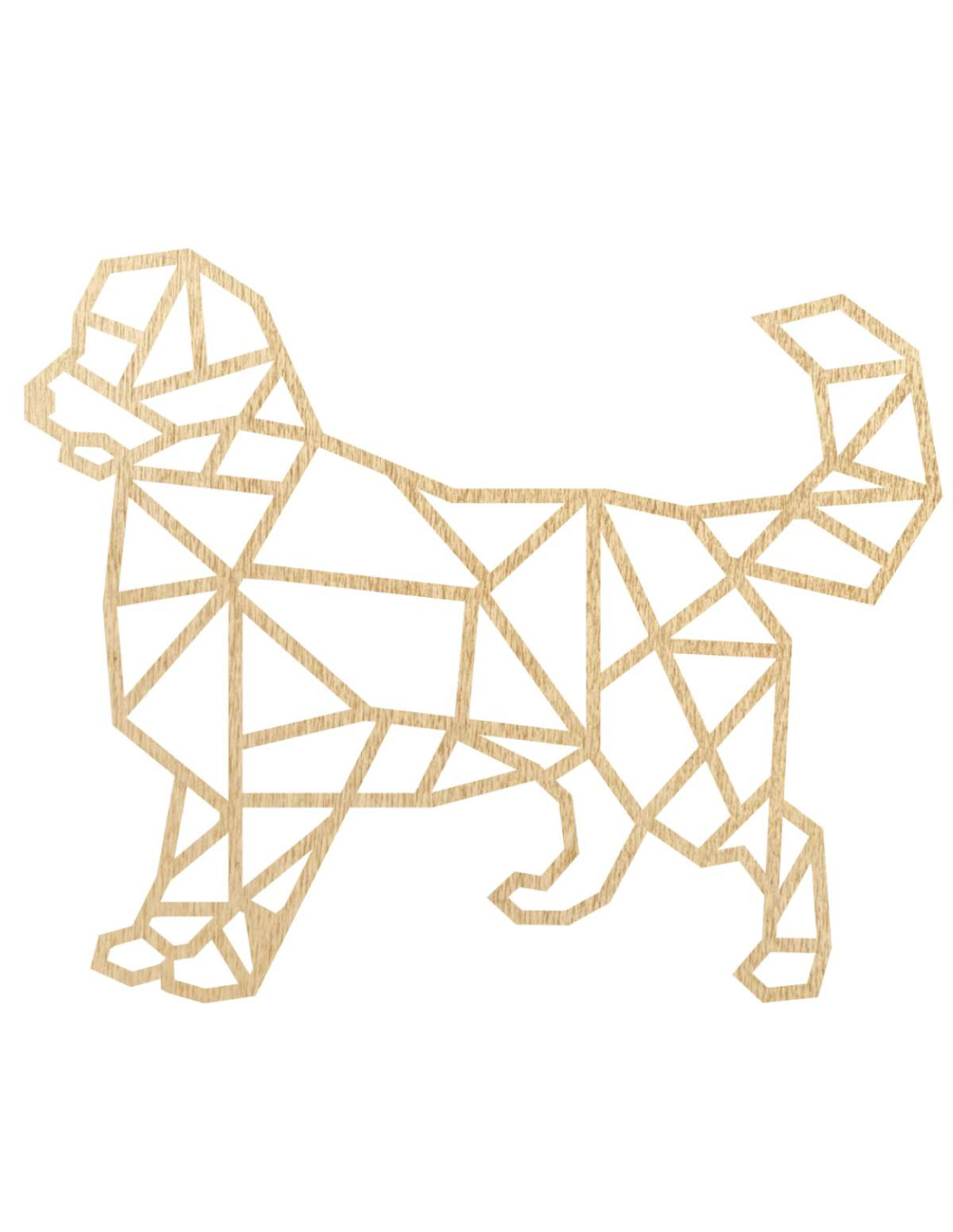 Înviorați-vă interiorul cu o decorațiune modernă din lemn, cu motiv de câine, în stil geometric.