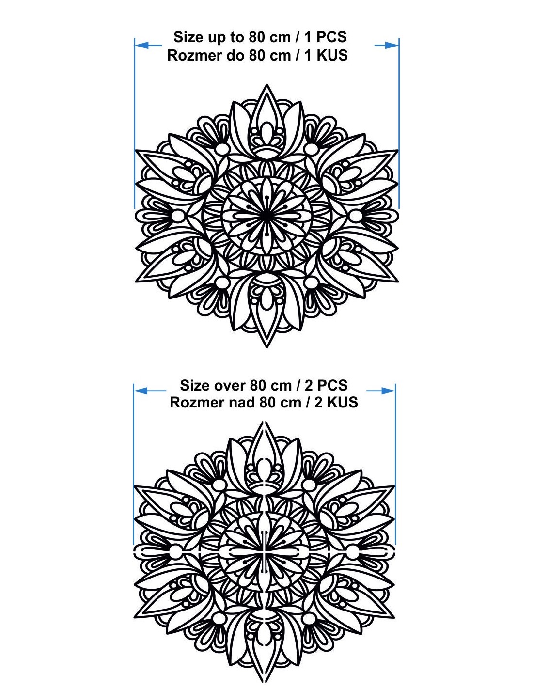 • De la 100 cm la 120 cm - decorațiunea este tăiată în două părți