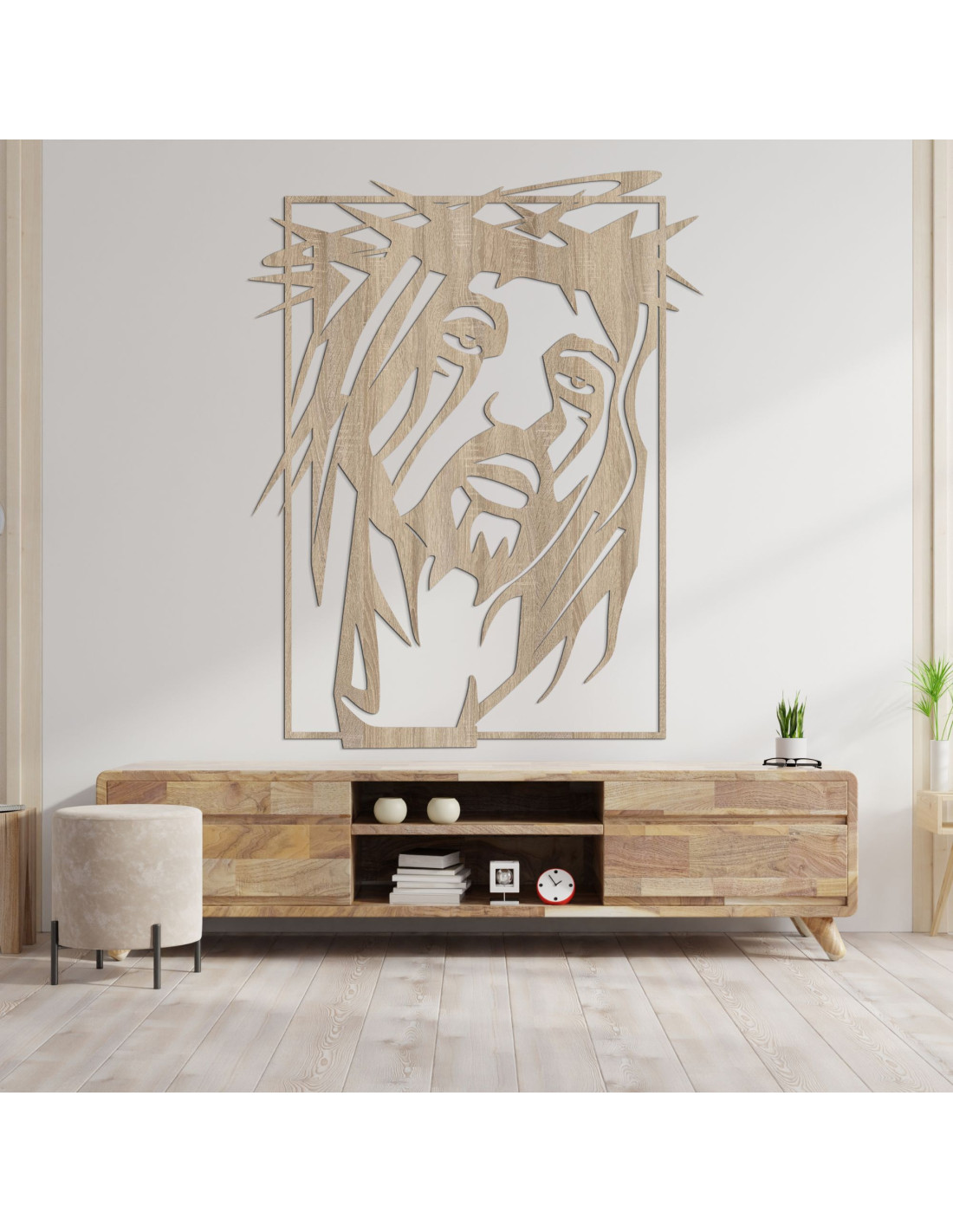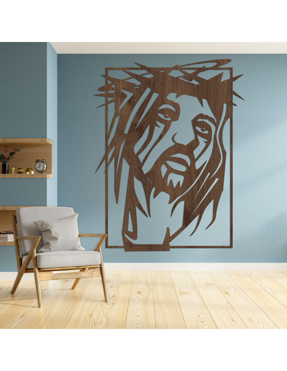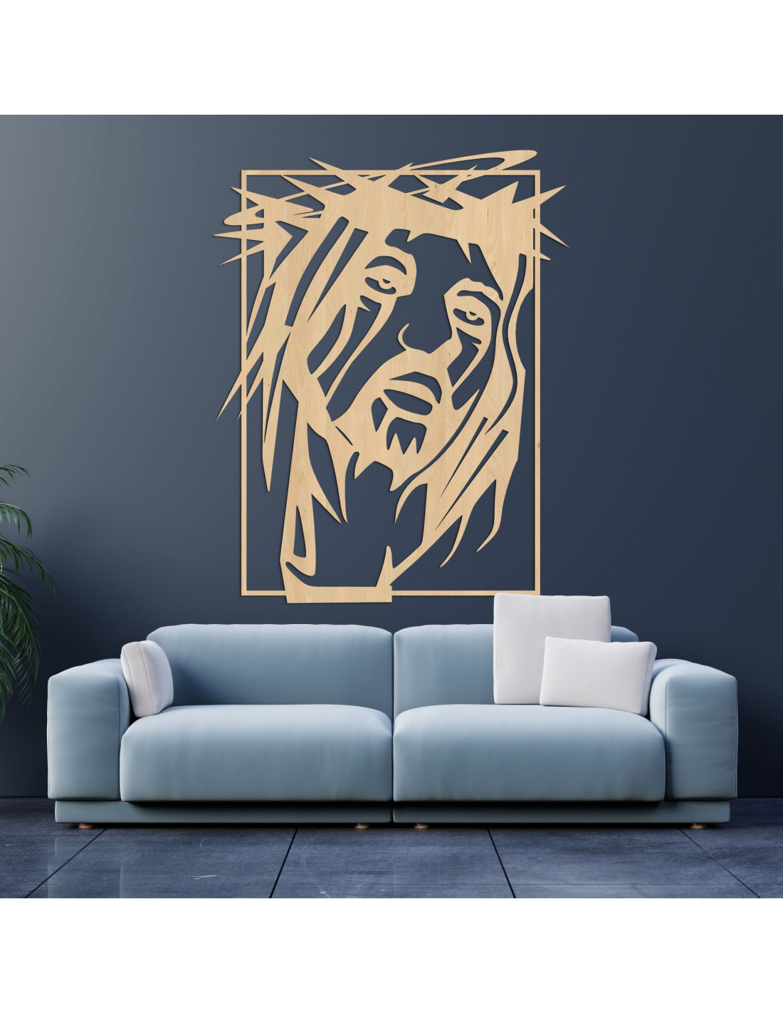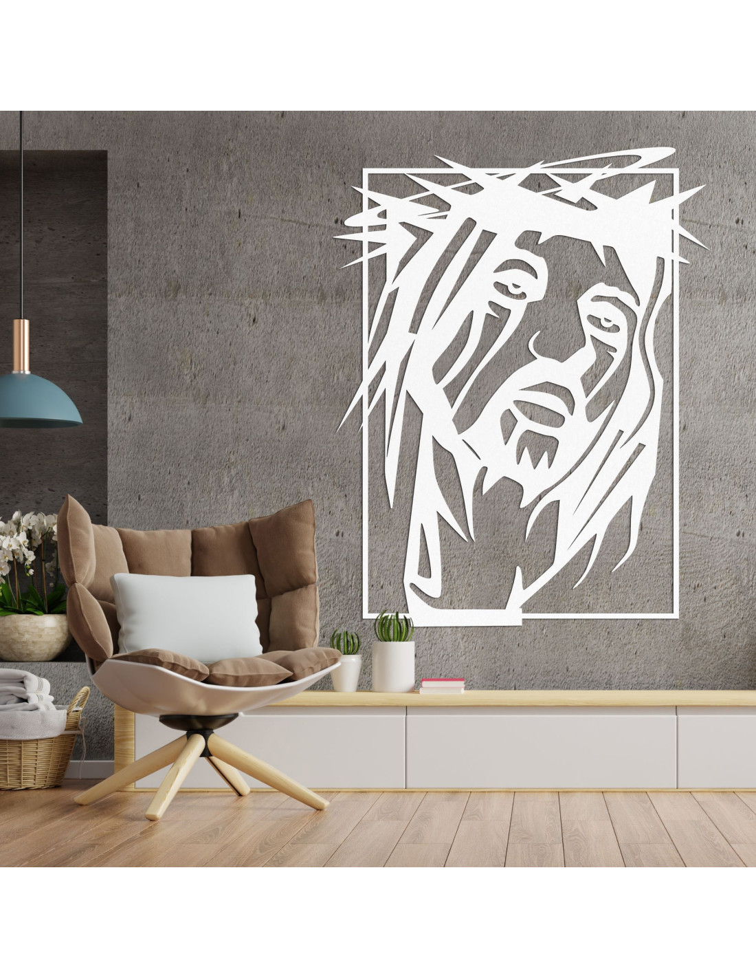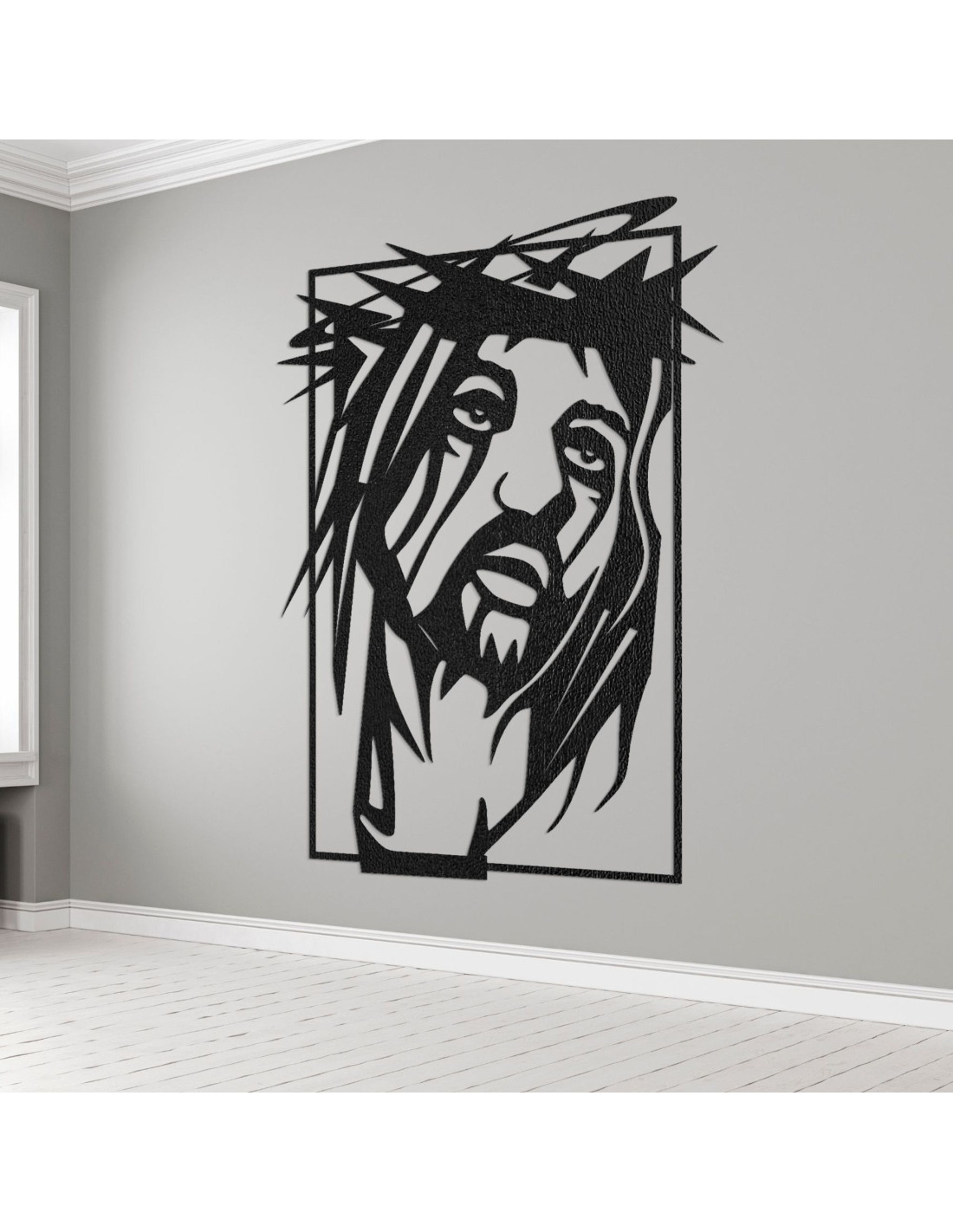 O imagine frapantă , cu un puternic simbolism spiritual, aduce pace , credință și putere în spațiu. Chipul lui Iisus Hristos este surprins cu o expresie emoțională profundă, care va atrage fiecare observator . Prelucrarea precisă și interacțiunea formelor creează un moment de pauză puternic din punct de vedere vizual. Designul combină simplitatea artistică cu o declarație religioasă .