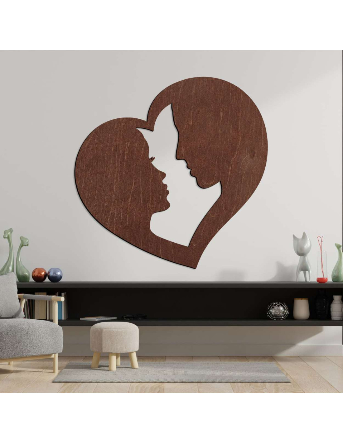 Adu în casa ta o emoție care nu se demodează niciodată. Acest decor de perete elegant în formă de inimă, cu siluete de fețe, este mai mult decât o simplă decorațiune - este o expresie artistică a iubirii, conexiunii și înțelegerii.