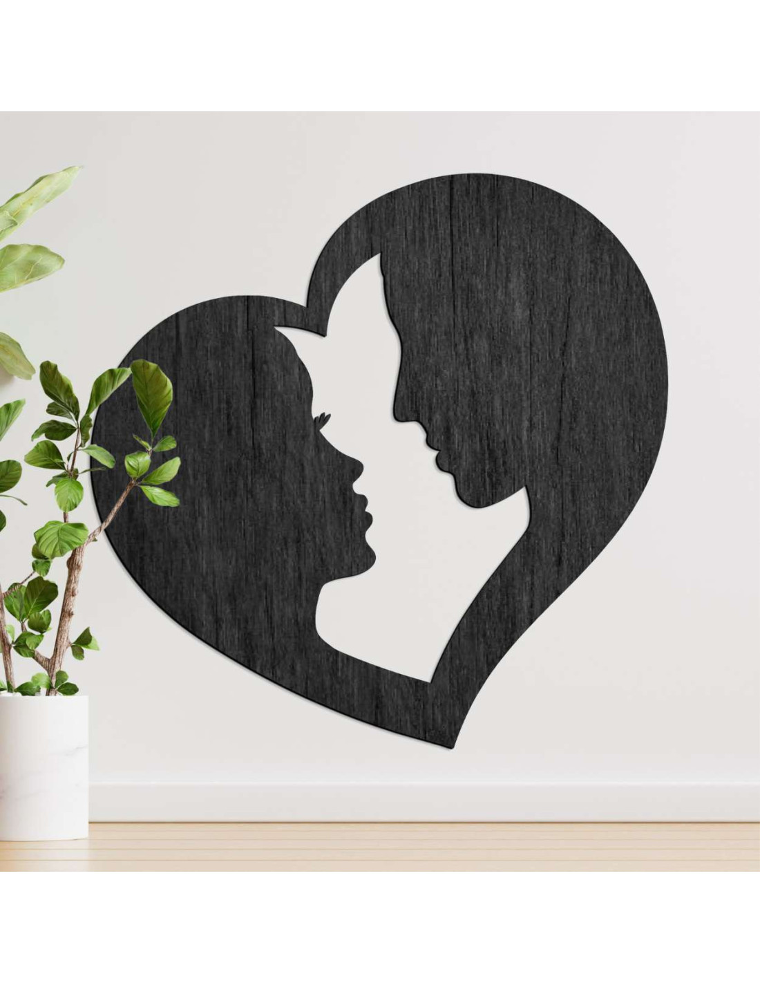 Designul minimalist și forma simbolică fac din această piesă un plus ideal pentru dormitorul, camera de zi sau ca un cadou pentru persoana specială din viața ta. Materialul ușor permite o instalare ușoară, în timp ce silueta neagră va ieși în evidență pe orice fundal.