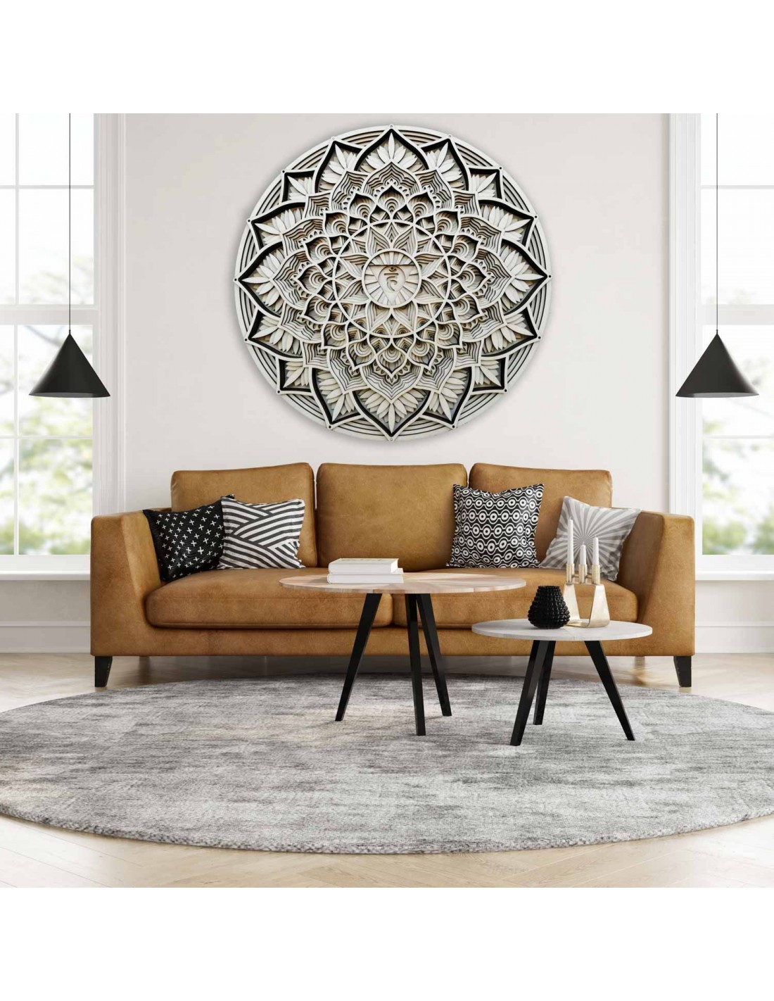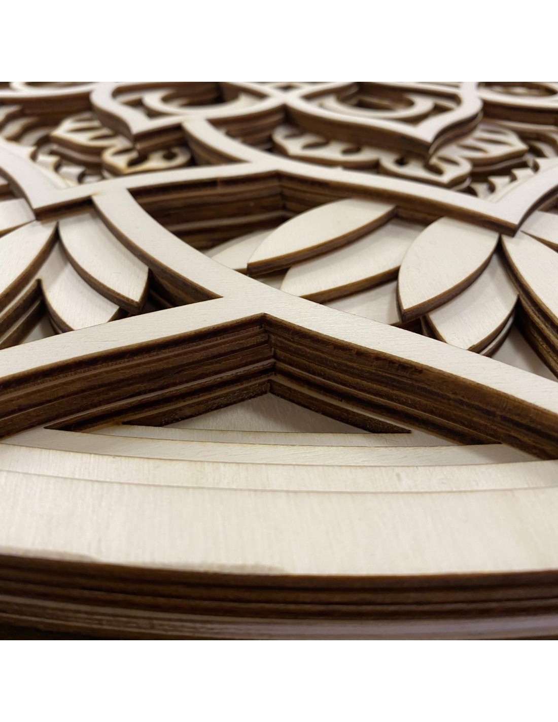 Mandala exclusivă și detaliată este compusă din mai multe straturi care împreună creează un efect 3D. Modelele de mandală simbolizează ideea că viața nu se termină niciodată și că totul este interconectat.
