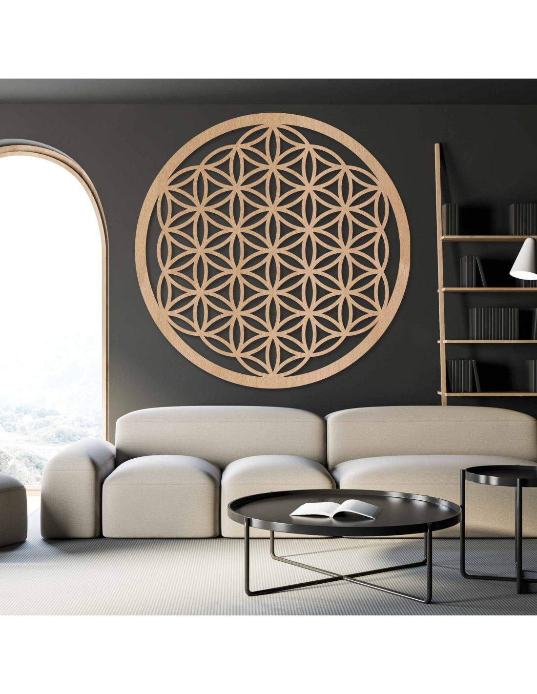 Decorațiune murală din lemn Floarea Vieții cu geometrie sacră, mandală | FOGO