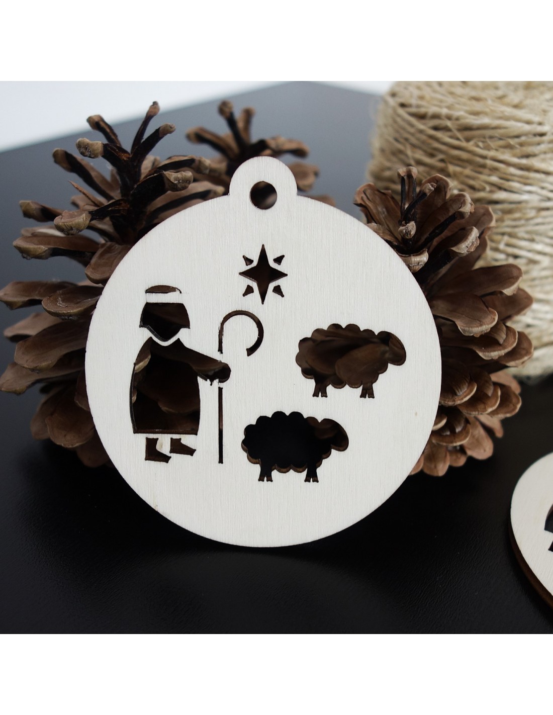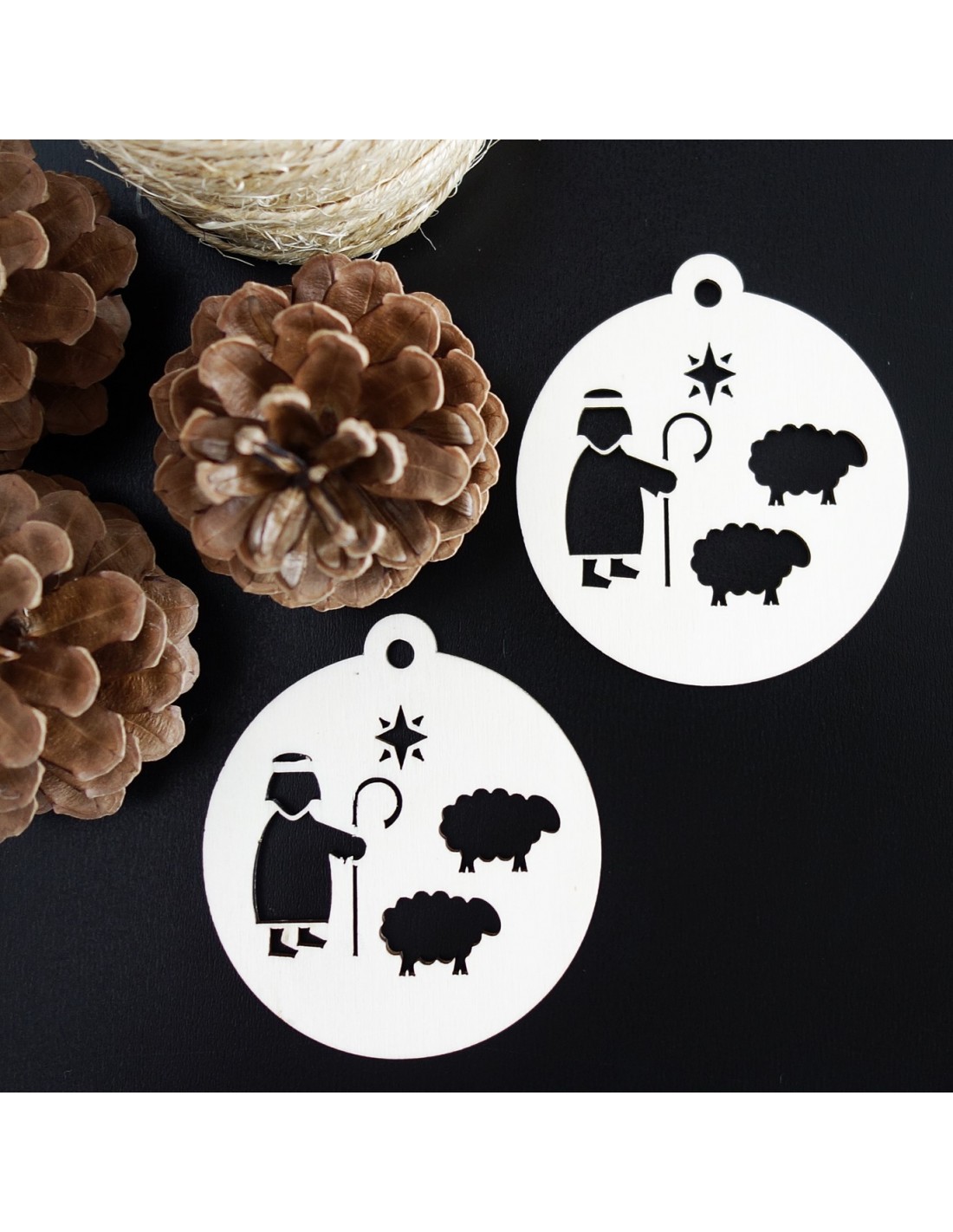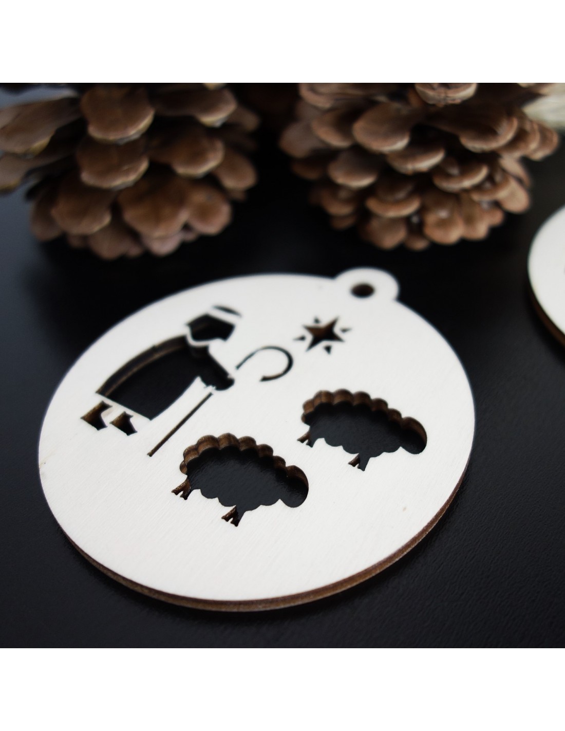 Ornament de Crăciun din lemn - Păstor, dimensiune: 79x90 mm