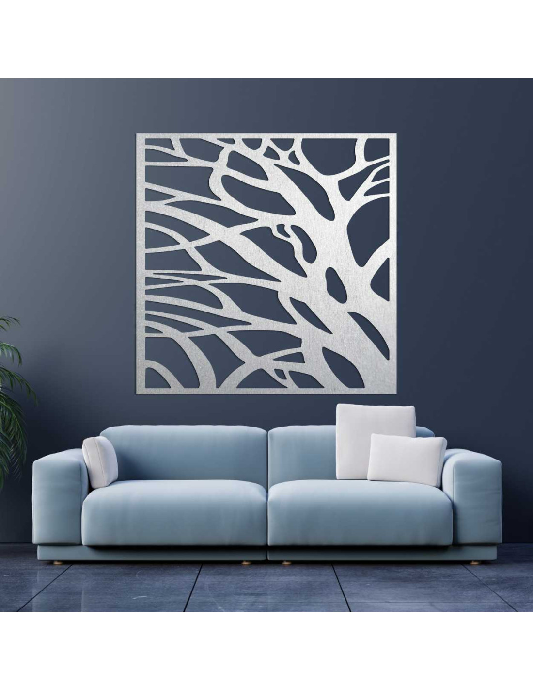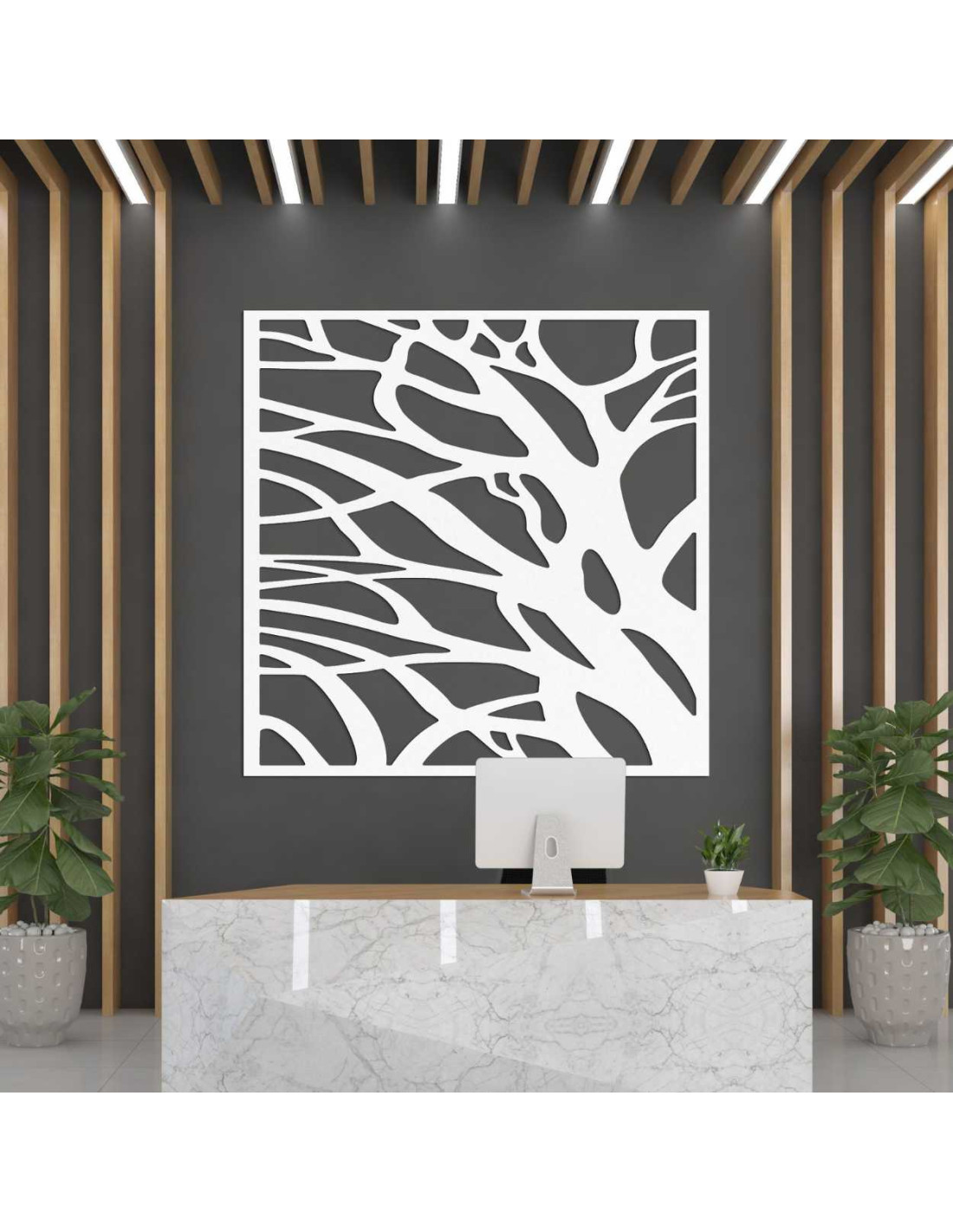 Motivul copacului în formă abstractă aduce un simbol al creșterii, păcii și conexiunii.