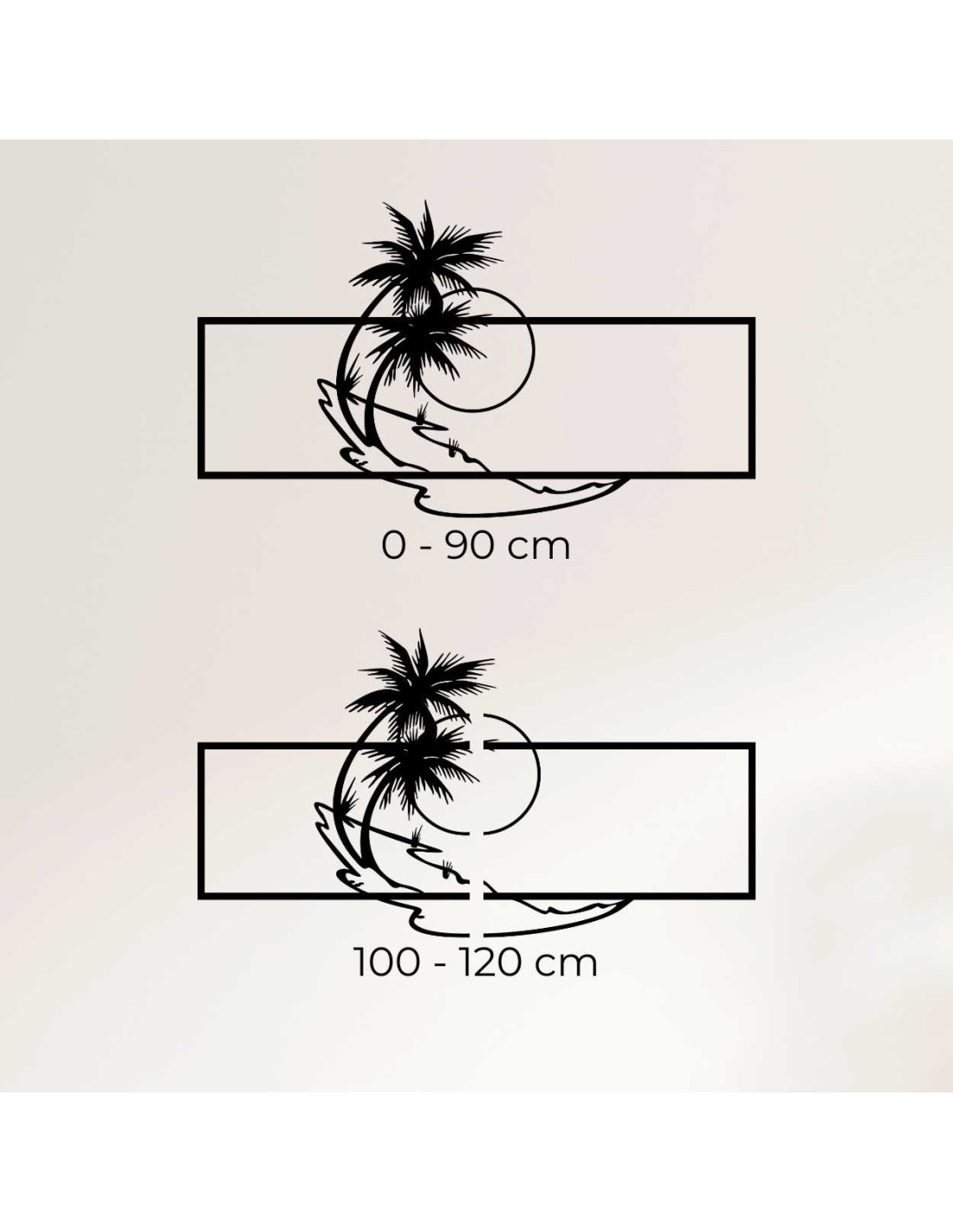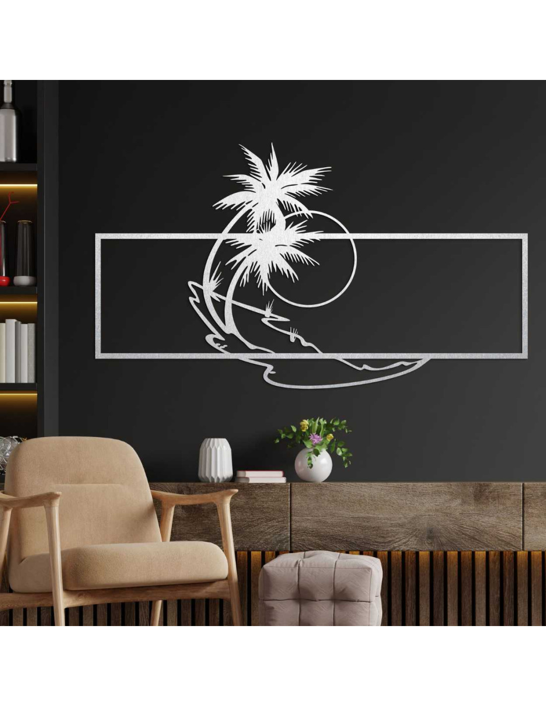 Decorul metalic cu motiv de palmier și plajă arată minimalist, dar în același timp aduce o notă de exotism interiorului.
