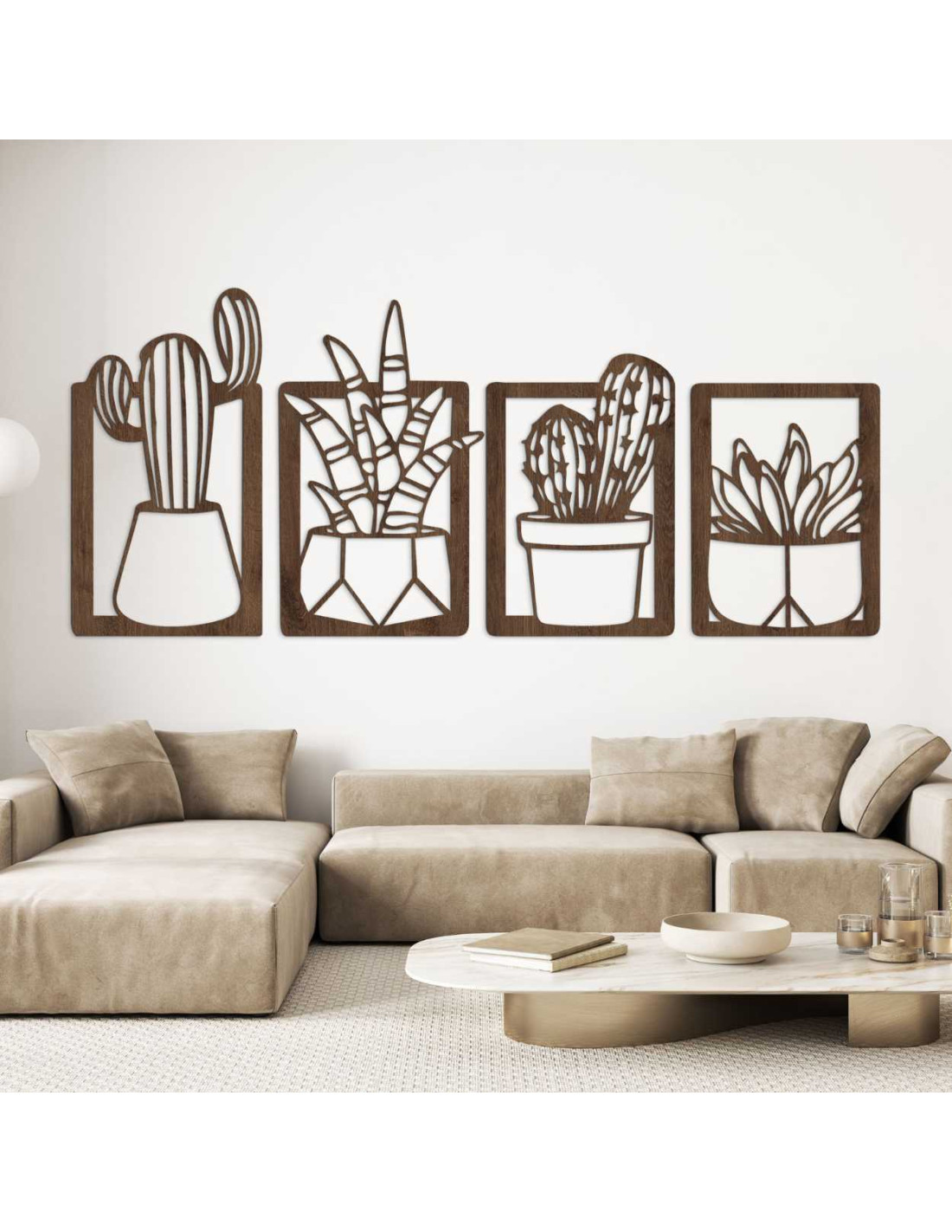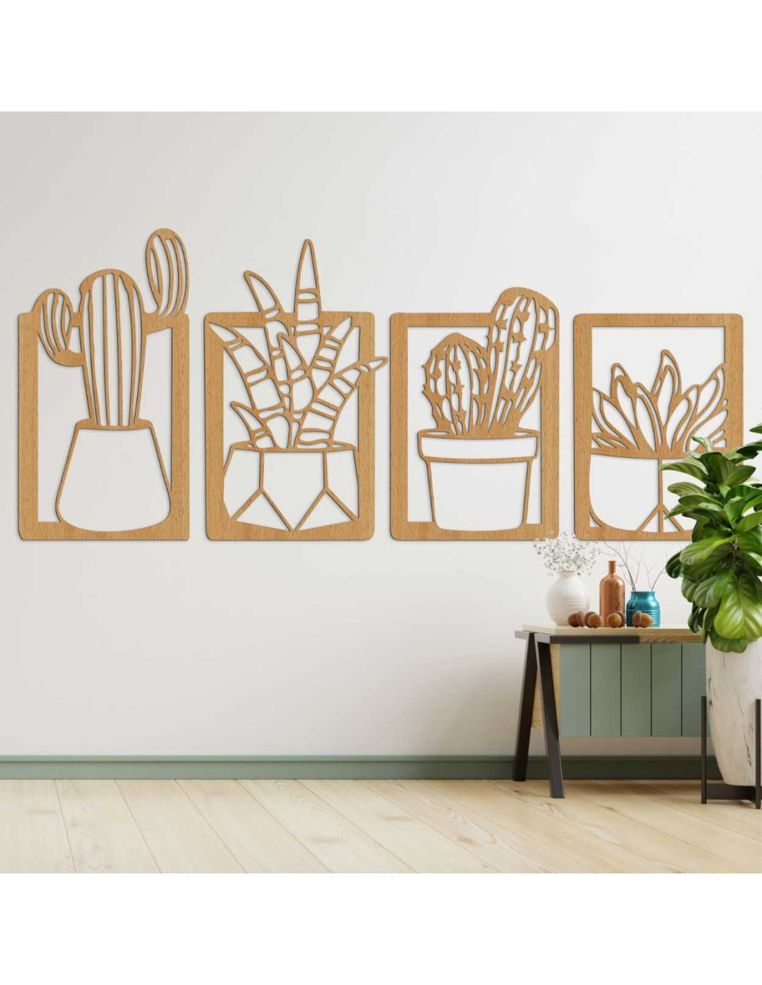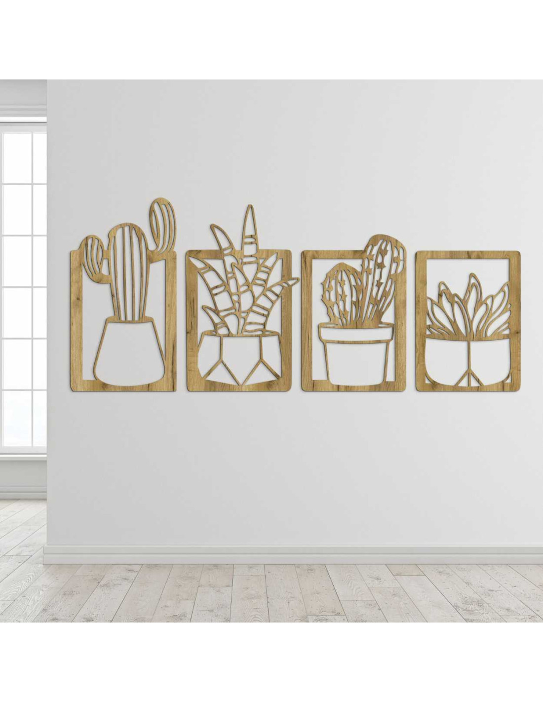 Decorațiunile murale moderne din lemn, cu motiv vegetal de cactuși, reprezintă o măiestrie elegantă și un design delicat .