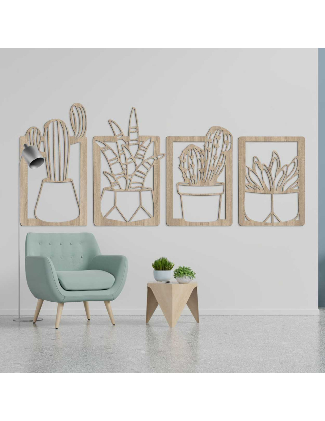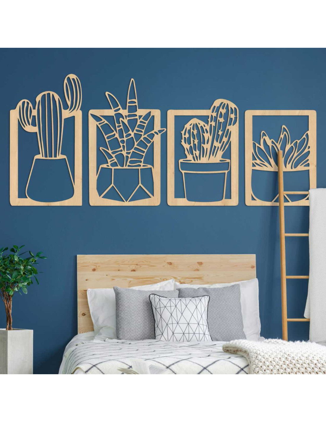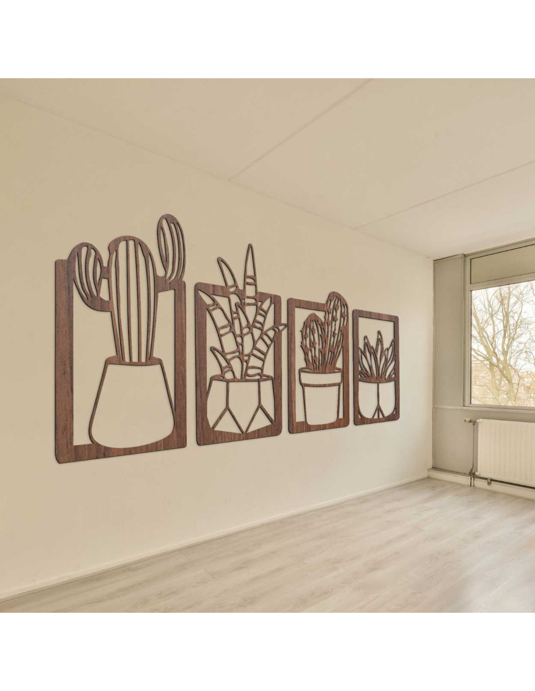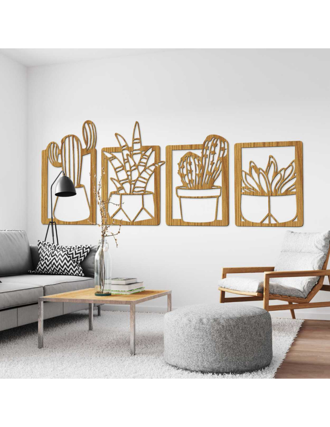 Decorațiunile murale moderne din lemn, cu motiv vegetal de cactuși, reprezintă o măiestrie elegantă și un design delicat .
