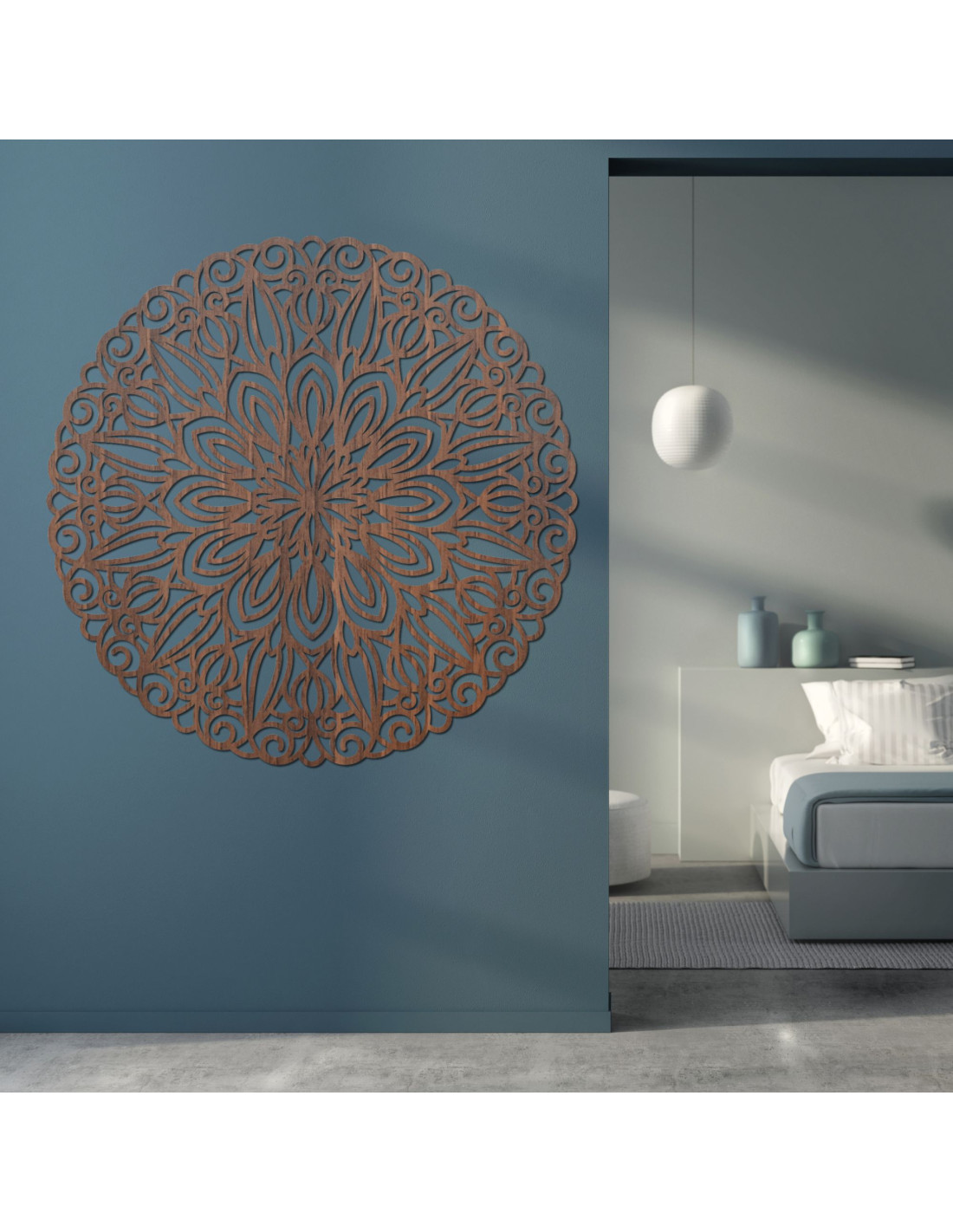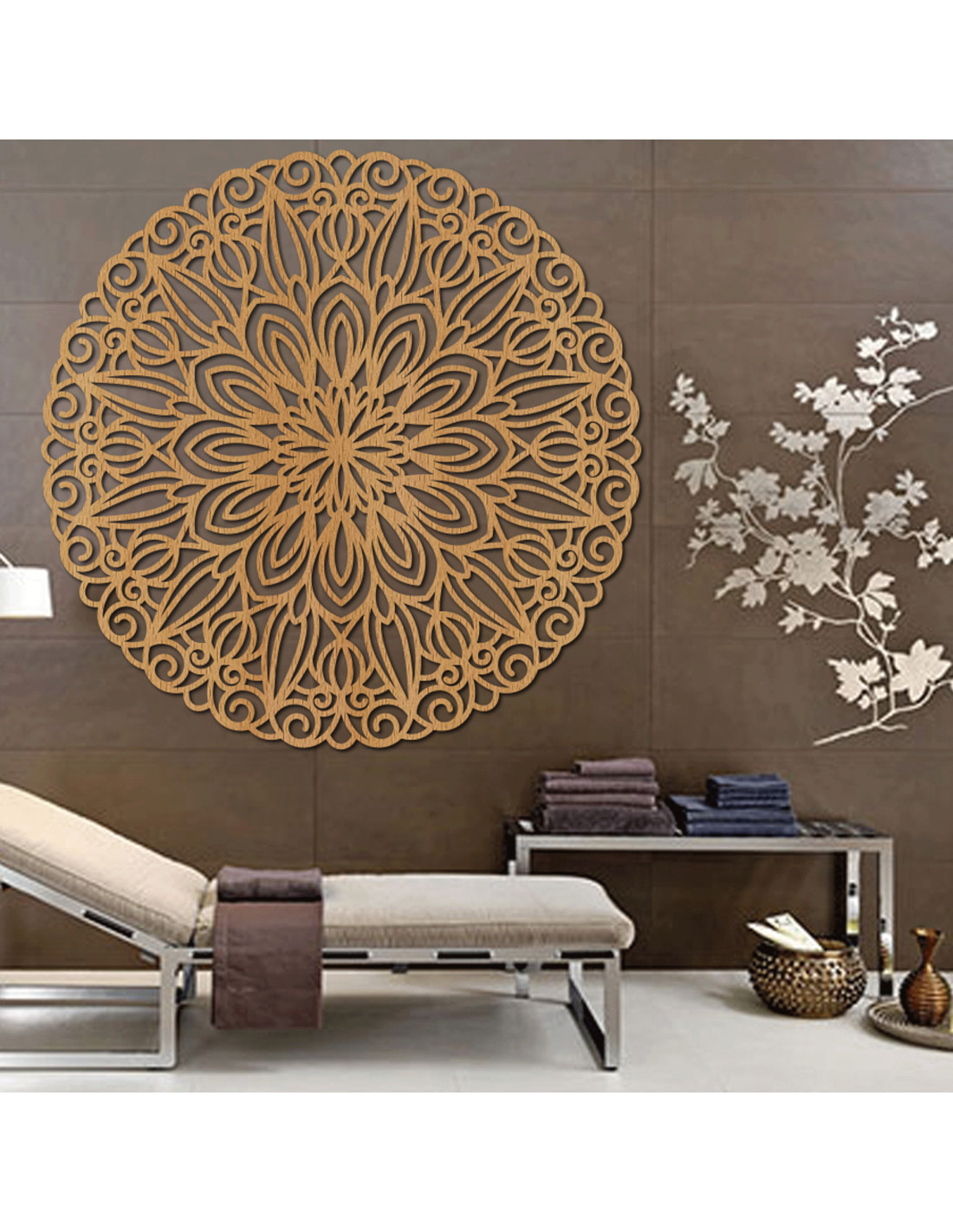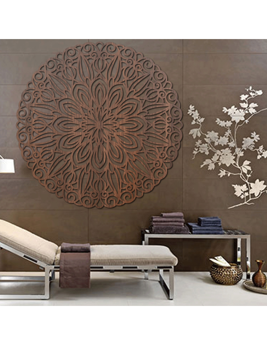 Mandala sculptată în lemn pe perete, floarea timpului - ORIN