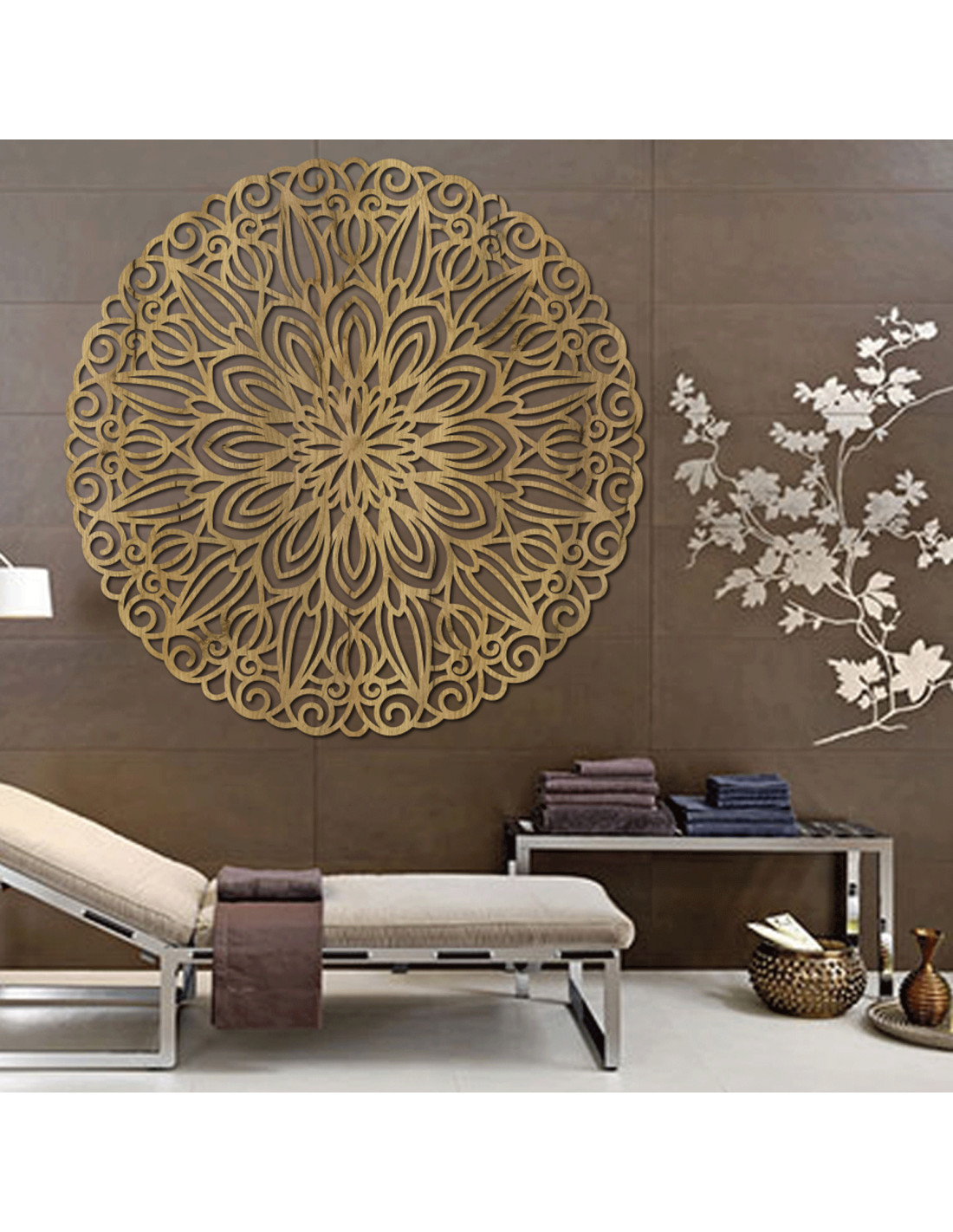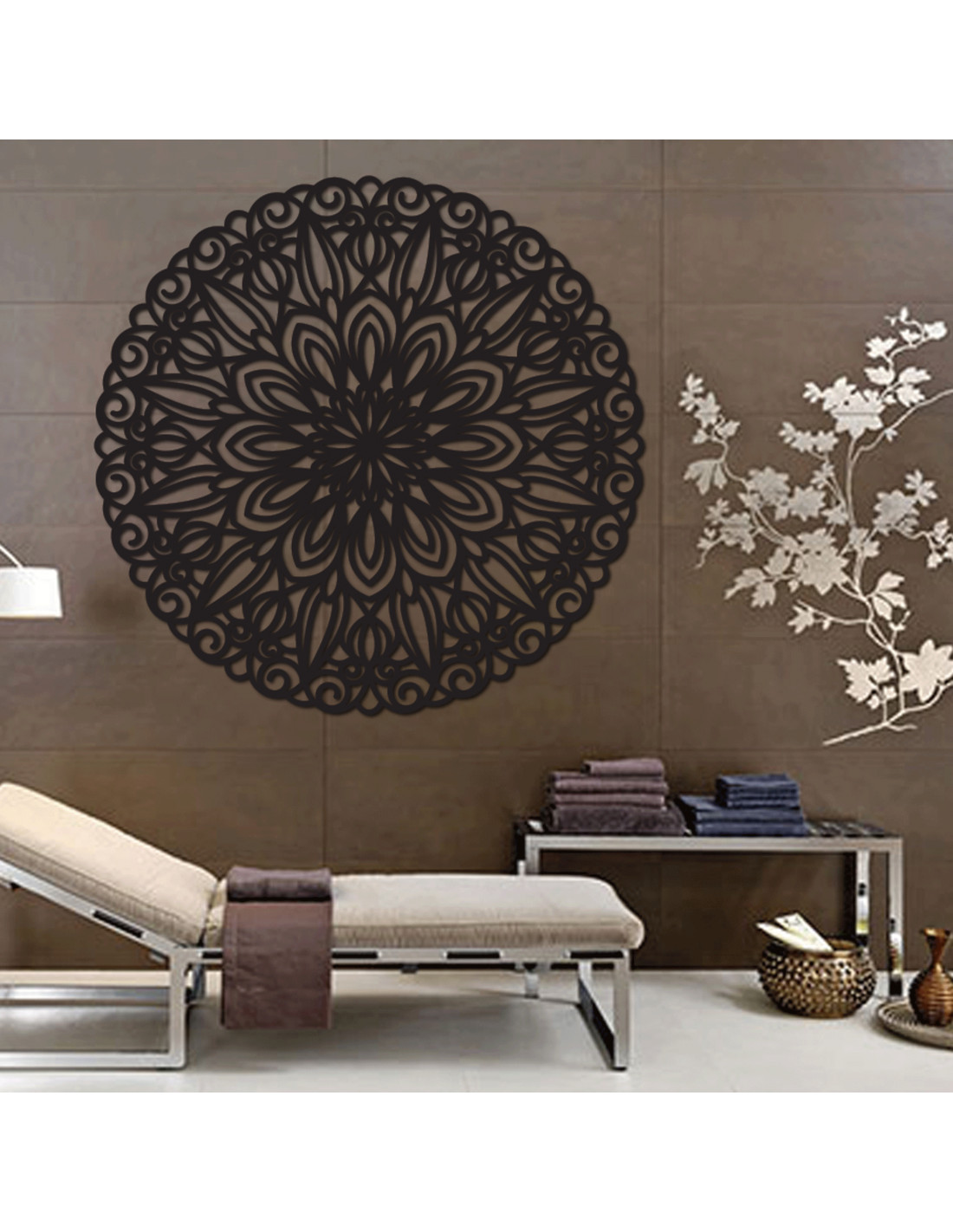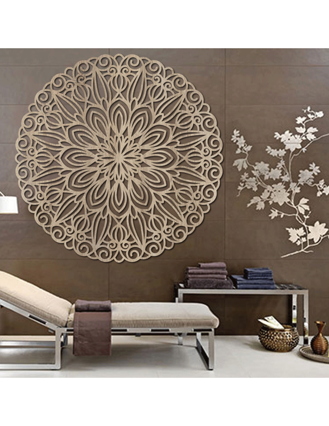 Mandala sculptată în lemn pe perete, floarea timpului - ORIN
