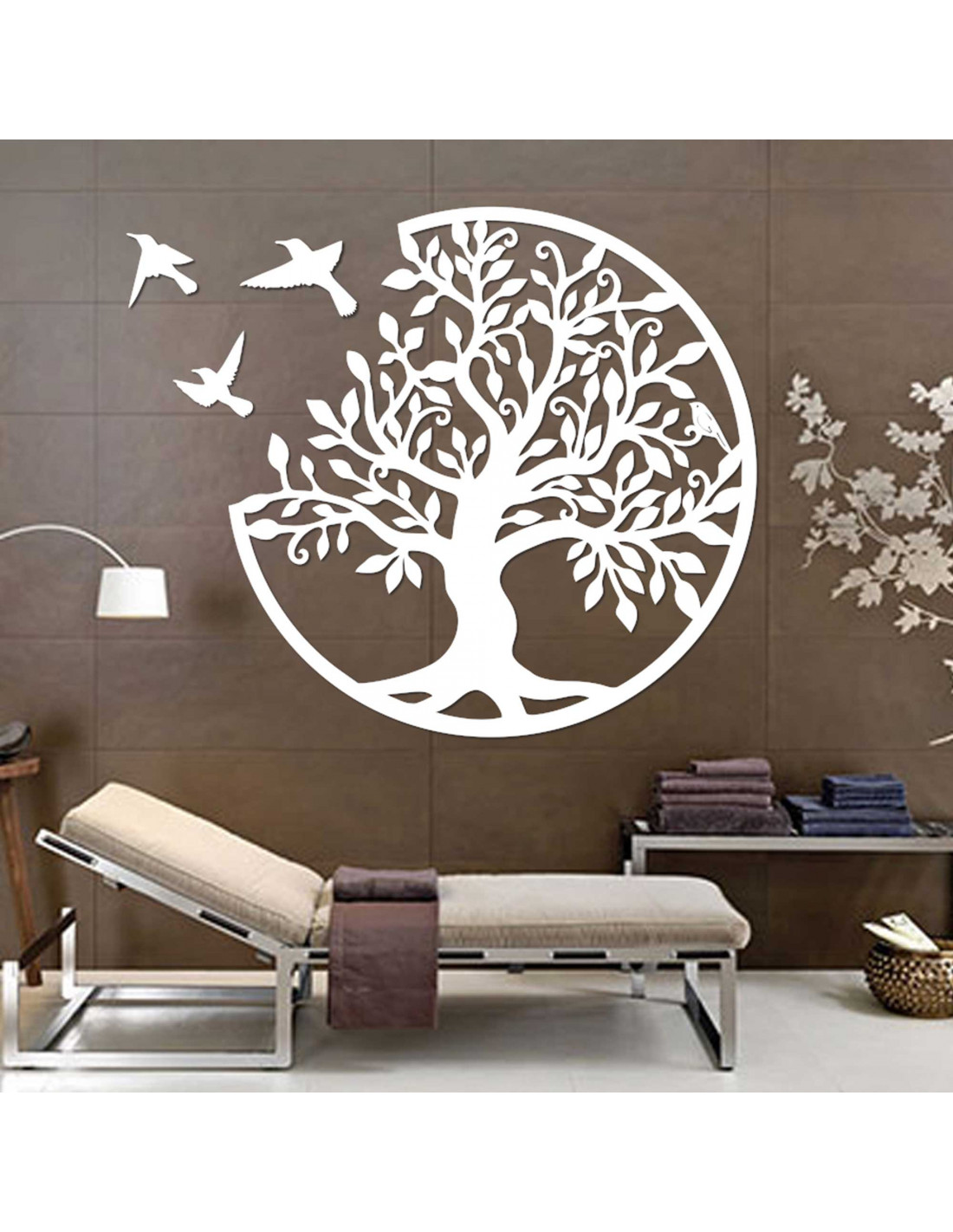 Pictură murală din lemn pomul vieții cu păsări | BORCHLO