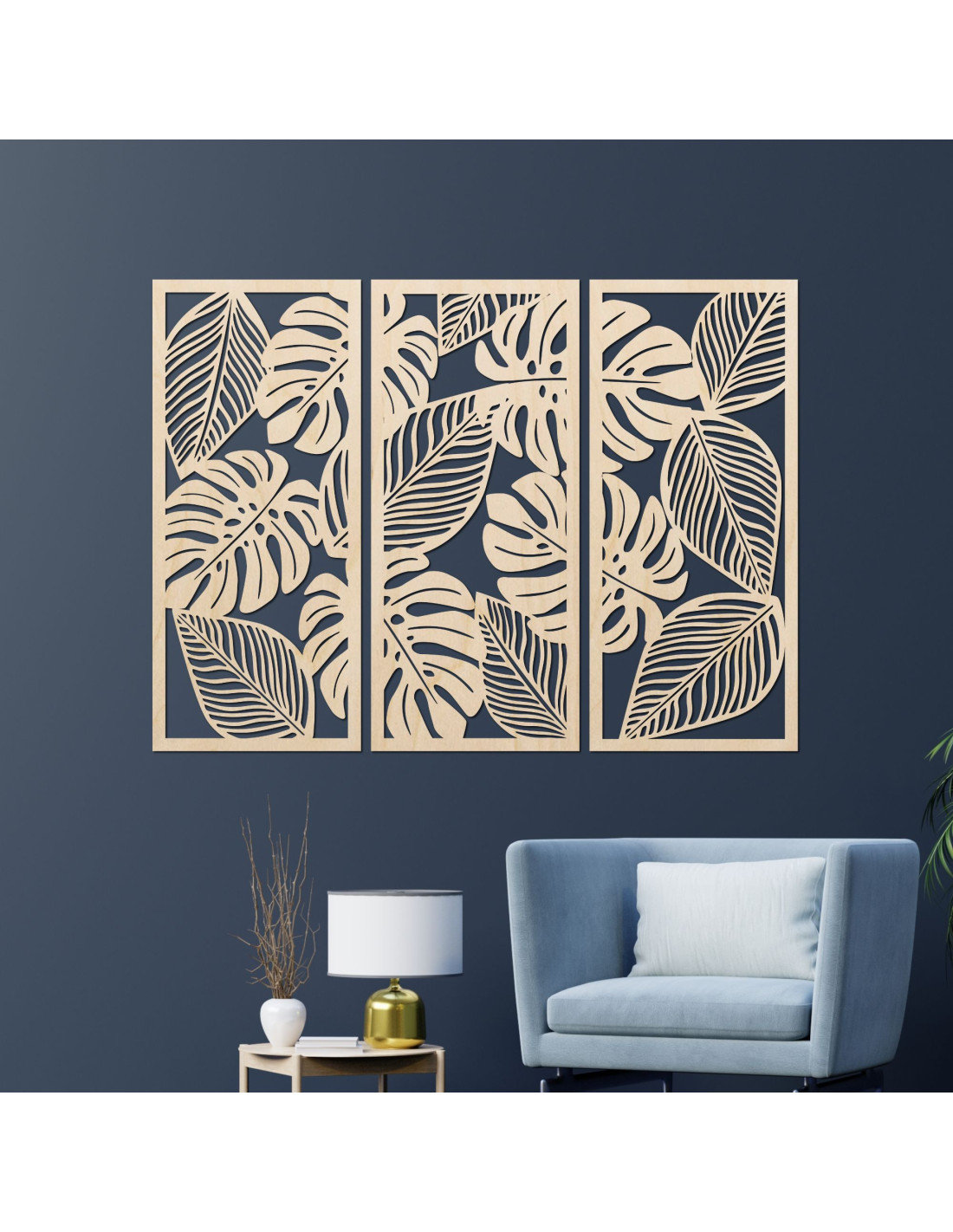 SentopAcest tablou din lemn, format din trei piese , cu motiv monstera , este modalitatea perfectă de a vă înviora interiorul și de a-i adăuga eleganță. Cu designul său unic de monstera și prelucrarea detaliată, veți adăuga o notă naturală și confortabilă oricărui spațiu. Acest tablou este ideal pentru decorarea pereților din sufragerie , dormitor sau birou, unde va deveni centrul atenției.