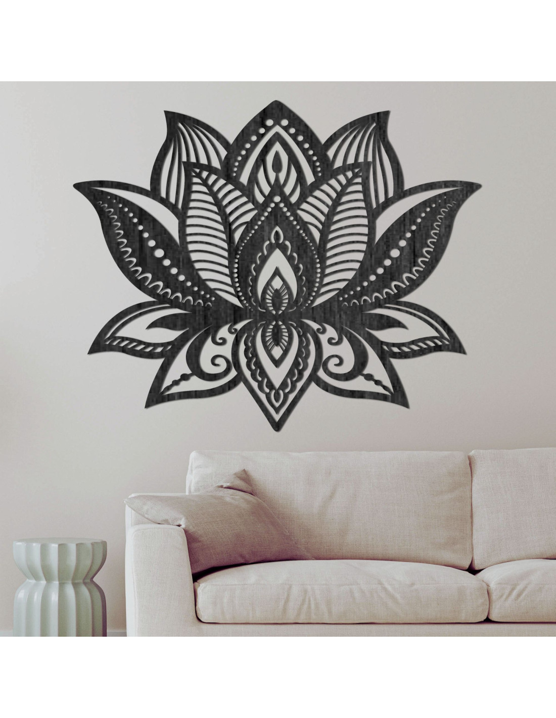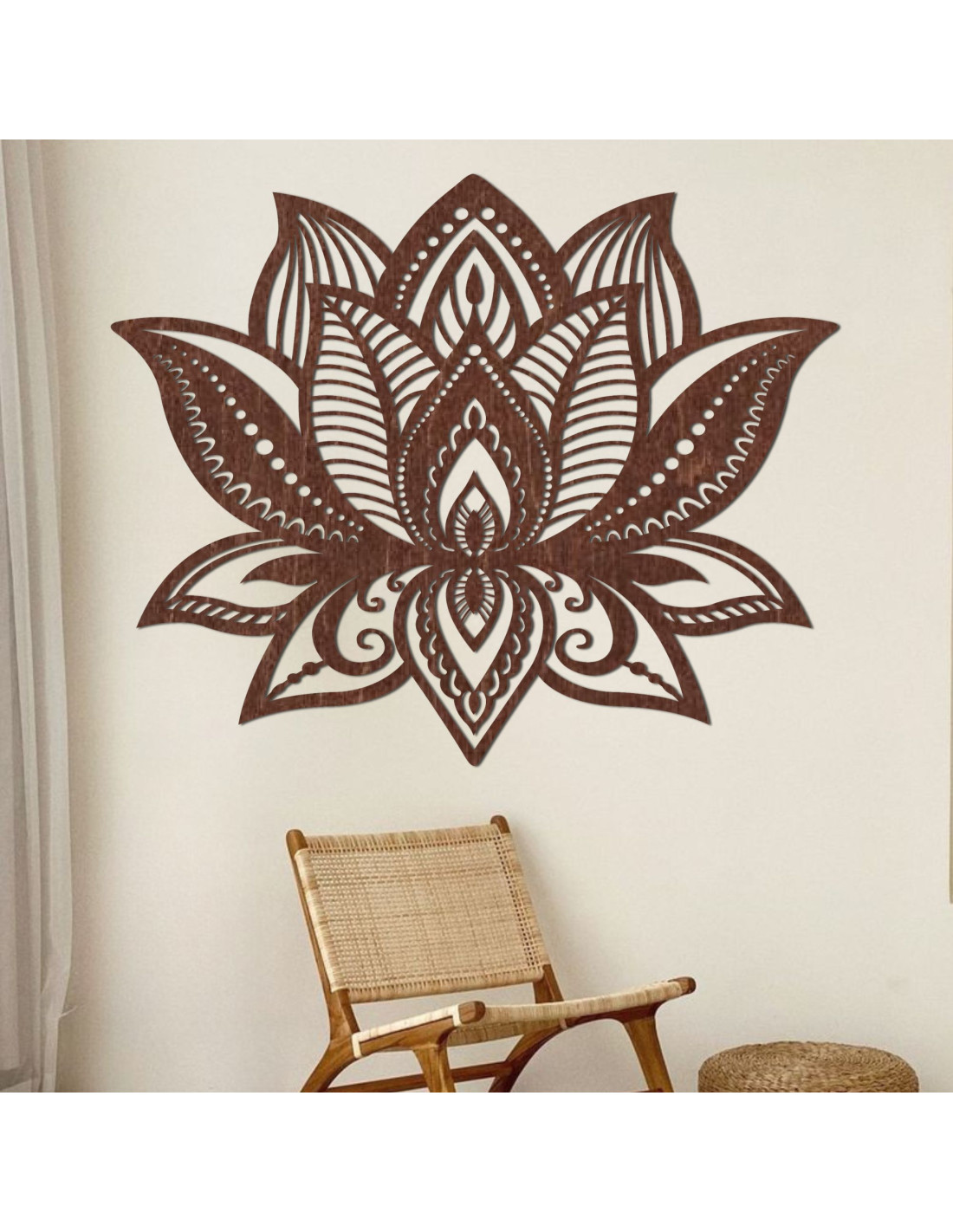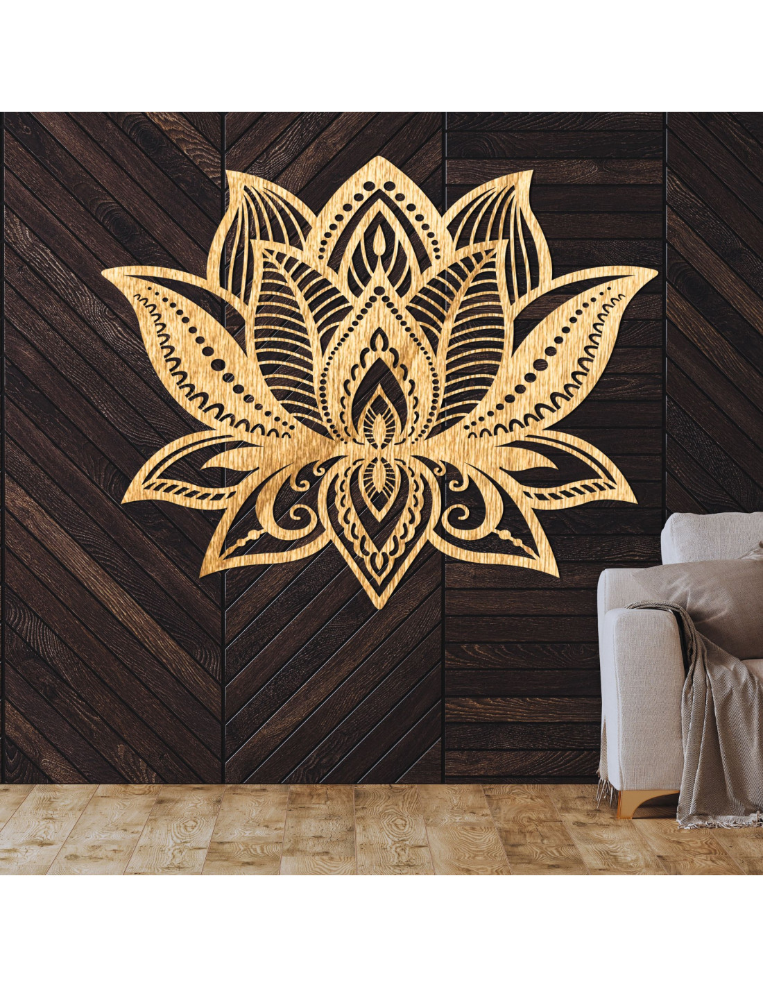 Simetria florii de lotus simbolizează un nou început, puritatea și puterea interioară, în timp ce detaliile sculptate meticulos aduc o textură unică și o notă caldă de lemn în orice cameră.
