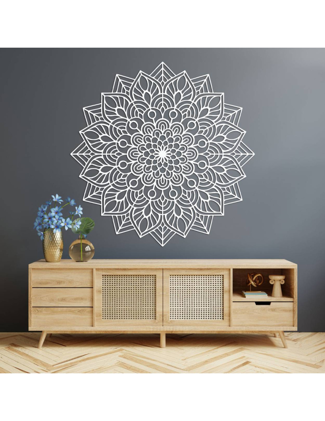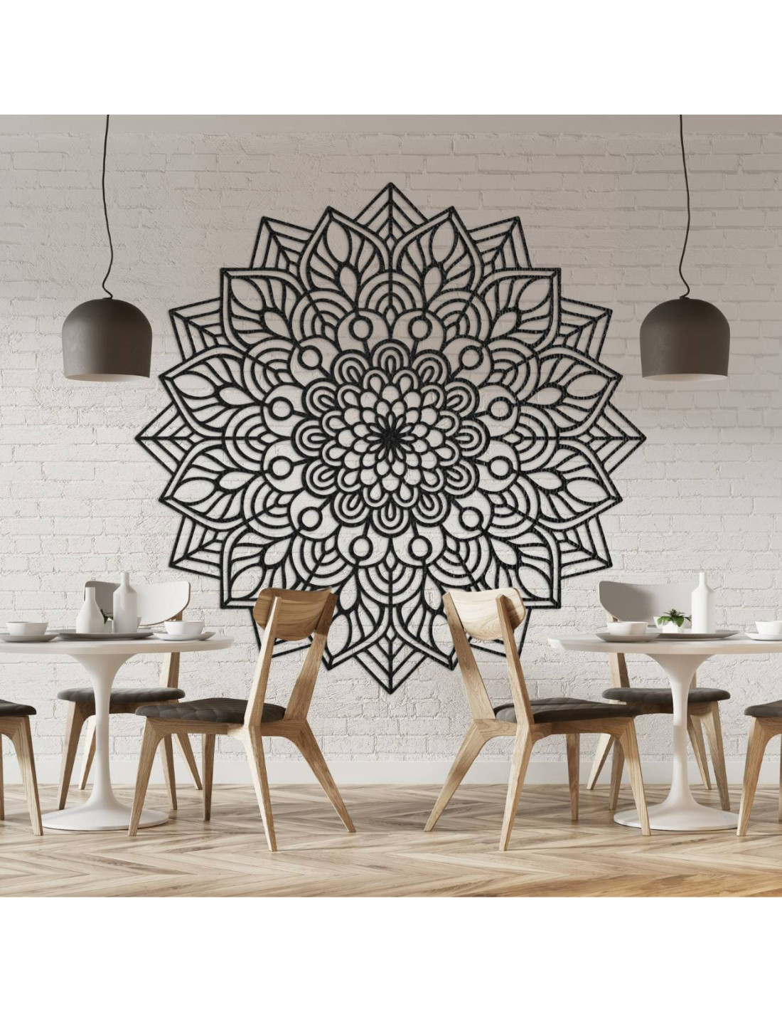 O mandală din lemn pe perete aduce eleganță, precizie și armonie interiorului.