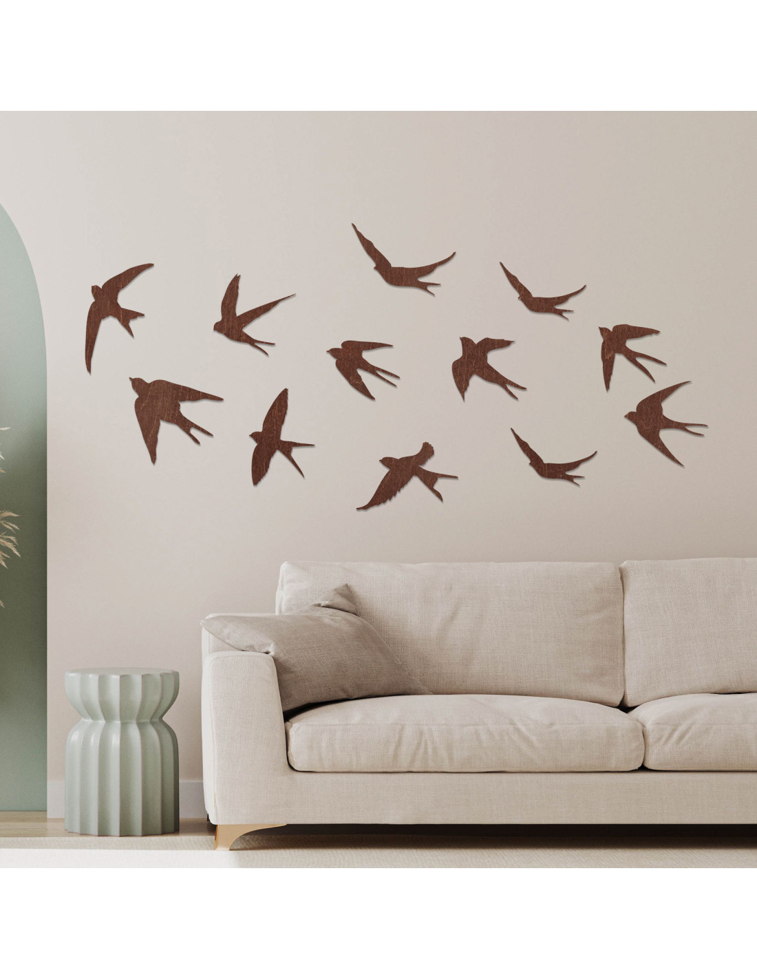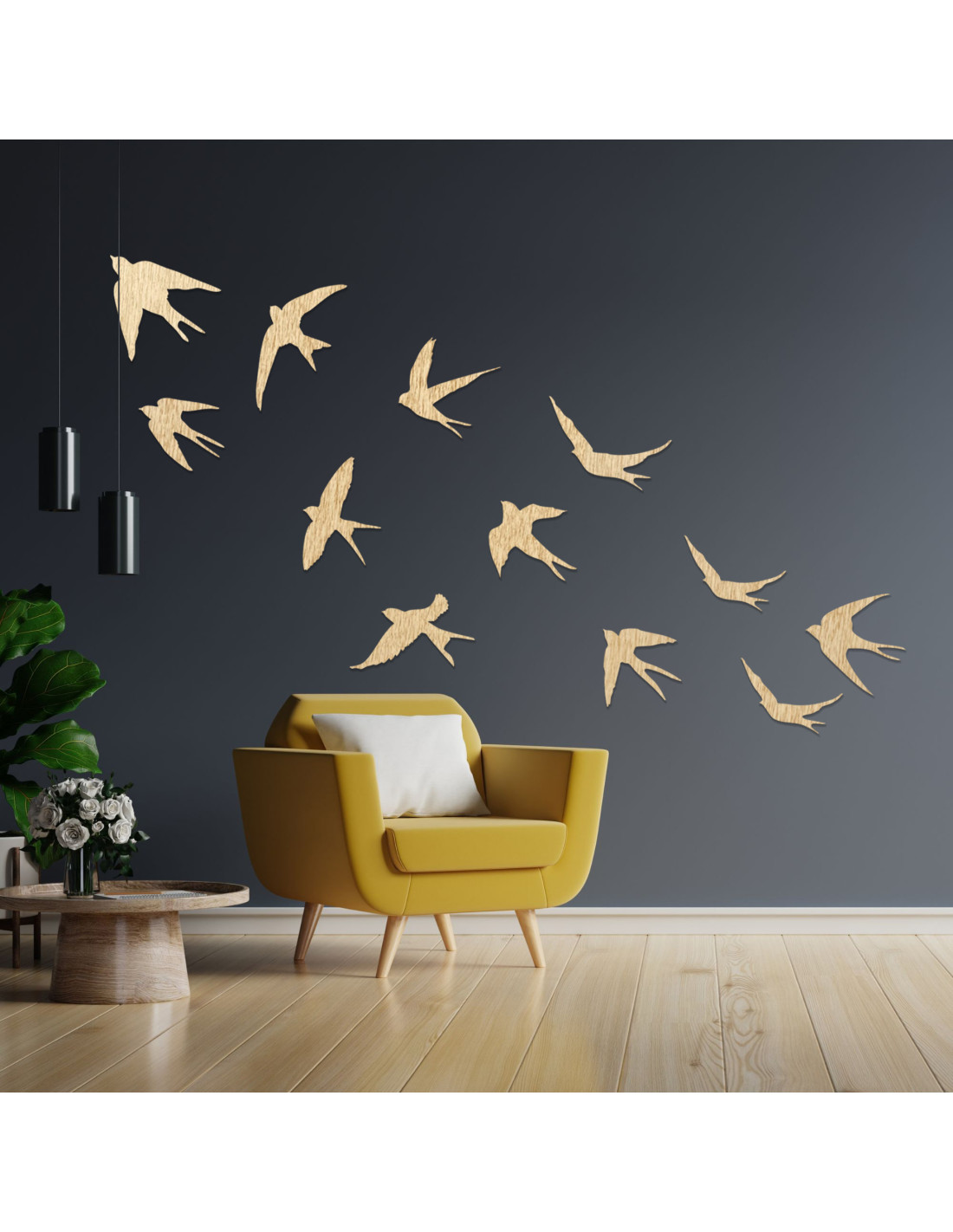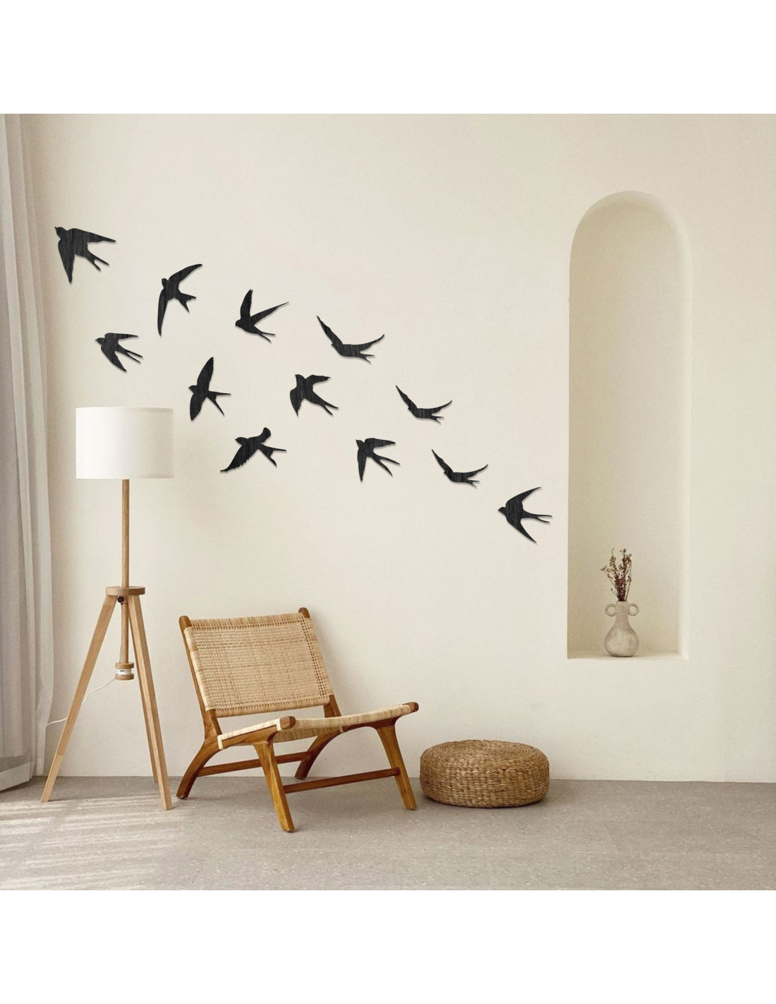 Aceste rândunele din lemn simbolizează libertatea , mișcarea și eleganța. Se remarcă pe un perete întunecat și creează o senzație de zbor, adăugând dinamism spațiului. Sunt perfecte atât pentru interioarele moderne, cât și pentru cele rustice.