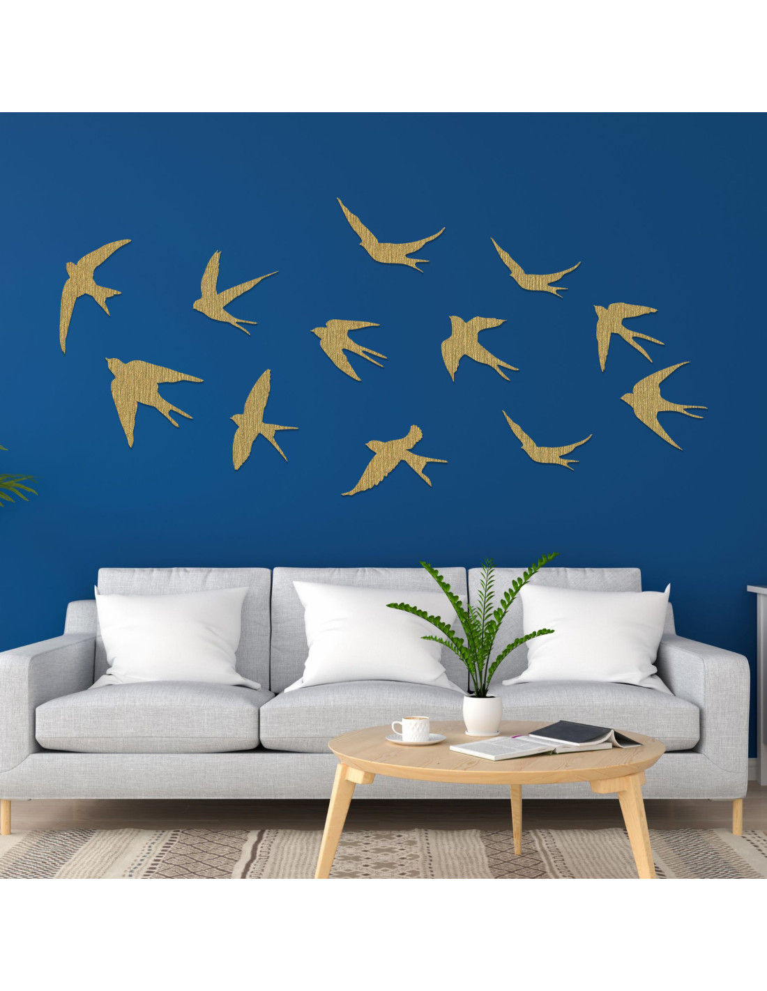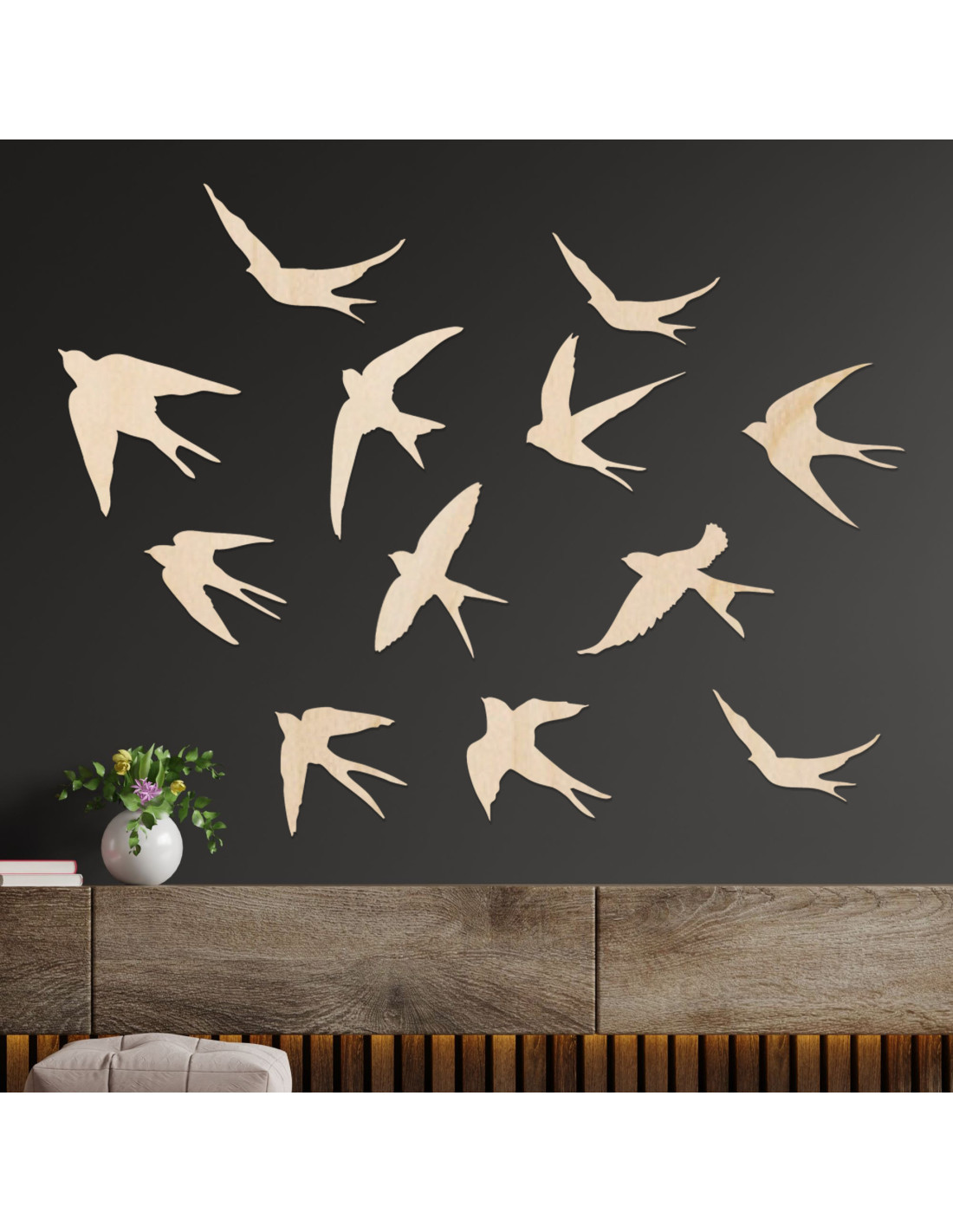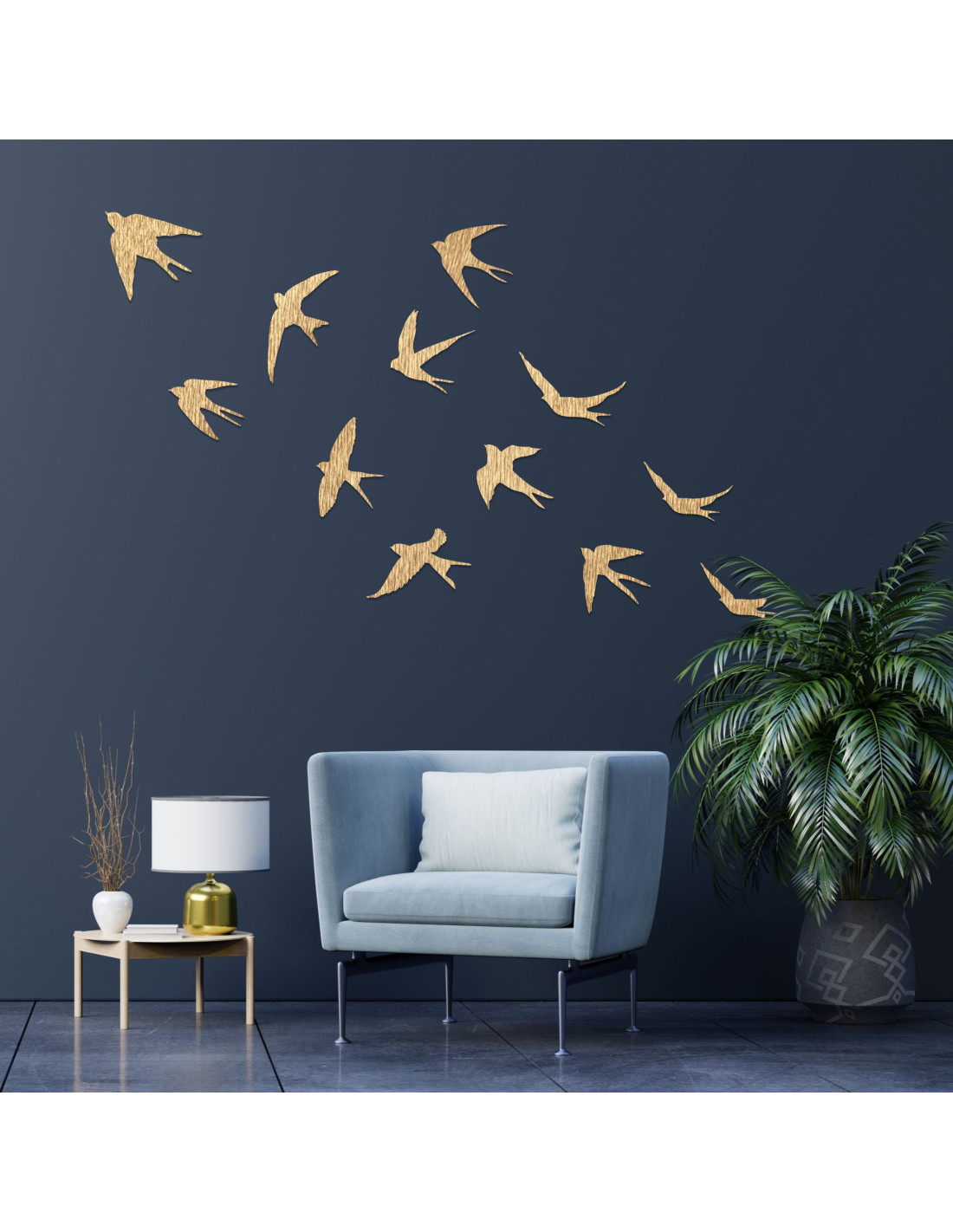 Aceste rândunele din lemn simbolizează libertatea , mișcarea și eleganța. Se remarcă pe un perete întunecat și creează o senzație de zbor, adăugând dinamism spațiului. Sunt perfecte atât pentru interioarele moderne, cât și pentru cele rustice.