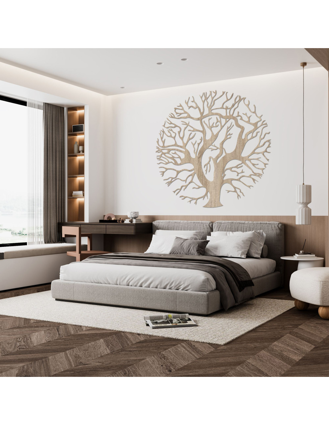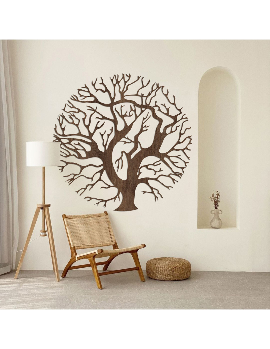 Elegantul tablou din placaj „Arborele Vieții”, cu ramuri sculptate cu precizie, se remarcă prin estetica și simbolismul său atemporal . Detaliile subtile creează un design armonios și aerisit, care va aduce pace, echilibru și o notă de natură în interiorul dumneavoastră. Datorită caracterului său natural, acest tablou se potrivește perfect atât în interioarele moderne, cât și în cele clasice și poate fi ușor asortat cu lemn, piatră sau plante.