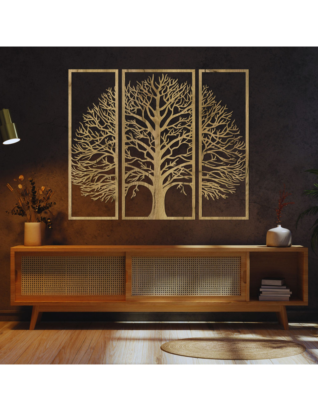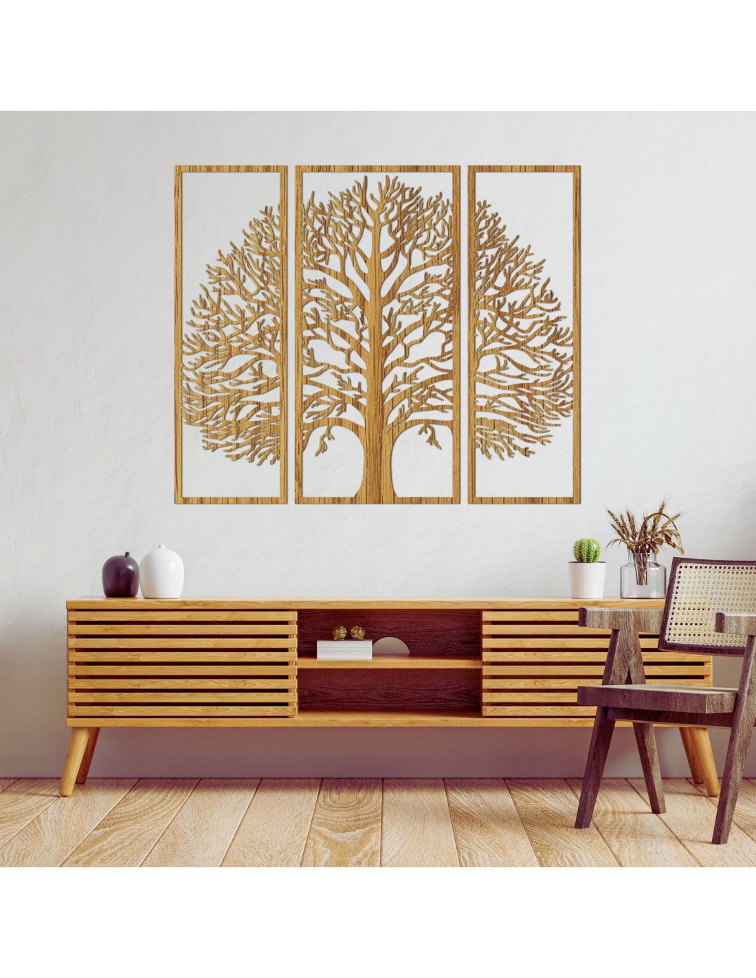 Decorațiune de perete din lemn din trei piese, exclusivă, pomul vieții - DIVISA