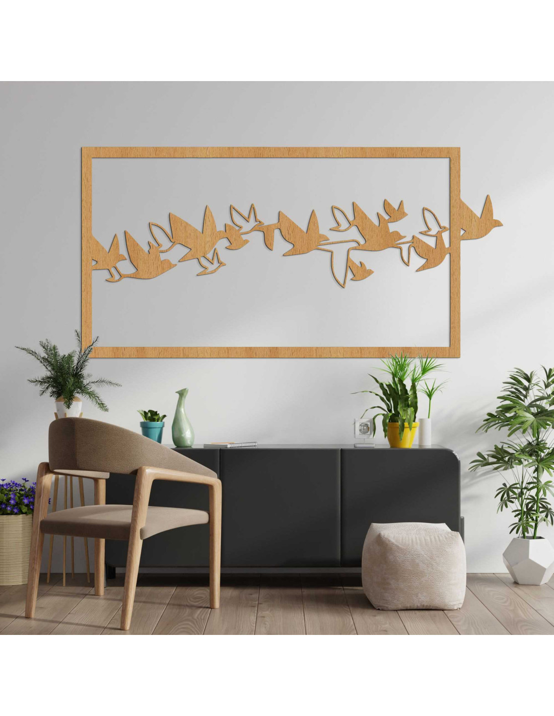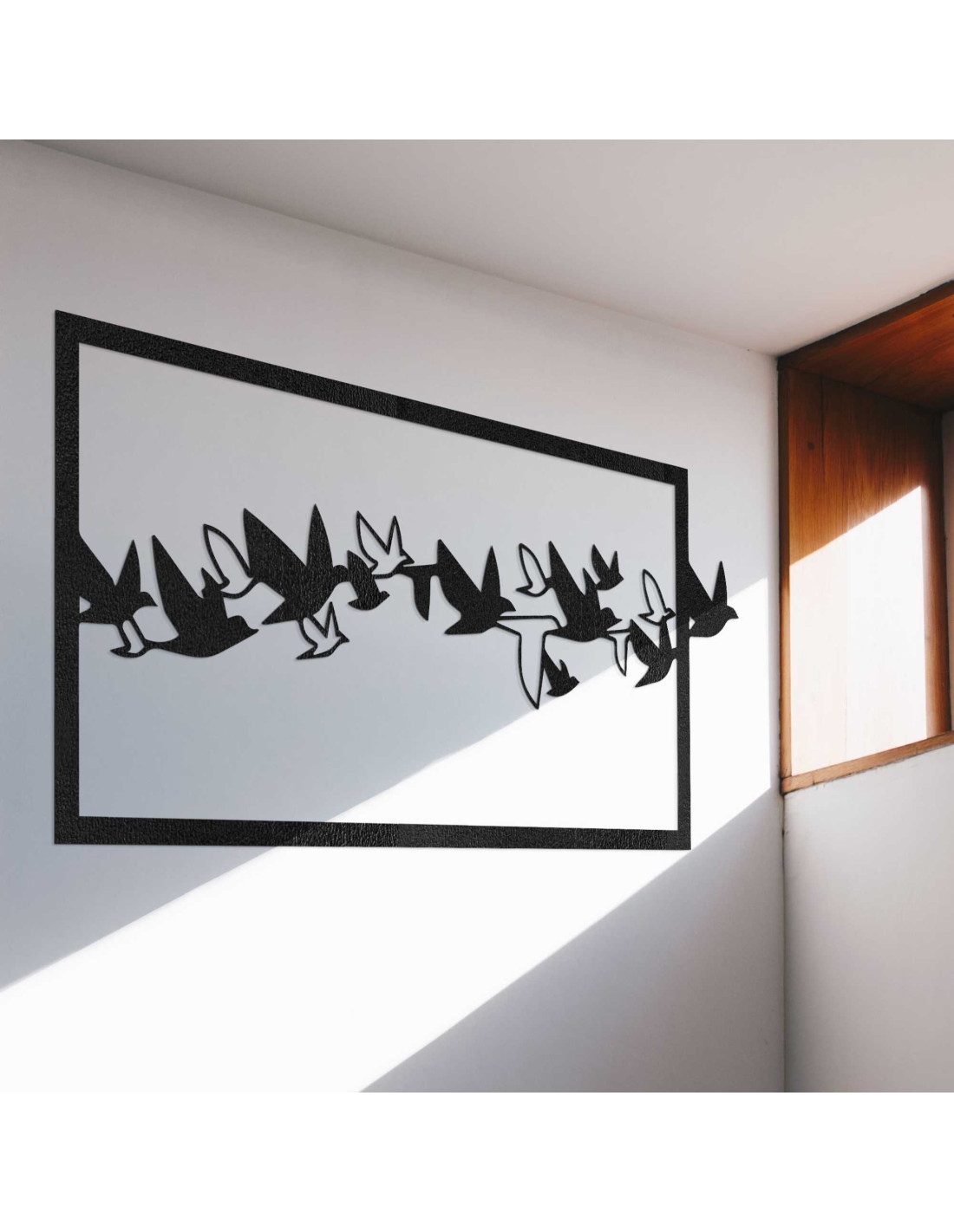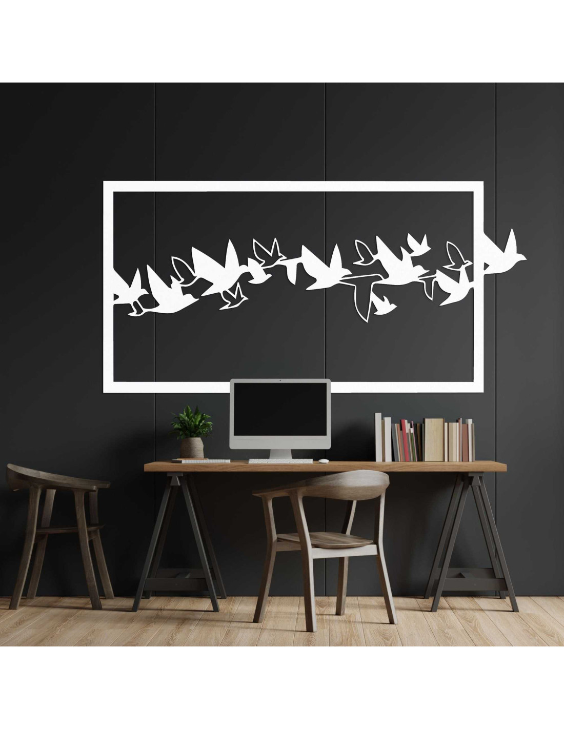 Compoziția unui grup de păsări în zbor creează o metaforă vizuală a unității și a direcției. Designul se bazează pe contrast și ritm, ceea ce îi conferă un caracter excepțional. Aici, mișcarea devine elementul central care atrage privitorul în acțiune. Forma pură scoate în evidență esența ideii fără distrageri vizuale.