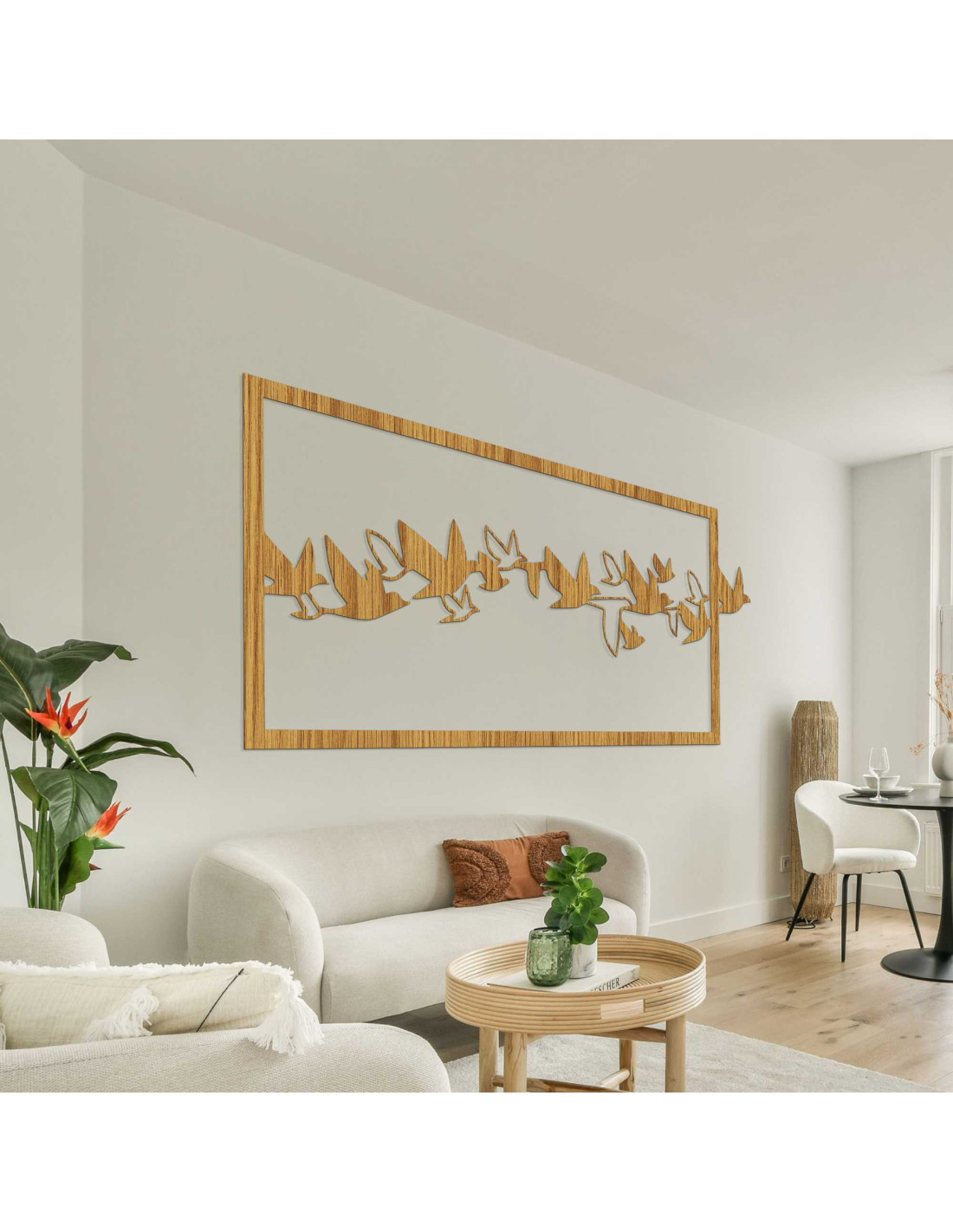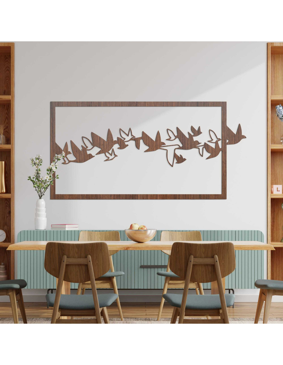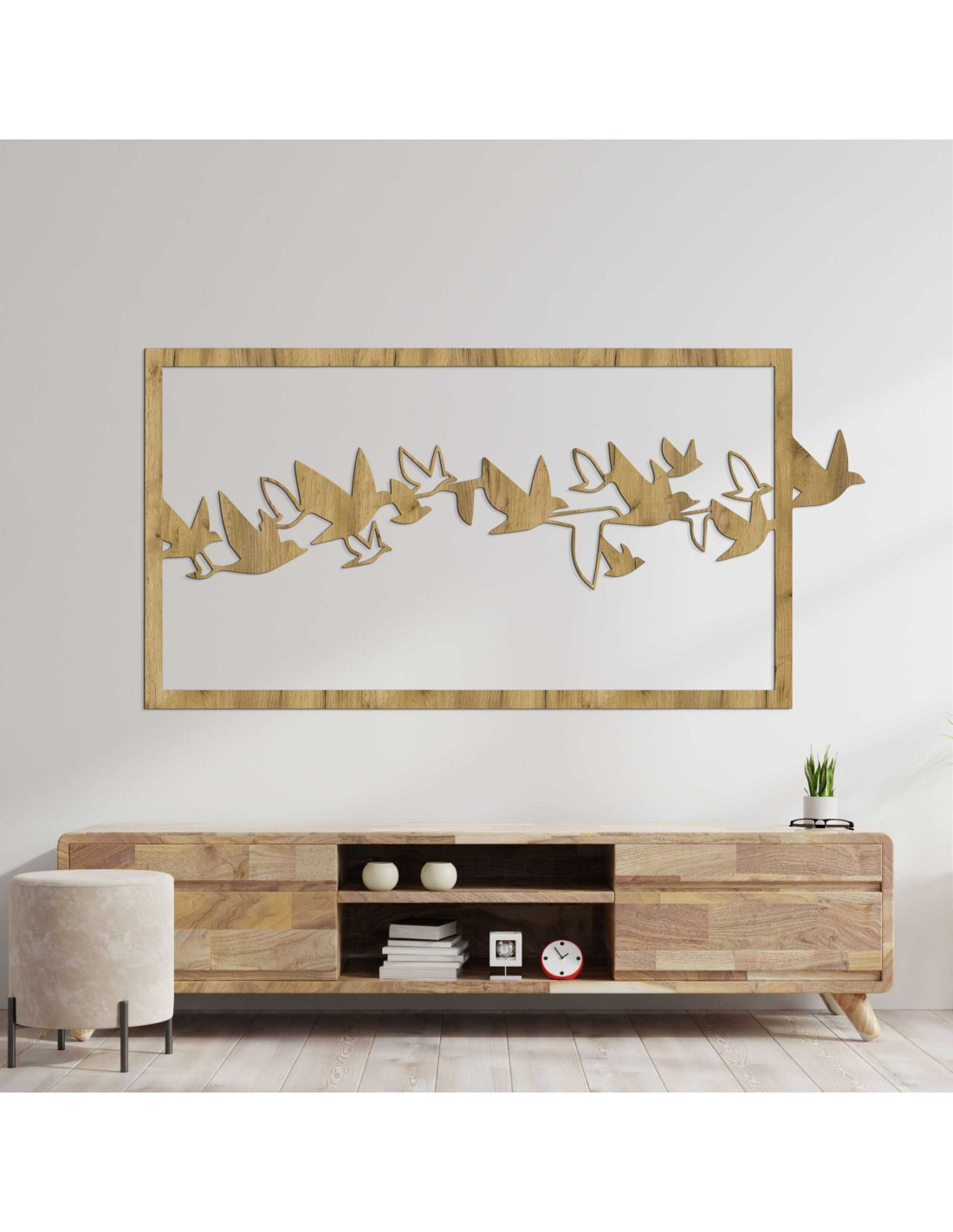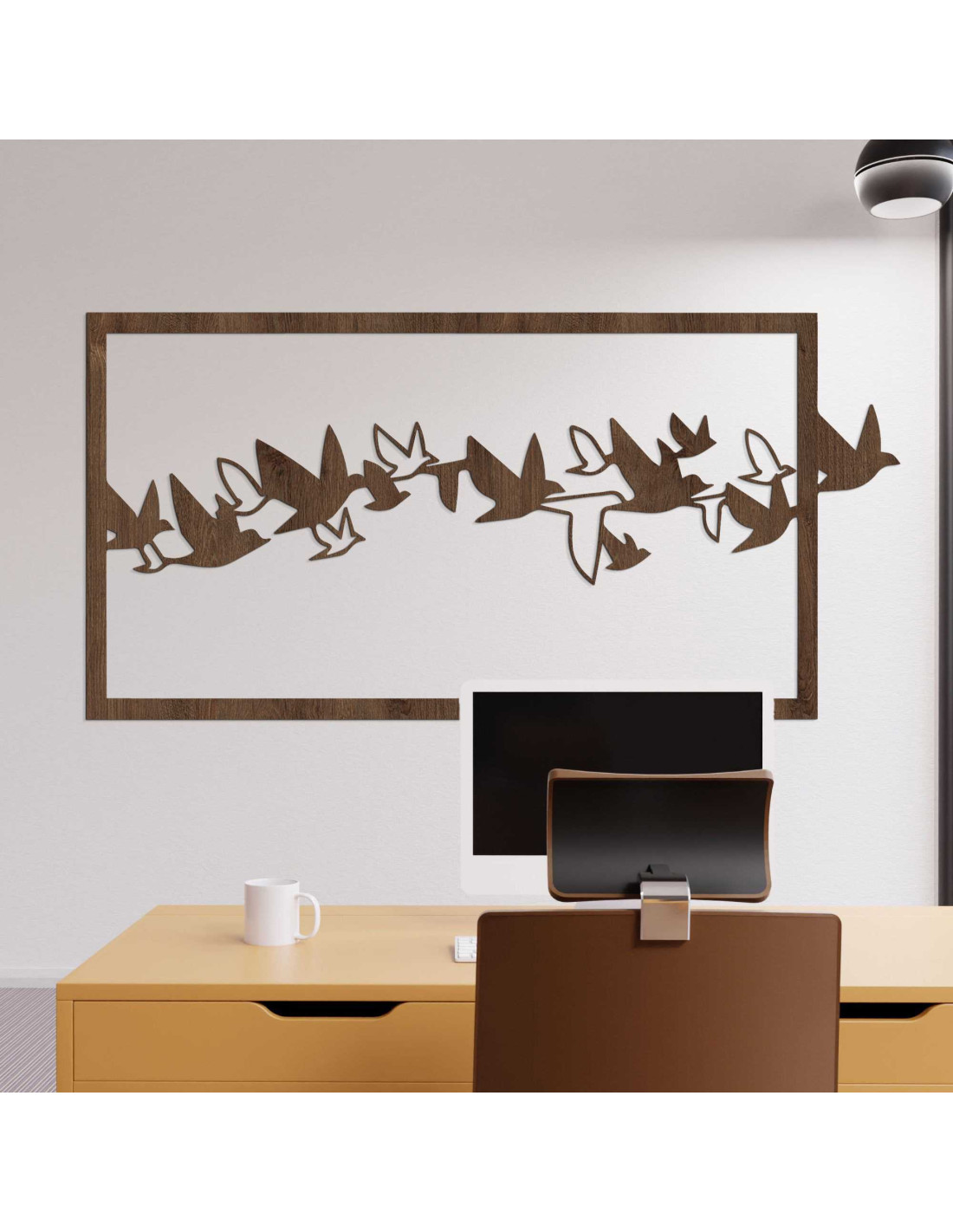 Compoziția unui grup de păsări în zbor creează o metaforă vizuală a unității și a direcției. Designul se bazează pe contrast și ritm, ceea ce îi conferă un caracter excepțional. Aici, mișcarea devine elementul central care atrage privitorul în acțiune. Forma pură scoate în evidență esența ideii fără distrageri vizuale.