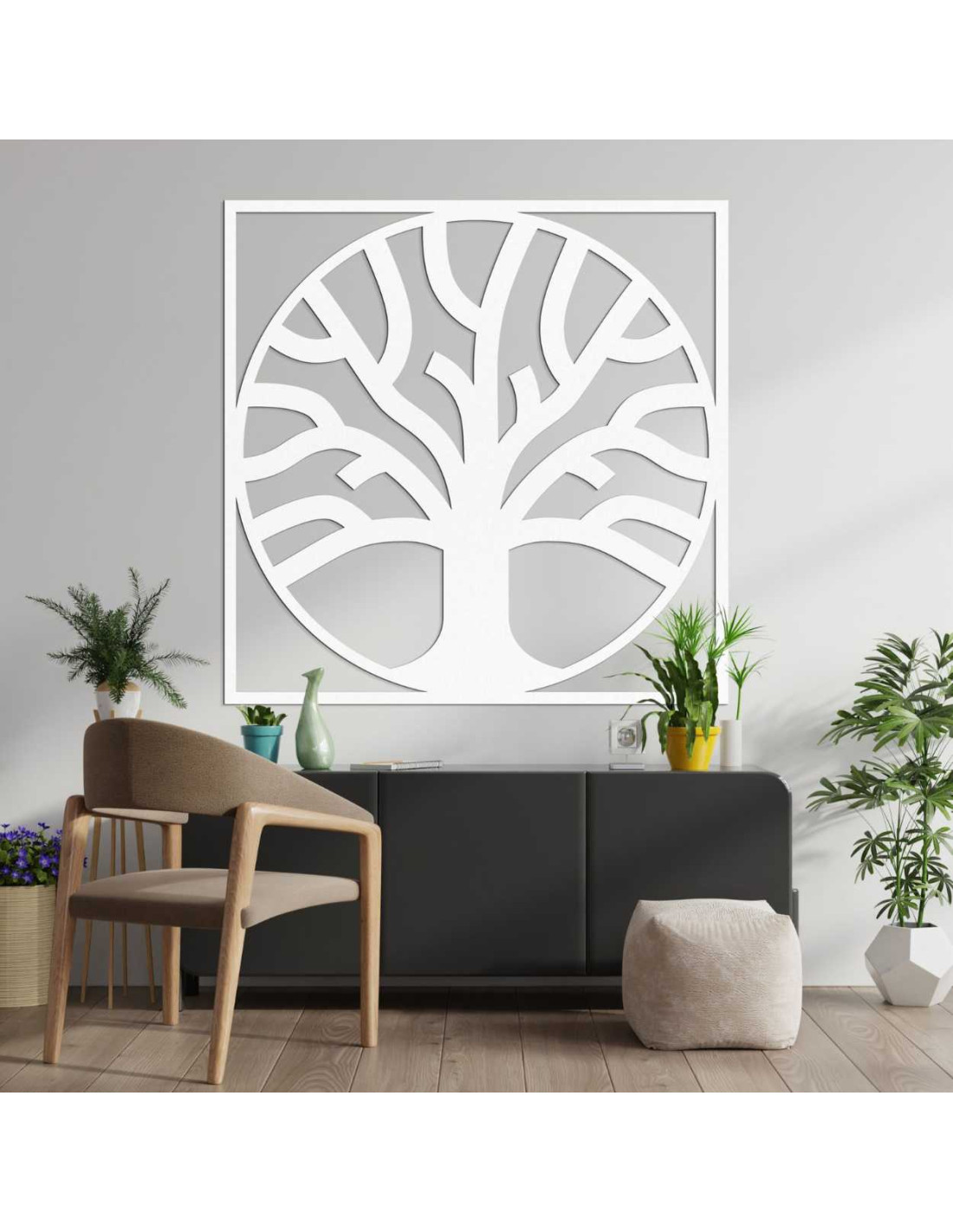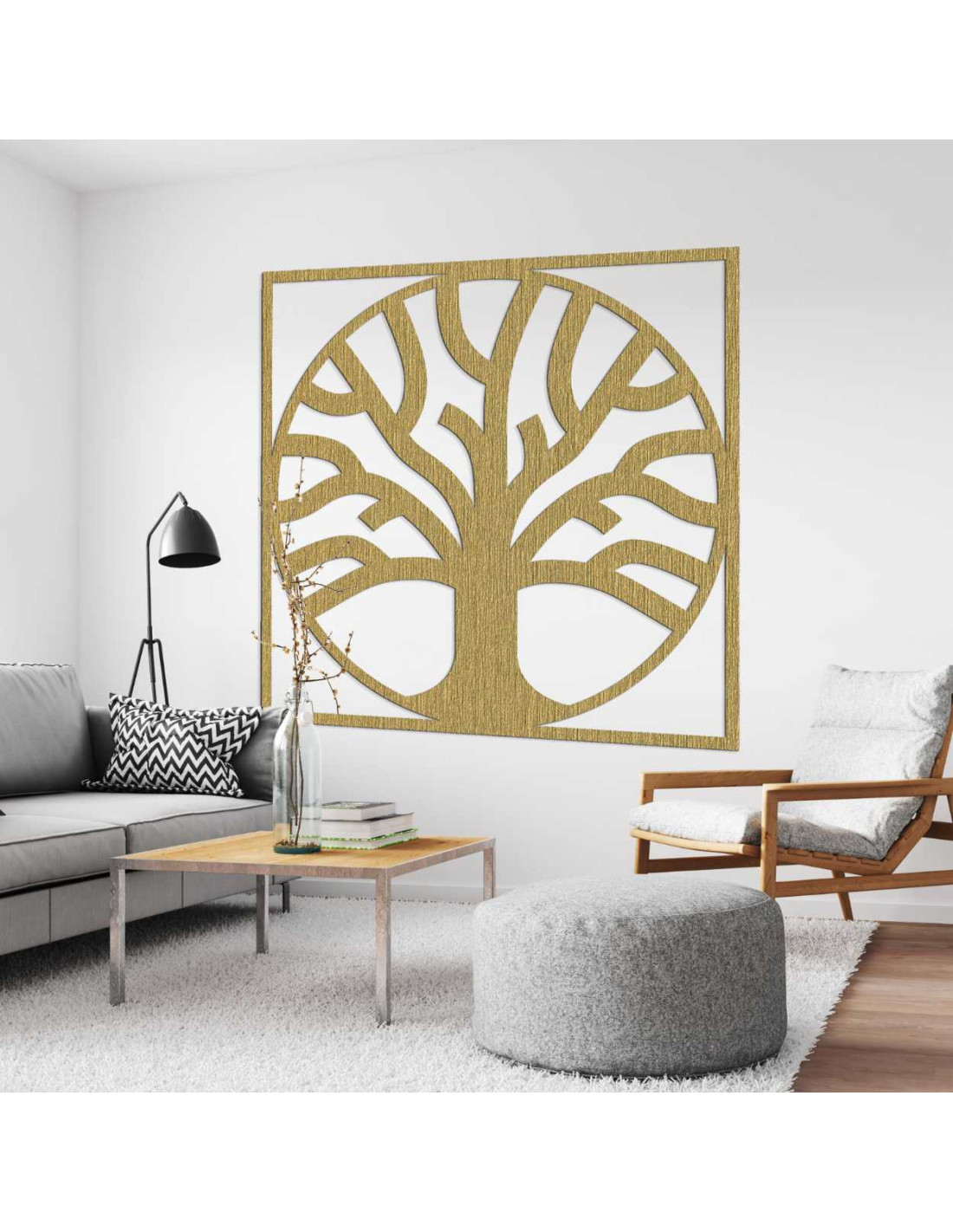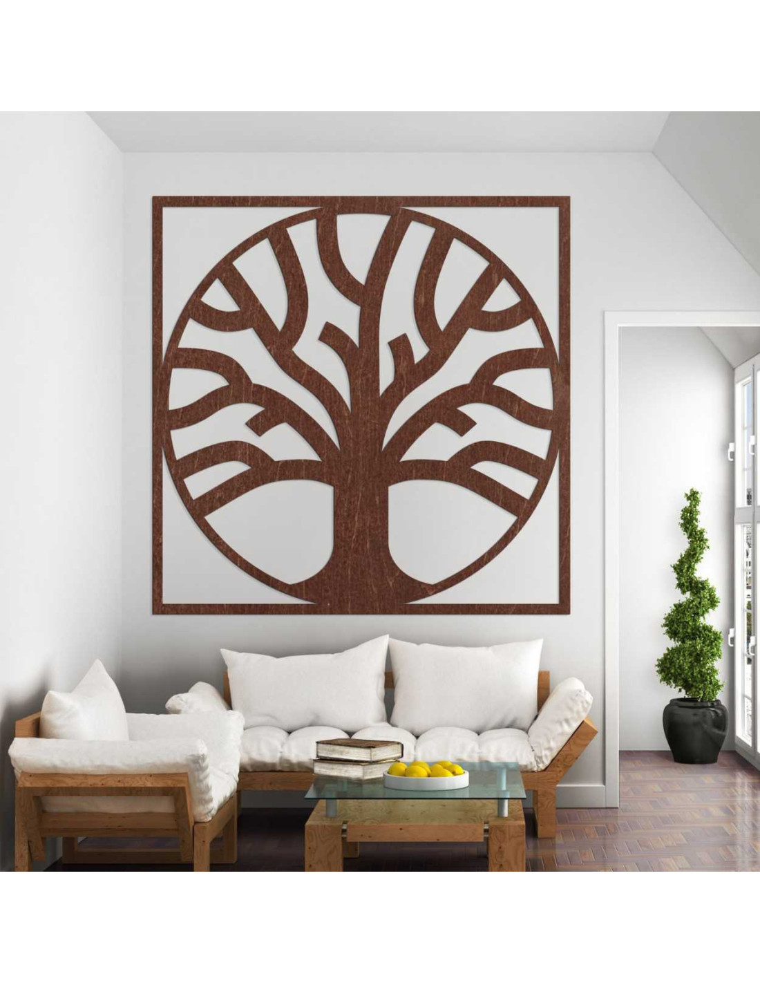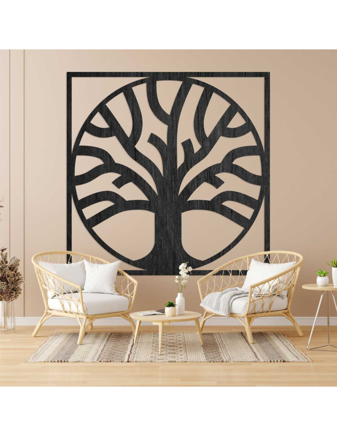 Decorațiune murală din lemn, pătrat, Pomul Vieții și Blândeții - BALERIAN