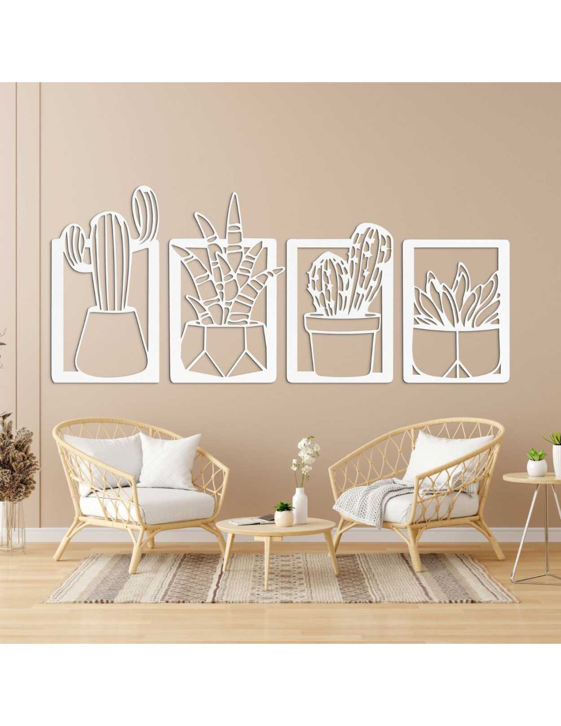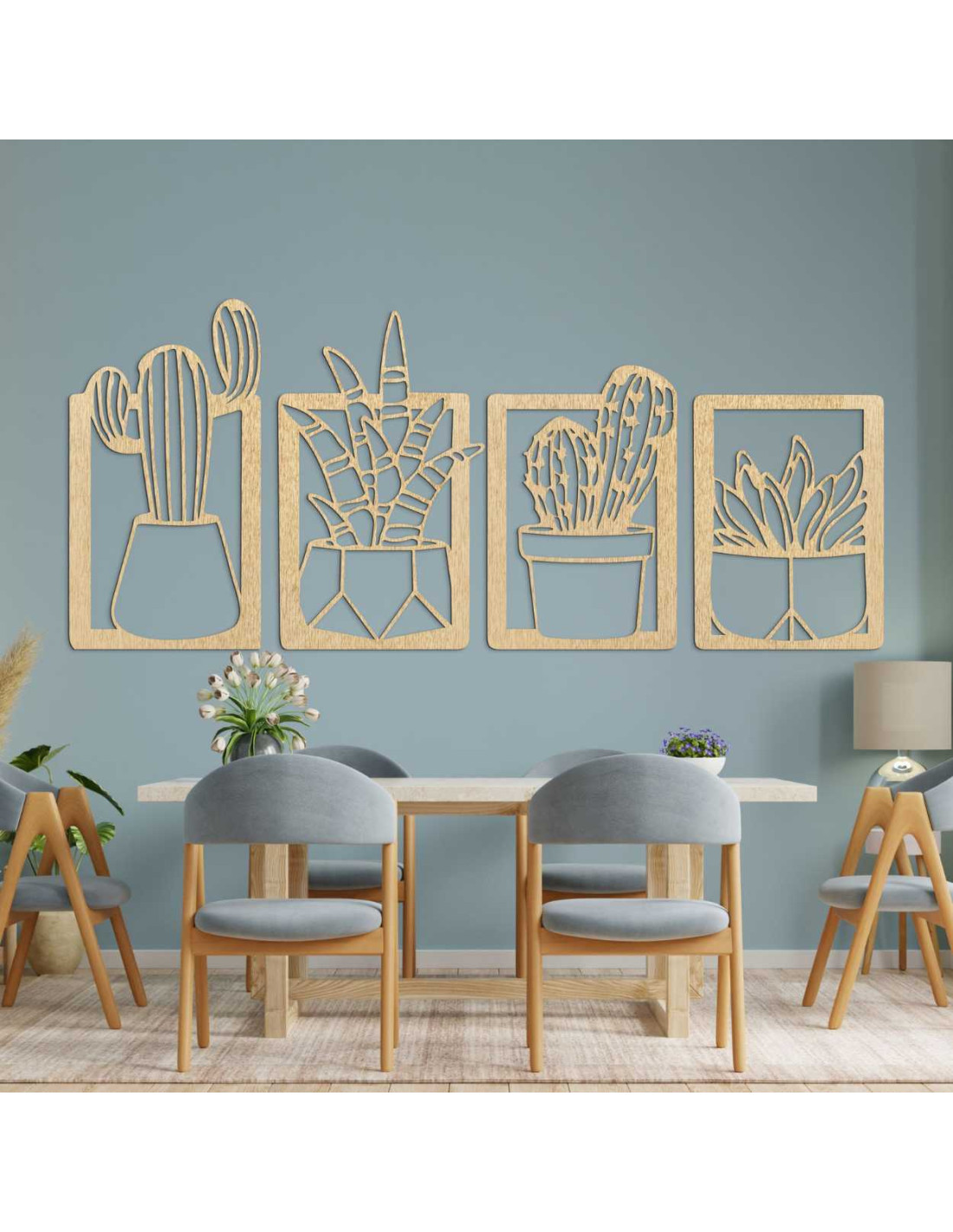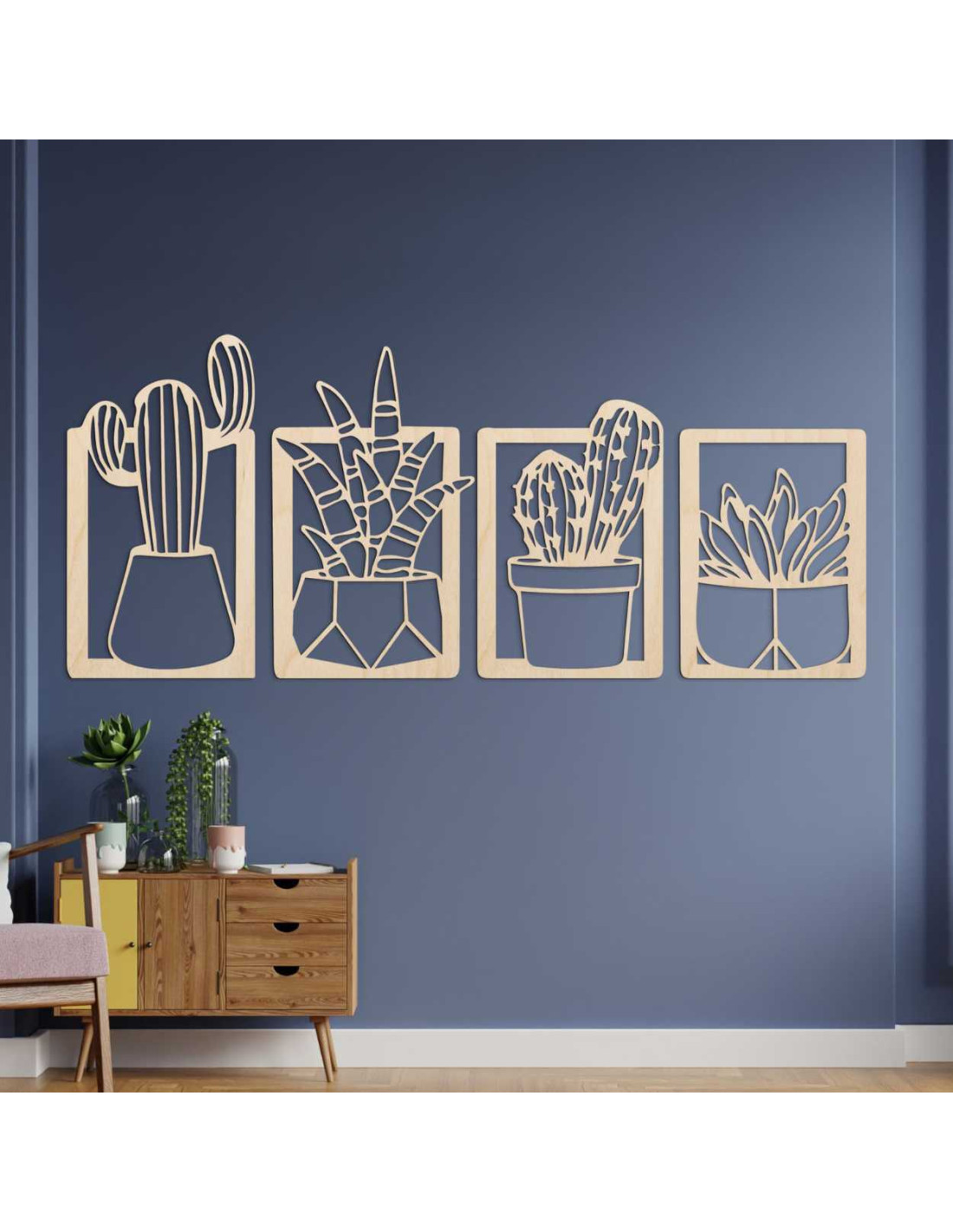 Pictură murală din patru piese cu cactuși și suculente - KOFEN