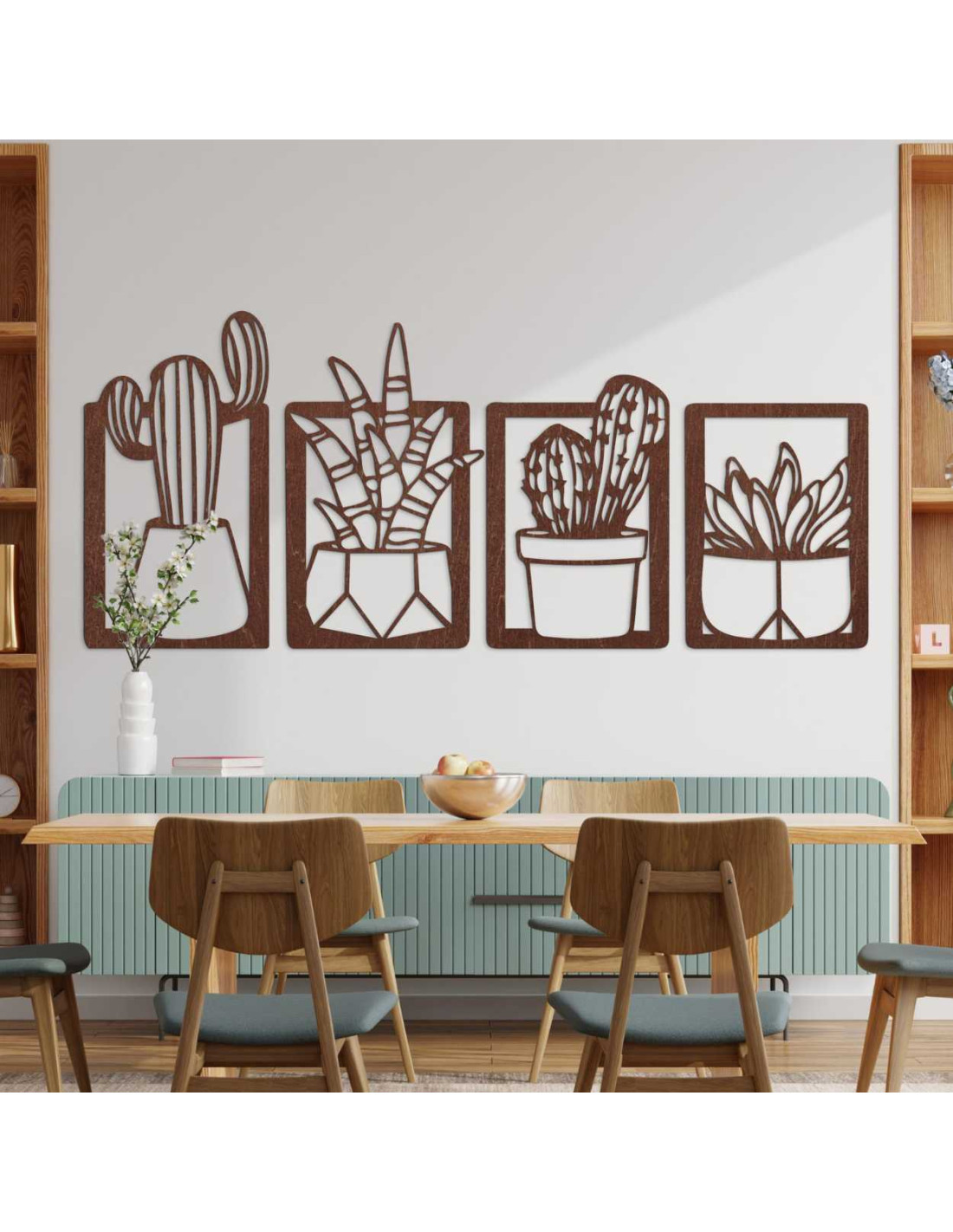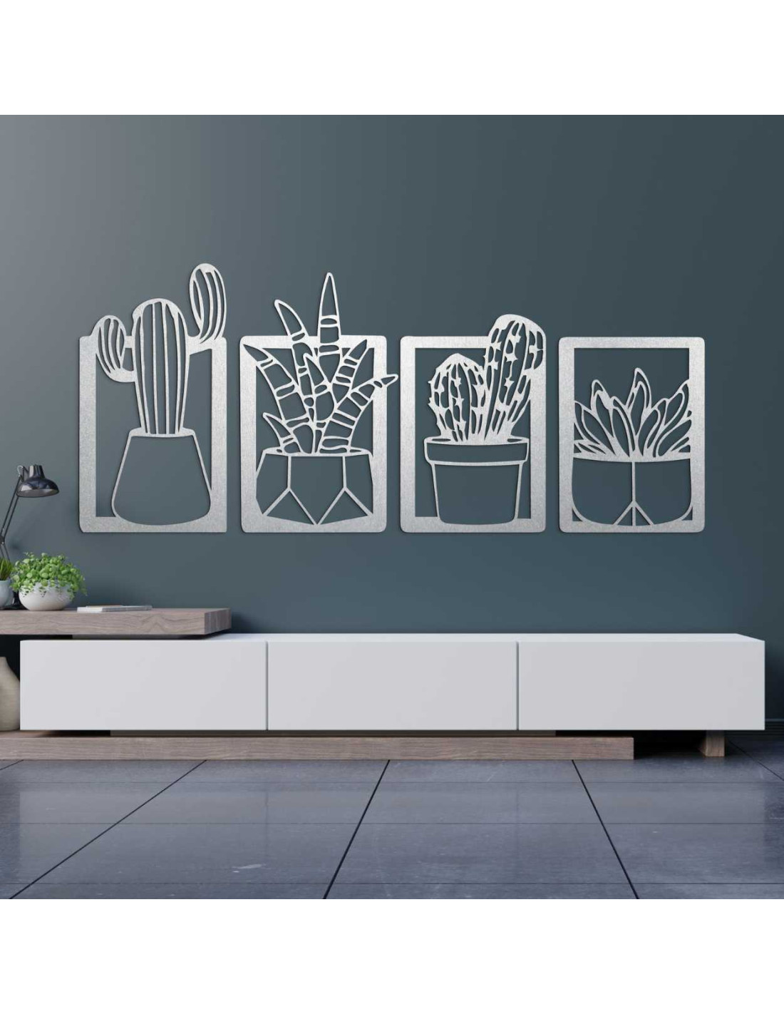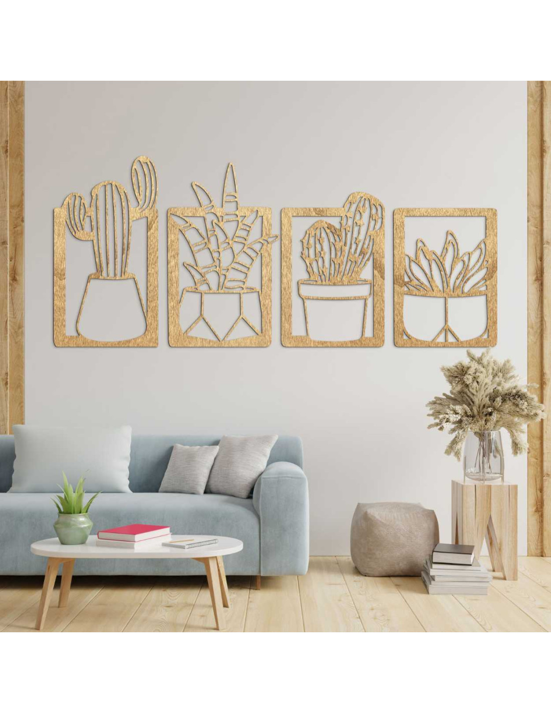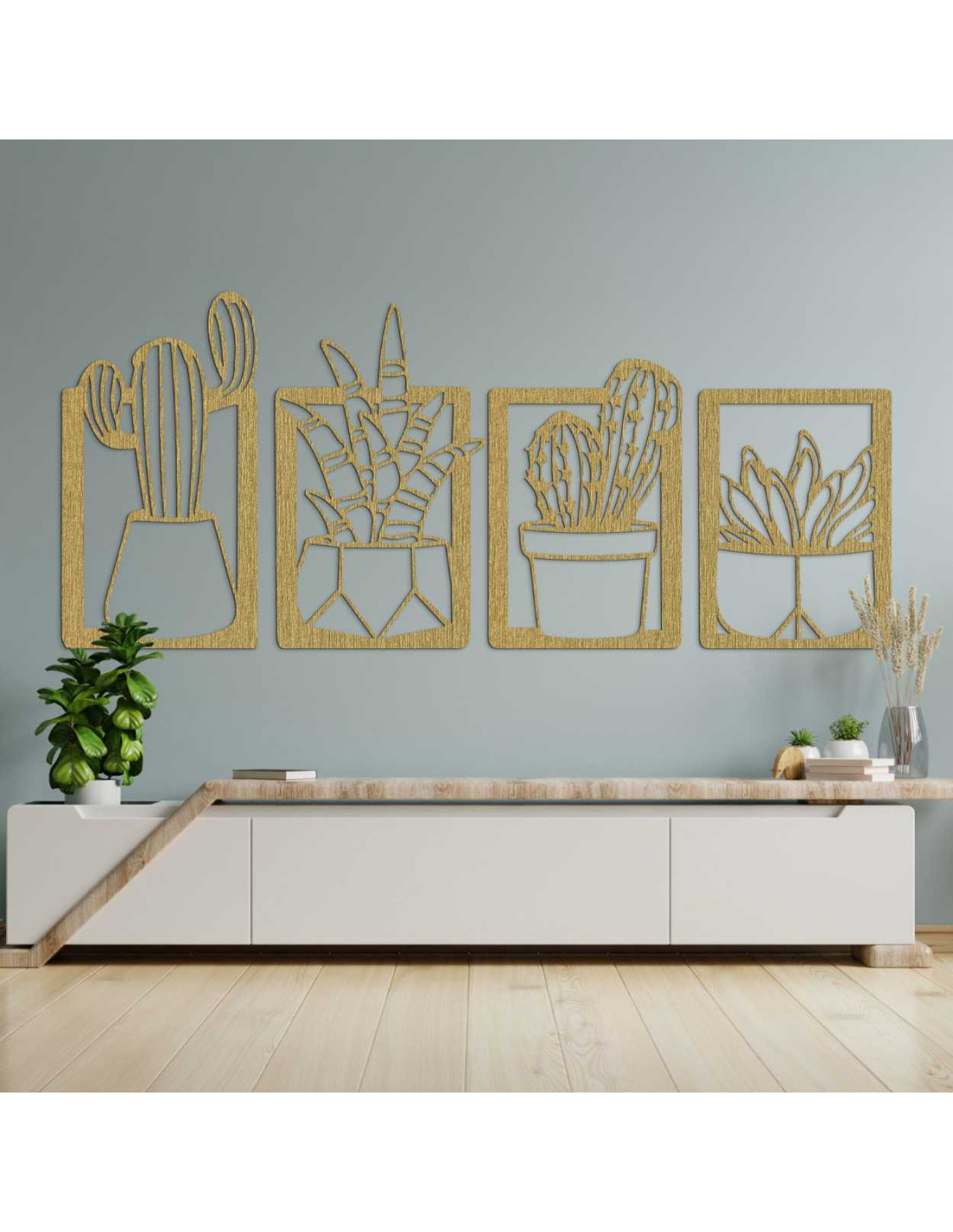 Pictură murală din patru piese cu cactuși și suculente - KOFEN