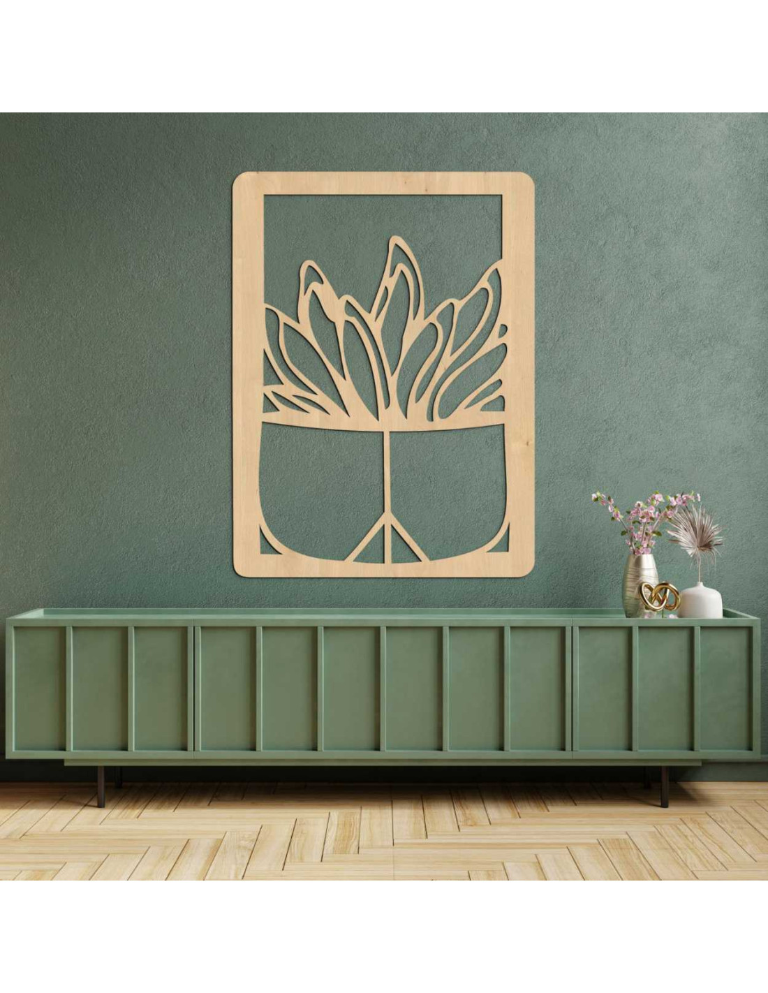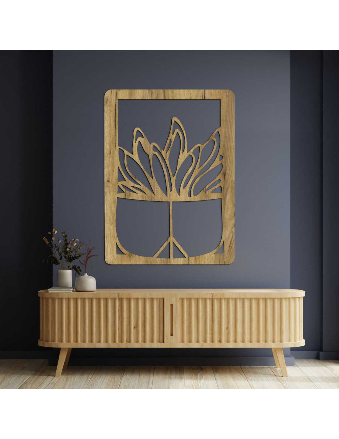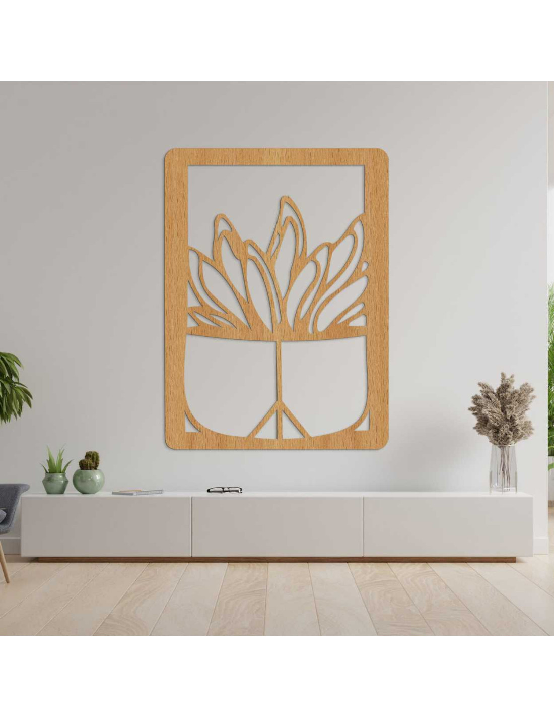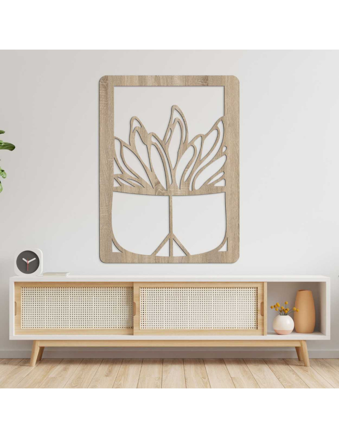 Pictură murală din lemn - Plantă în ghiveci | Sculptură modernă în lemn pentru interior - GEERA