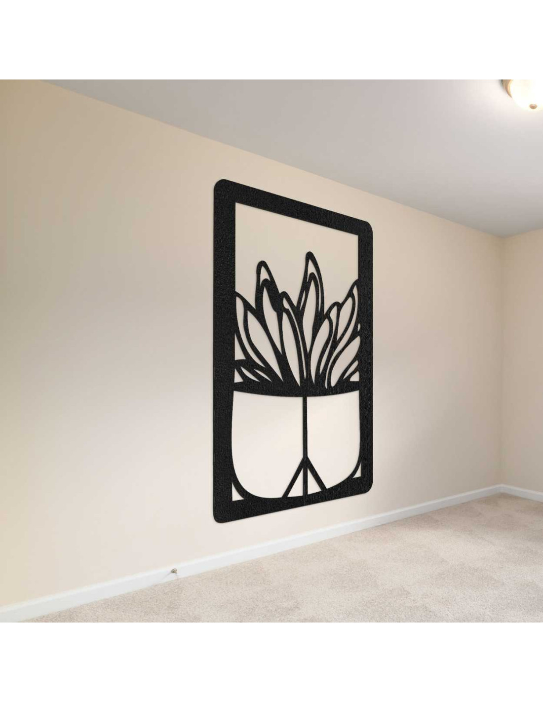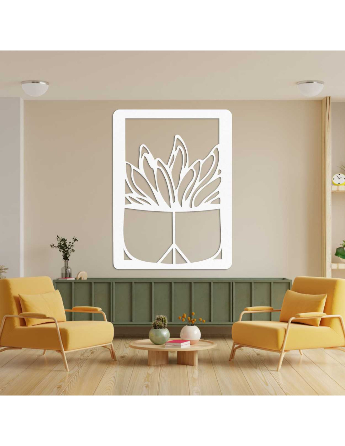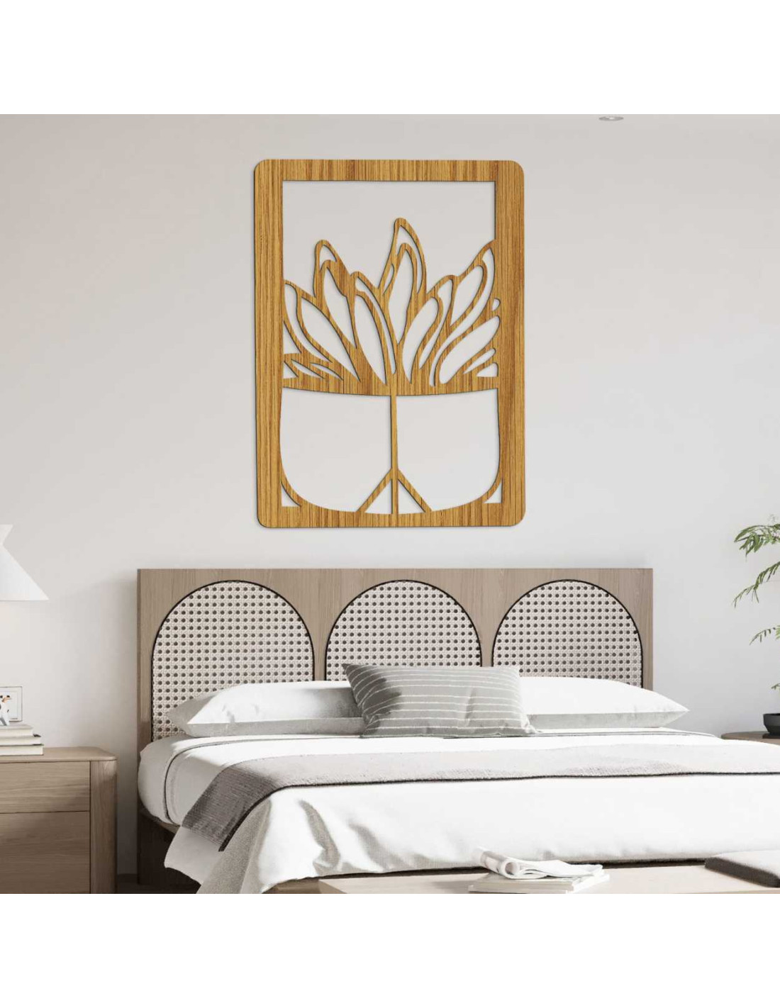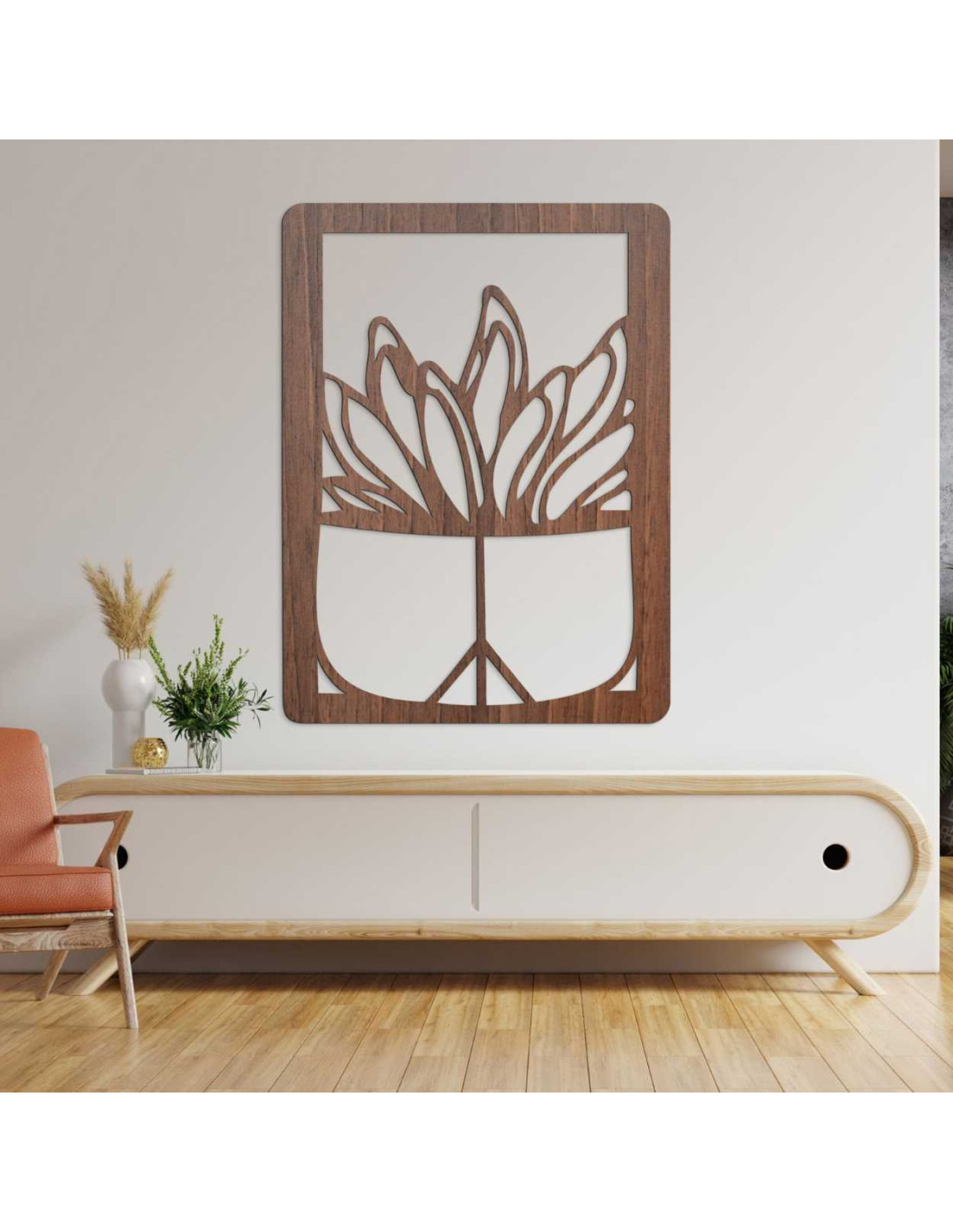 Pictură murală din lemn - Plantă în ghiveci | Sculptură modernă în lemn pentru interior - GEERA