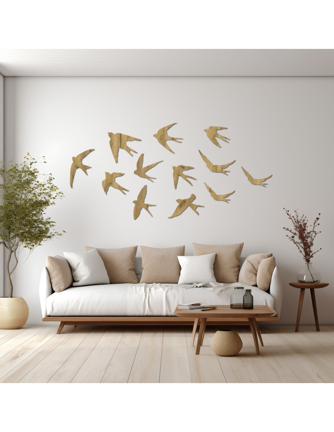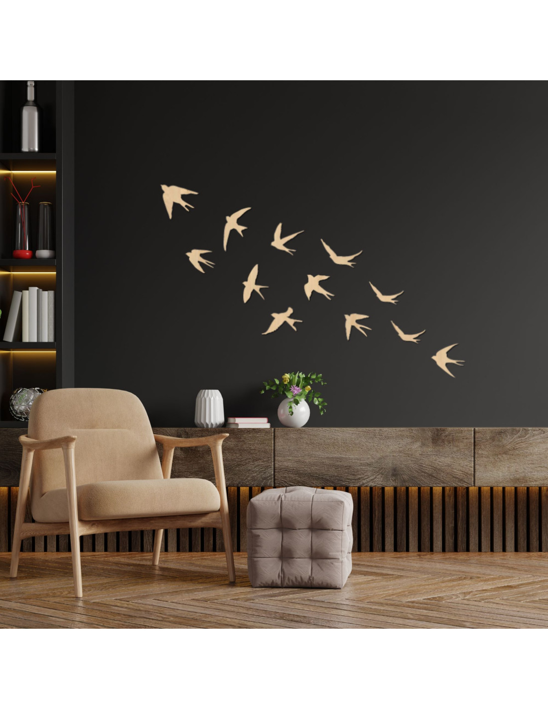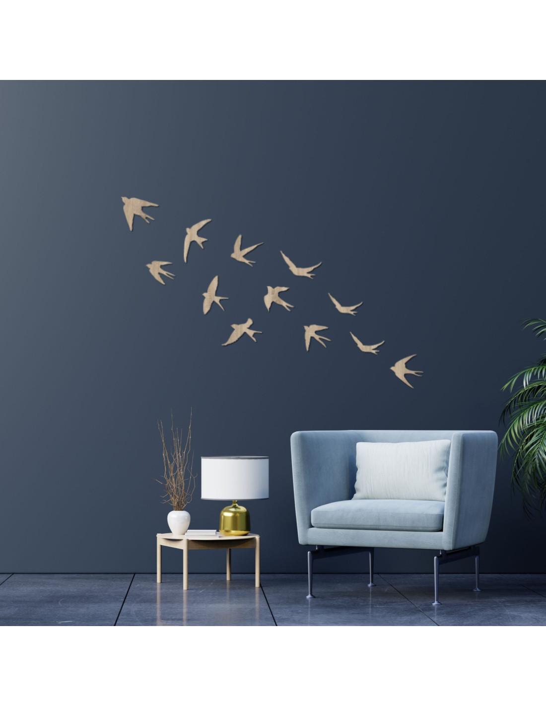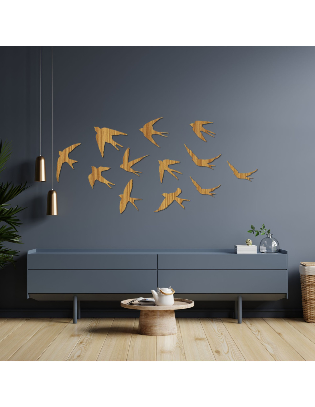 Decorațiuni din lemn cu păsări zburătoare - FLOCK