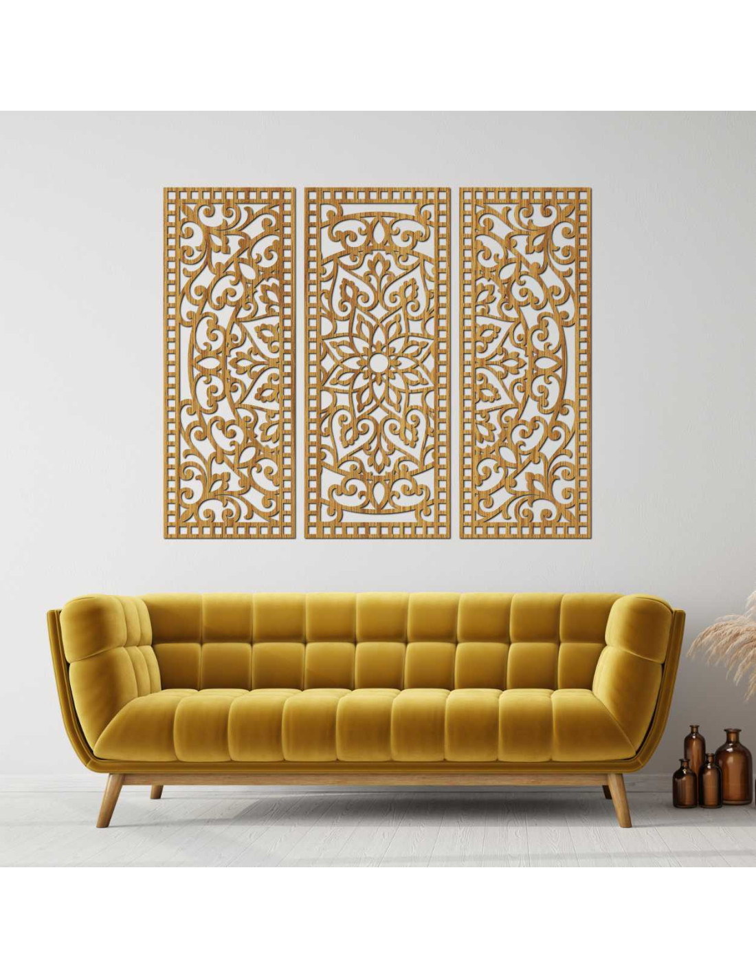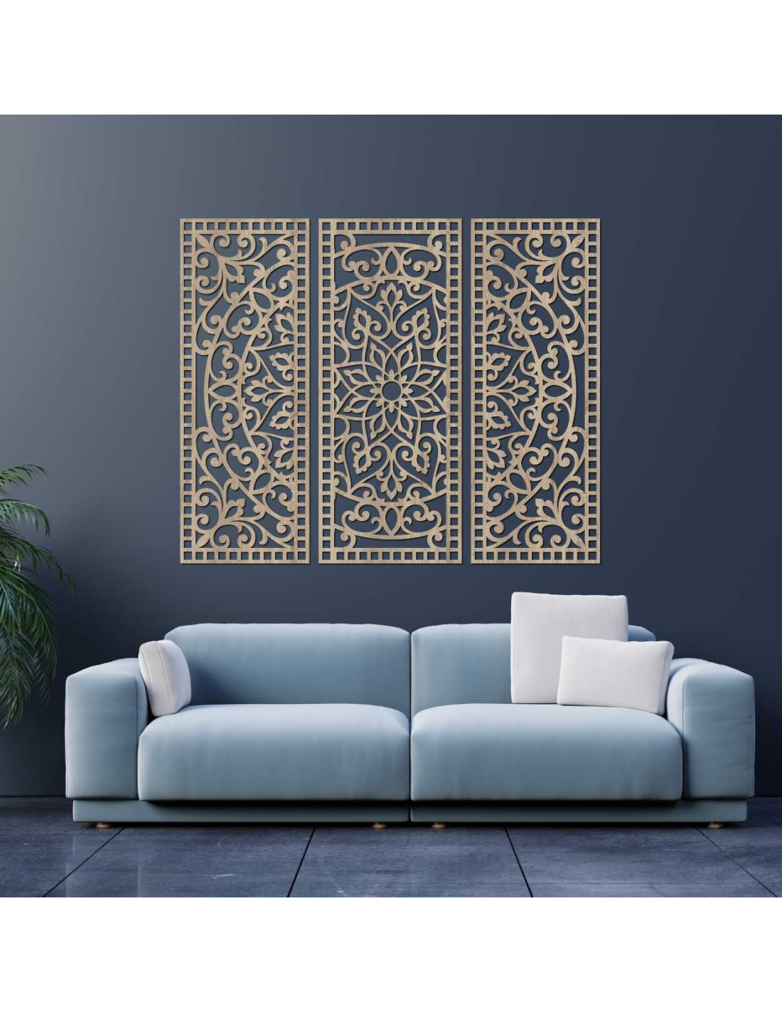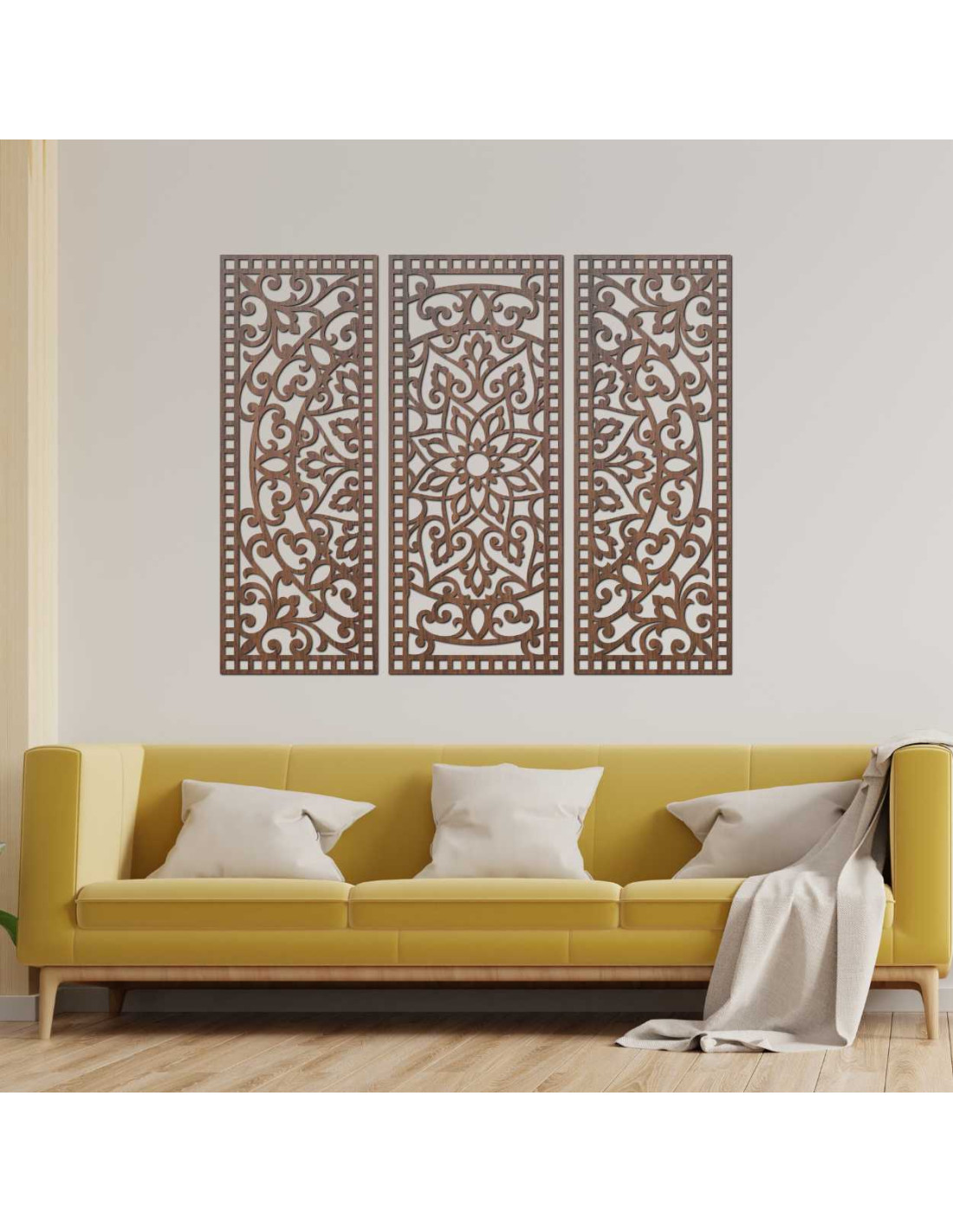 Eleganța, echilibrul și precizia lucrului manual se combină în opera de artă unică Mandala Florală din lemn - decorațiune murală boho din 3 piese . Detaliile sculptate delicat și compoziția armonioasă a celor trei panouri creează un echilibru perfect între natură și geometrie , transformând orice spațiu într-un loc al păcii și inspirației.